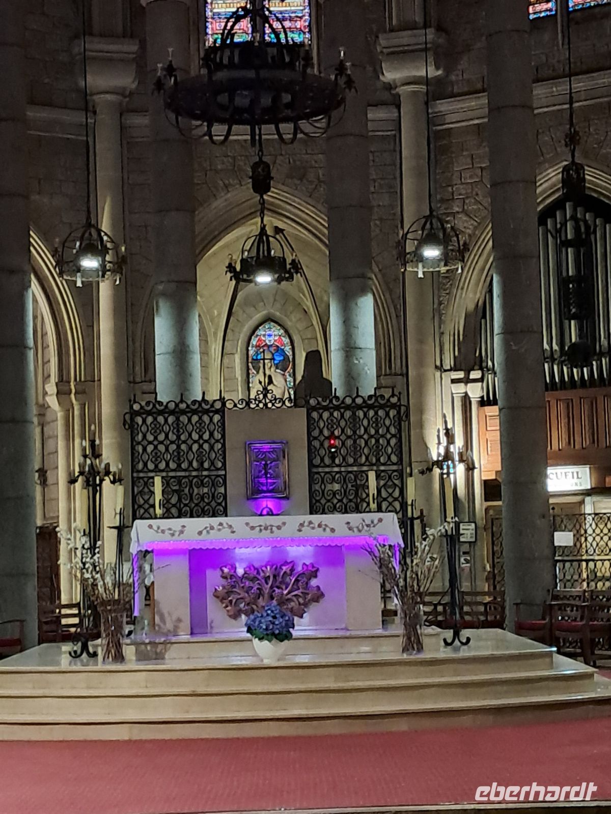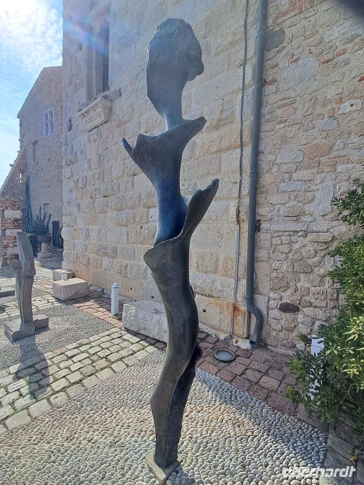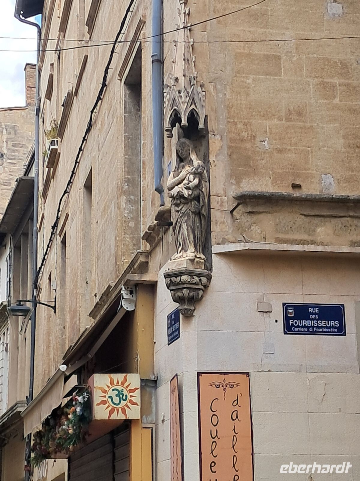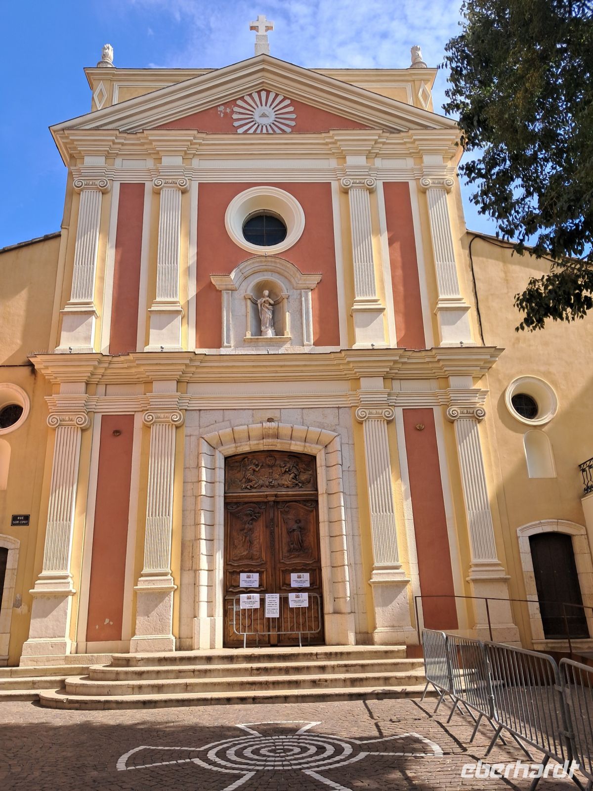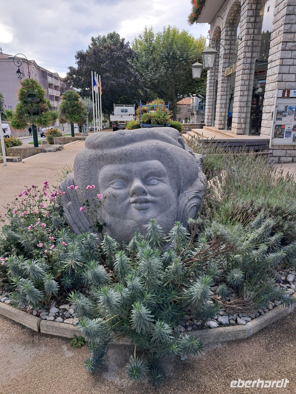 Wir erreichen Moustiers Sainte Marie. Ein historischer Wallfahrtsort mit seiner kleinen, über steile Stufen zu erreichenden Kapelle Notre-Dame-de-Beauvoir, der größeren Pfarrkirche Notre Dame zur Auferstehung und seinem Fayence-Museum. Nicht zu vergessen die wunderschönen Gassen und ein Dorf, wie eine Bienenwabe am Berg hängend, nicht ohne Grund eines der schönsten Dörfer Frankreichs. Das Wetter spielt eher in Moll und so ziehen einige der Reisegruppe den Espresso an der Theke, den Roséwein im Restaurant oder den Croque-Madame am überdachten Imbiss dem ausgedehnten Bummel bei Regen vor. Immerhin kommen wir alle aber wieder trocken zum Bus.