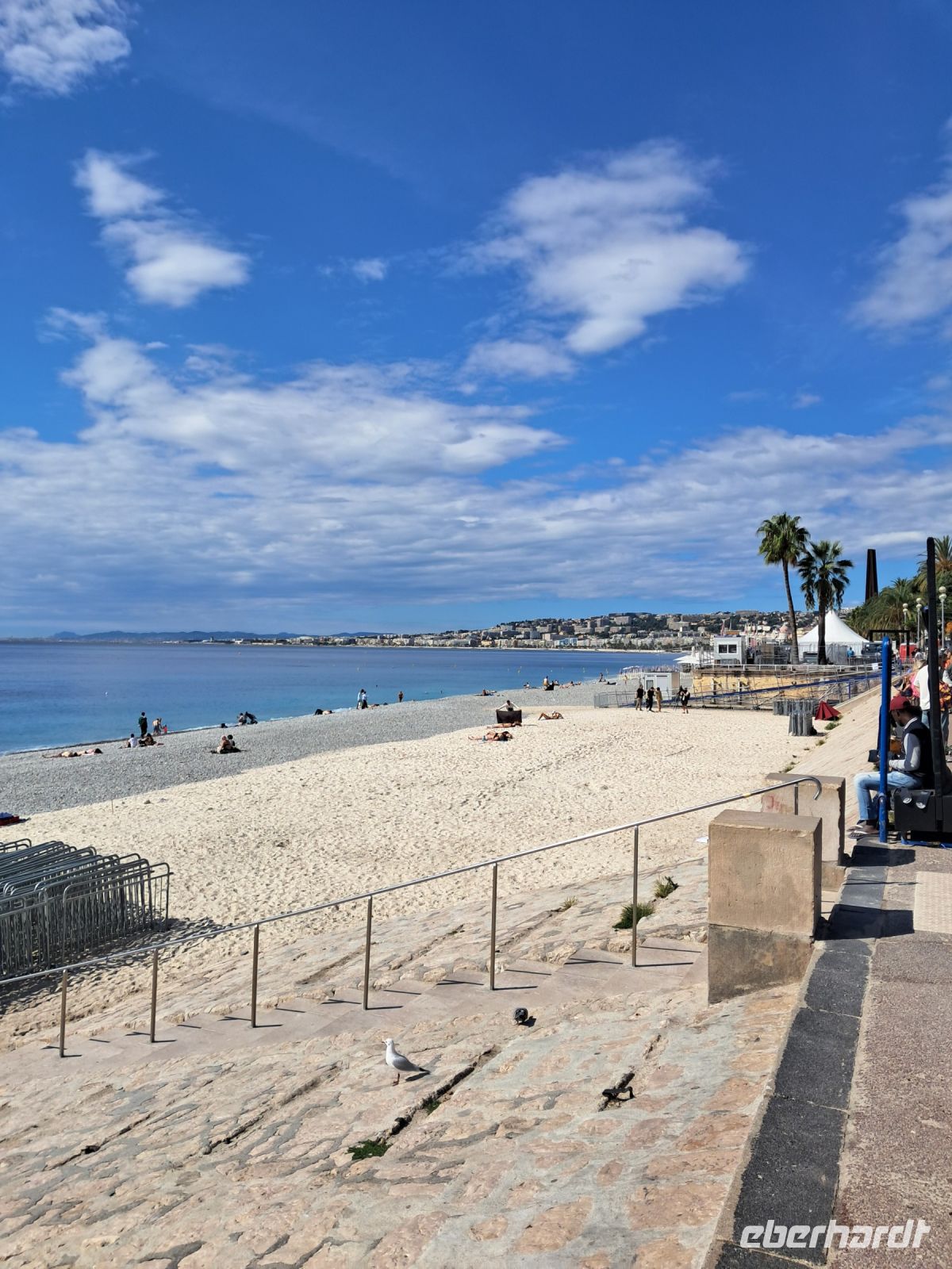 Der Bus holt uns in Nizza am Bahnhof ab, jetzt die Orientierung nicht verlieren, denn wenn schon die Einfahrt nach Nizza mit dem Pinienzapfenzug erfolgt, dann muss die Fahrt zum Hotel unbedingt über die Promenade des Anglais führen. Das Mittelmeer und die Cote d´Azur heißen uns willkommen.