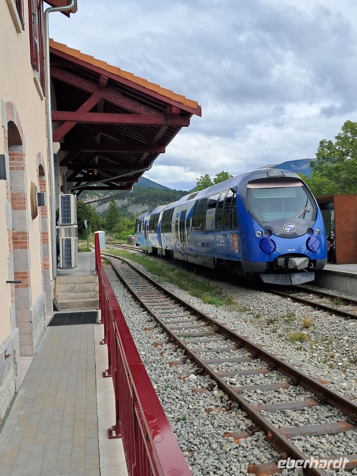 Heute steht eine Menge auf dem Programm, Aber es sollte gemütlich und gemächlich bleiben. Den Vormittag verweilen wir zu einem Rundgang in Sisteron. Nein, wir haben keine Gasse ausgelassen und wir haben jeden noch so dunklen und engen Durchgang passiert. Natürlich geht auch hier der Spaziergang vorbei an einer Kirche namens Notre-Dame, weiter am Gallo-Romanischen Museum der Stadt, einem Glockenturm mit einem selten gewordenen Glockenkäfig hin zu einem Aussichtspunkt auf den Fluss Buech, der hier zwischen den Felsen eine Engstelle passiert. Wir verlassen Sisteron, das Tor zur Provence und der erste Olivenbaum lässt nicht lange auf sich warten. Manche Teilnehmende haben aber eher den Fahrplan des Pinienzapfenzuges im Blick als Olivenbäume, gilt es doch eine der schönsten Bahnstrecken Frankreichs von Saint-André-les-Alpes entlang des Flusses Var bis nach Nizza zu erleben. Und da steht der Triebwagen ganz unaufgeregt auf dem Gleis, er wird vollgetankt und dann heißt es pünktlich Abfahrt. Man kann sich kaum vorstellen, dass auf dieser Strecke lange Zeit überhaupt keine Personen befördert wurden sondern nur Güter.