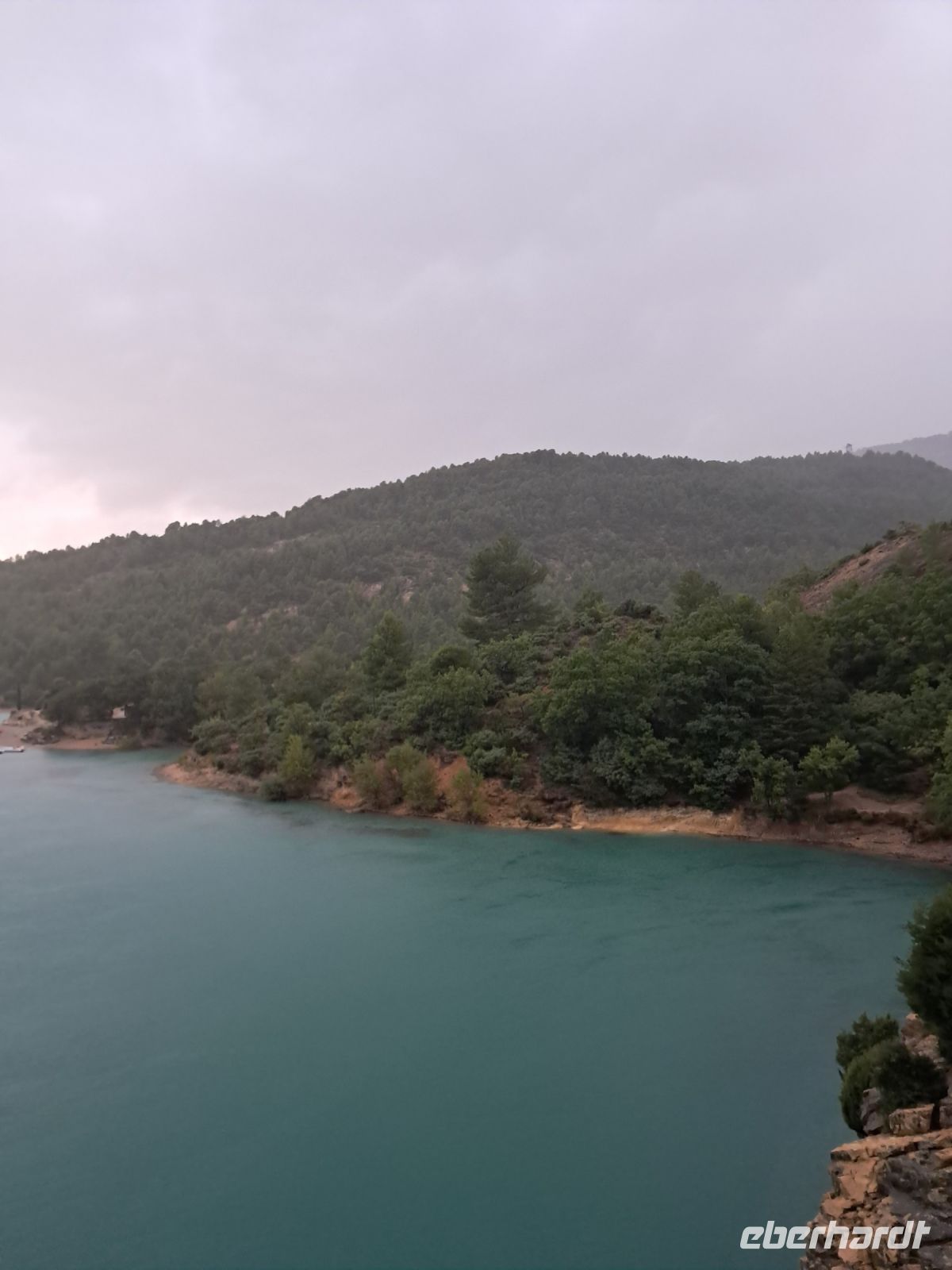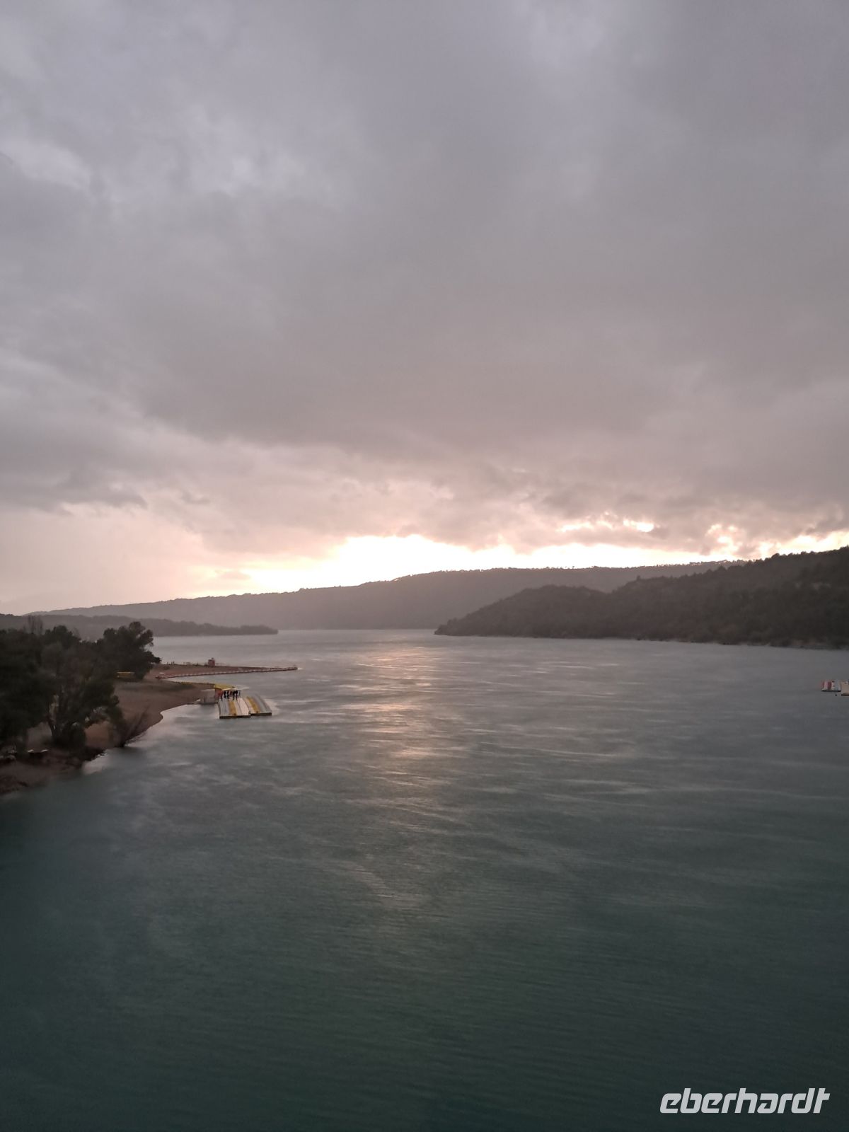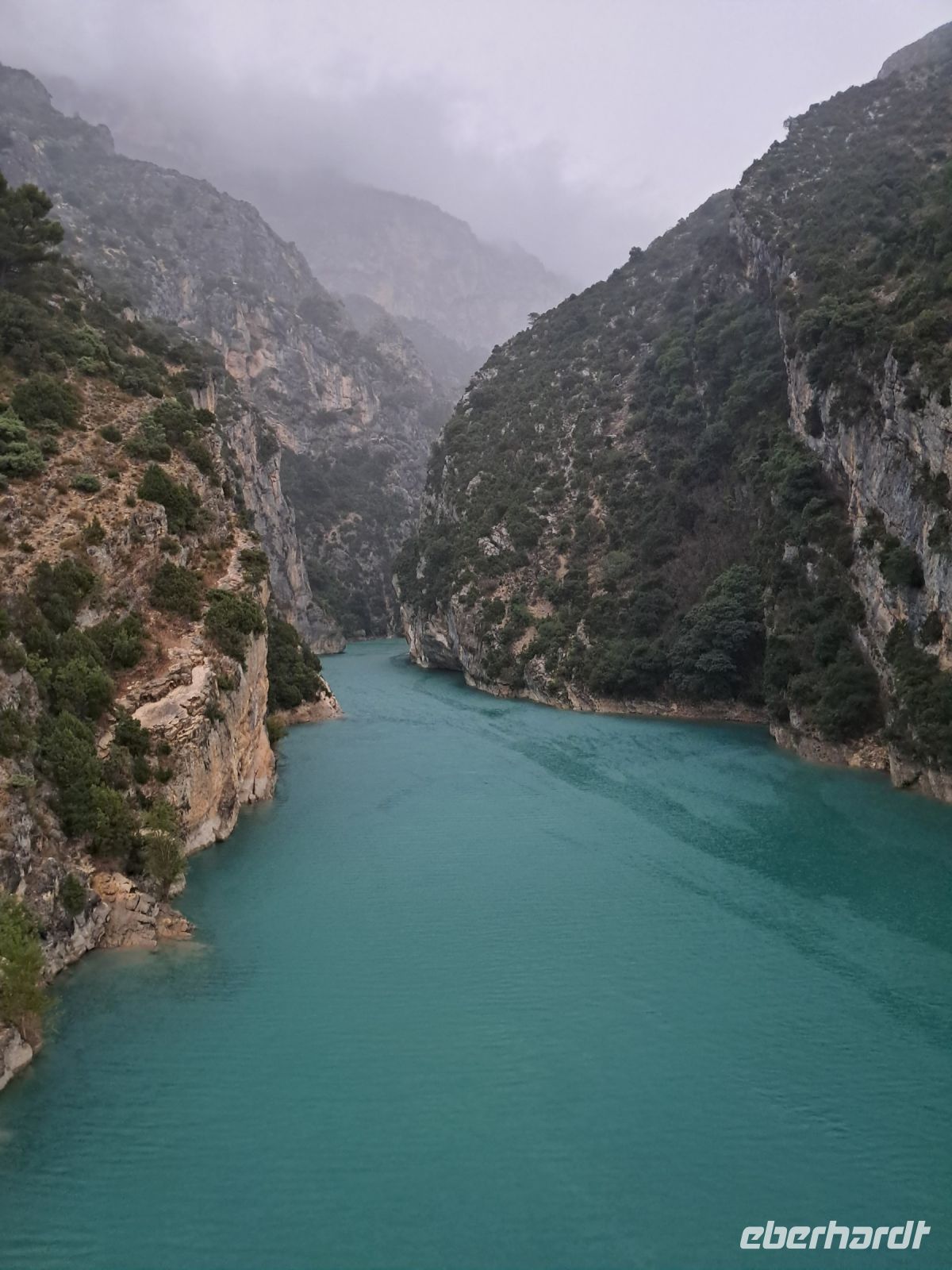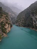 Er braucht nicht lange, bis wir am Eingang zu einer der spektakulärsten Naturschauspiele Frankreichs stehen, der Schlucht von Verdon. Selbst der mittlerweile strömende Regen kann das türkisfarbene Wasser nicht trüben, ebenso nicht den weiten Blick über den Lac de Sainte-Croix.