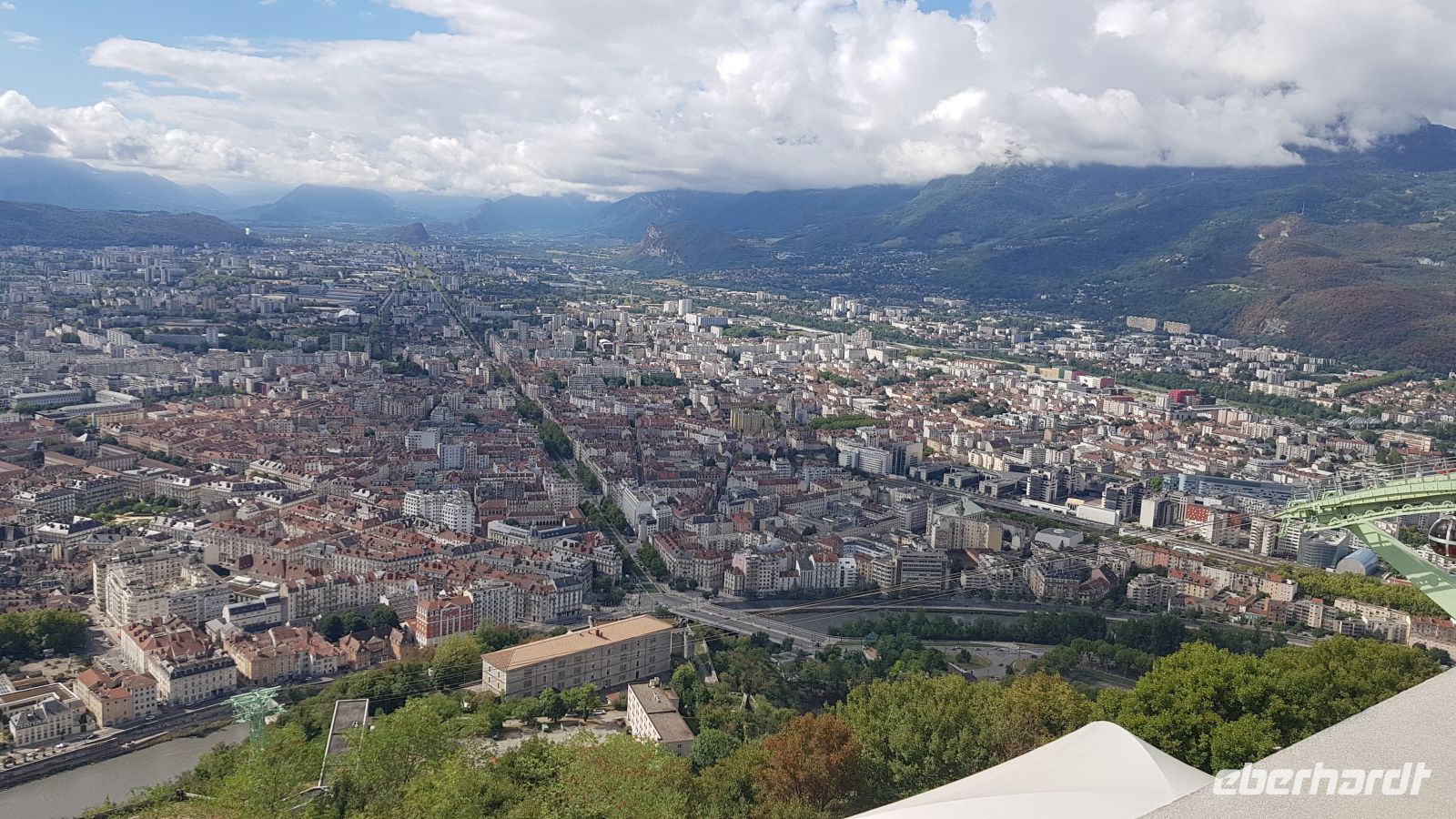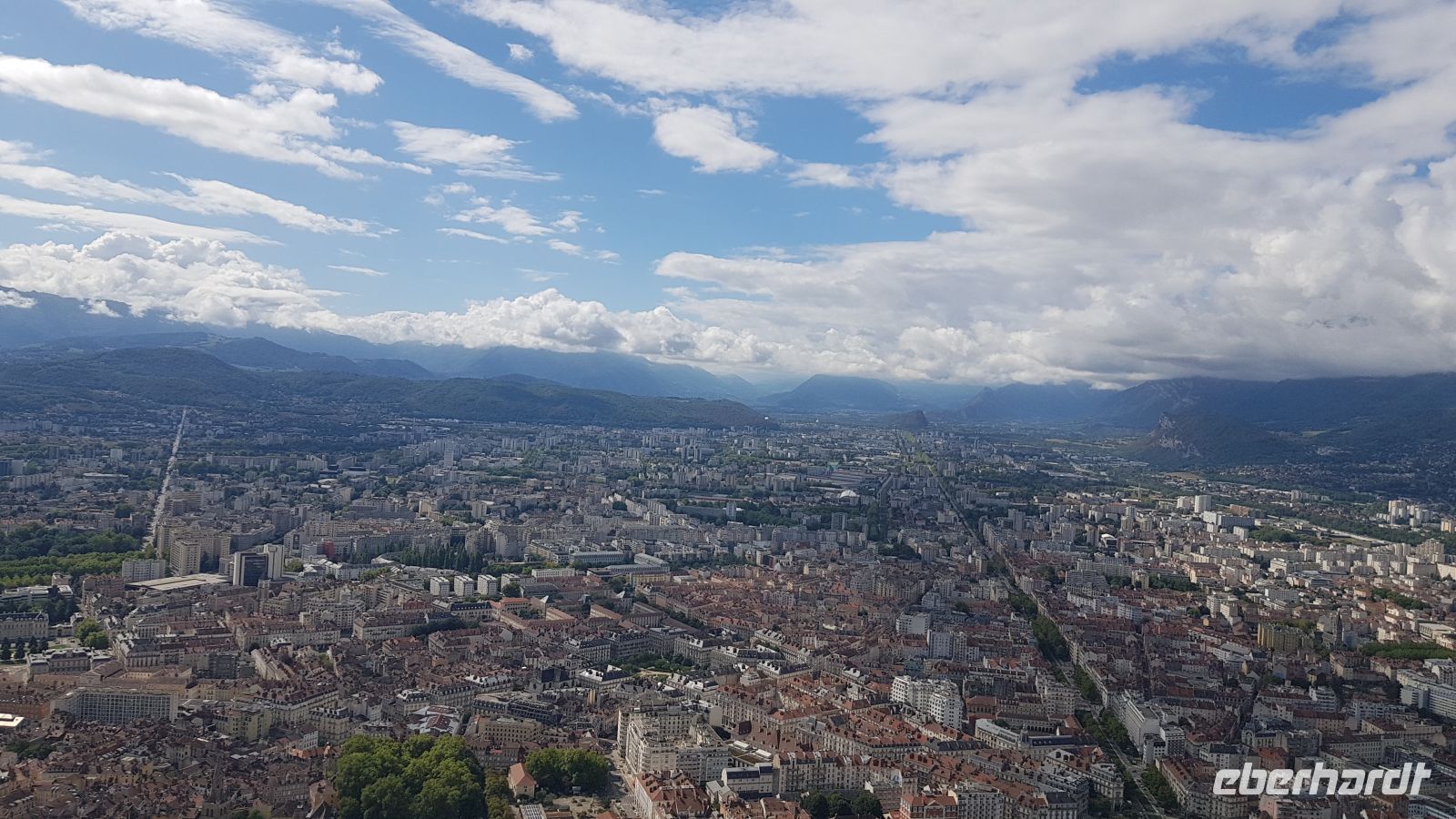 Dann gingen wir zur Seilbahn, die im September 1934 eingeweiht und zu den ersten Seibahnen der Welt gehört. Sie hat fünf Kabinen, in der jeweils bis zu sechs Personen sitzen können. Mit dieser gut 90 Jahre alten Seilbahn fuhren wir hinauf zur Bastille, von der wir eine tolle Aussicht auf Grenoble und die Gebirge der „Belldonne“, der „Chatreuse“ und des „Vercors“ , die sie umgeben, hatten.