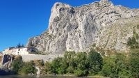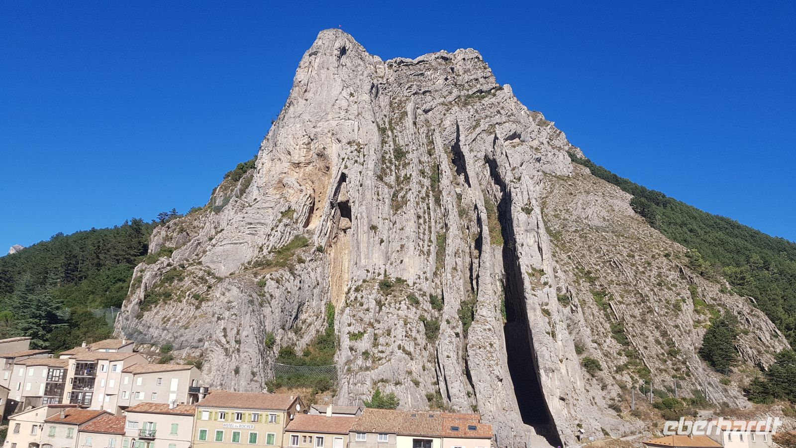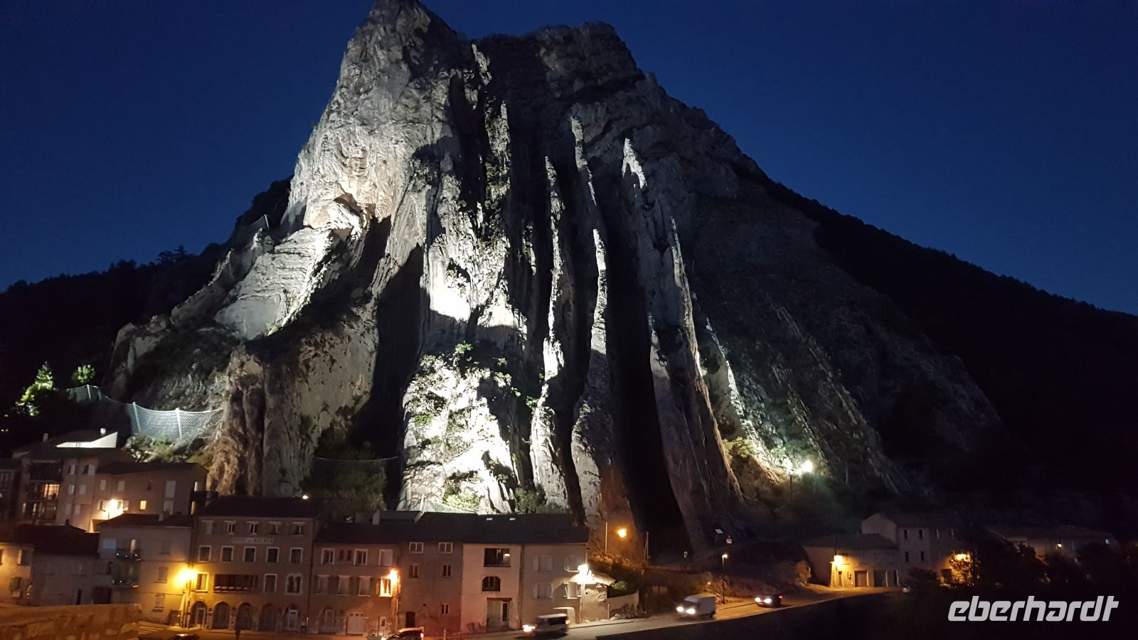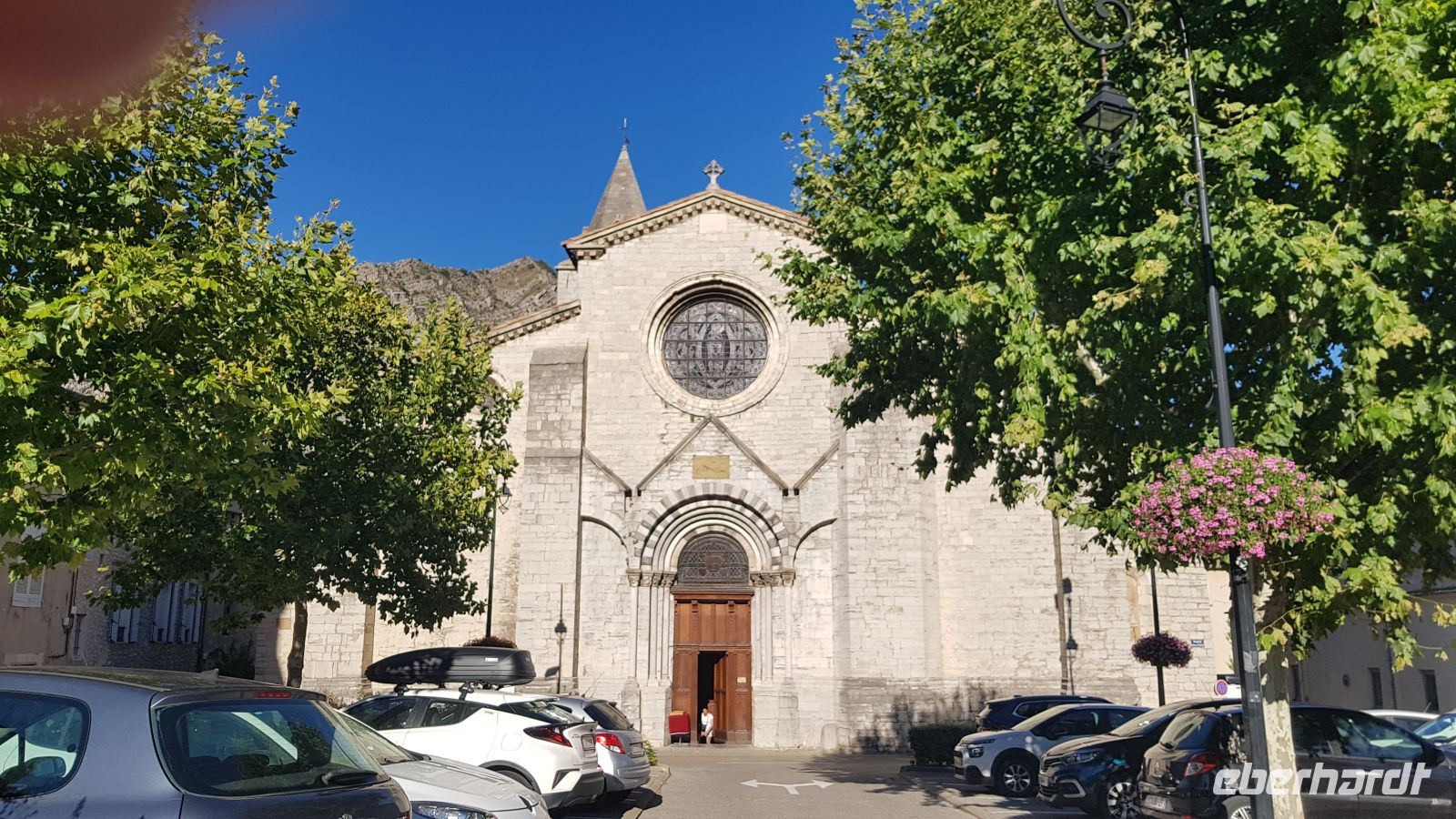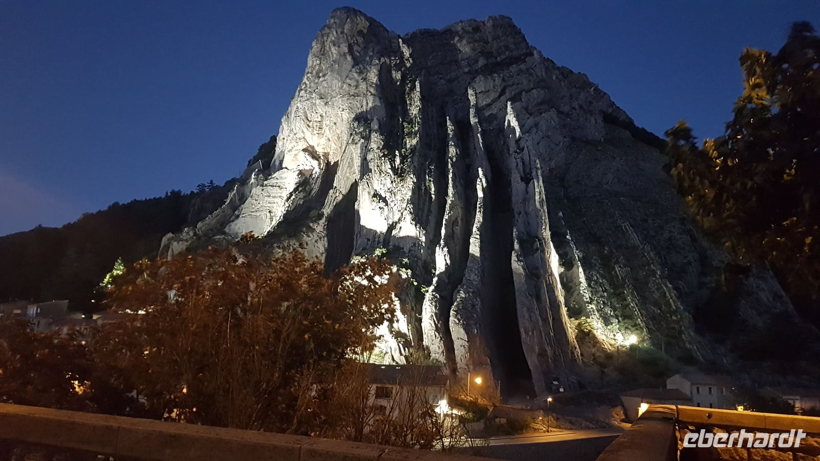 Am Nachmittag kamen wir so in Sisteron an, dass wir vor dem Abendessen noch einen kleinen Stadtrundgang im mittelalterlichen Zentrum unternehmen konnten. Unsere Reiseleiterin führte uns zunächst zur Kathedrale „Notre Dame des Pommier“, die wir besichtigten. Dann spazierten wir zum Uhrenturm, der aus der Zeit der Renaissance erhalten geblieben war, und kamen zum Aussichtspunkt auf den Rocher de la Baume, des berühmten Felsens von Sisteron. Seine gerippte Gestalt wurde durch die Erosion von Wind und Wasser geschaffen. Ein Geschenk der Erdgeschichte, über das wir uns heute freuen dürfen ! Mit einigen Gästen, die noch etwas mehr entdecken wollten, gingen wir hinunter zur Fluss Durance, der zu den bedeutendsten Strömen der französischen Hochalpen gehört. Über mehrere Treppen und enge, dunkle Gassen kamen wir dann wieder zur Kathedrale „Notre Dame des Pommier“.