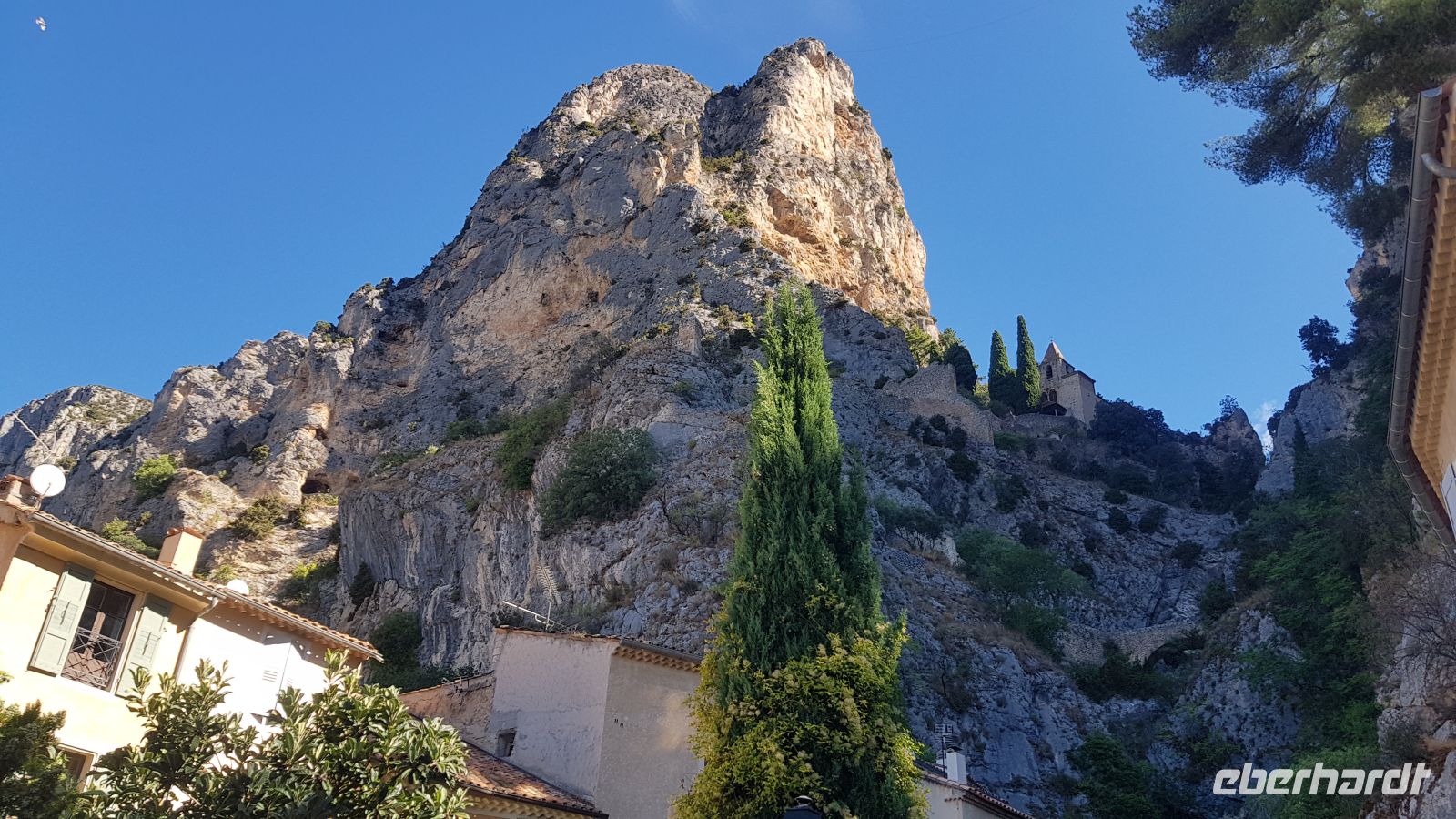 Heute erwartete uns wieder ein Tag mit unvergesslichen Natureindrücken. Wir sollten die zweittiefste Schlucht Europas, den Grand Canyon du Verdon kennenlernen. Zunächst jedoch besichtigten wir das malerische Dörfchen Moustiers-Sainte-Marie. Es liegt in der Landschaft der Verdon-Schlucht und zieht sich an einem seiner Felsen entlang. Wie ein Adlerhorst thront hoch über dem Dorf die Wallfahrtskirche „Notre Dame de Beauvoir“. Sie ist nur über mehrere sehr beschwerliche Stufen zu erreichen. Wir begnügten uns indessen mit der Besichtigung der Katholischen Pfarrkirche „Notre Dame de l'Assomption“, genossen ein Eis oder einen Kaffee am Wasserfall, der mitten durch das Dorf geht, oder sahen uns in den vielen Läden um, in denen es neben Keramik und regionalen Produkten auch interessante Mode gab.