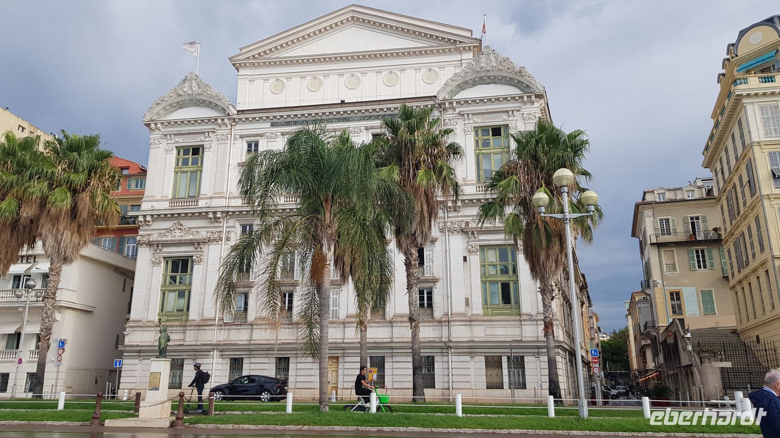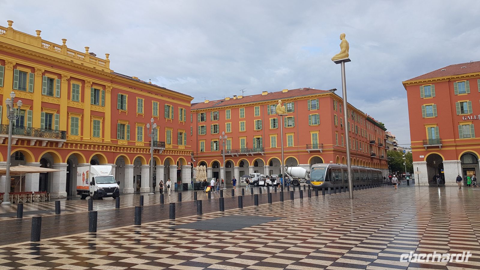 Statt mit unseren Koffern wieder in den Reisebus zu steigen, spazierten wir heute Morgen zur Straßenbahn. Unsere Reiseleiterin hatte schon am Abend zuvor die Fahrten für uns gekauft, so dass wir gleich in eine längere Bahn einsteigen konnten. Wir fuhren bis zur Place Massena, dem Hauptplatz von Nizza, der mit seinen Arkaden die Eleganz eines großen Salons besitzt. Hier begann die Stadtführung mit unserer örtlichen Reiseleiterin Monika, die uns anschließend zur Promenade des Anglais, der Meerespromenade von Nizza führte. Weit geschwungen bietet sie einen fantastischen Blick auf die Küste, die Hotels und den Burgberg von Nizza. Dann tauchten wir ein in die Gassen der Altstadt. Wir standen vor dem Opernhaus, sahen den langgestreckten Markt „Cours Saleya“, besuchten die Jesuitenkirche und kamen Kathedrale von Nizza. Die farbigen Fassaden der Häuser geben der Altstadt ein italienisches Flair, das mit ihrer über 500jährigen Zugehörigkeit zum Herzogtum Savoyen zusammen hängt. Dann legten wir eine kleine Pause für einen Imbiss oder einen Kaffee ein, bevor der größte Teil unserer Gruppe mit Monika per Straßenbahn wieder zum Hotel fuhr, um von dort unseren Ausflug nach Monaco zu starten.