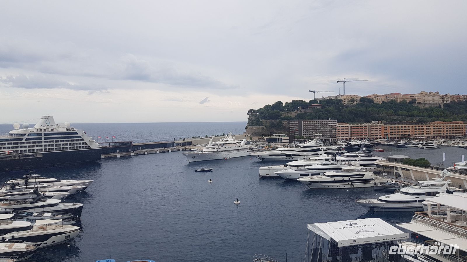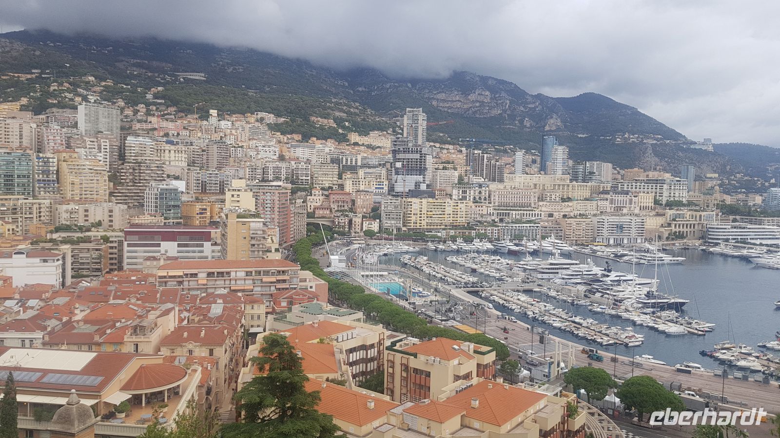 Wir fuhren auf der mittleren Straße an der Küste der Côte d'Azur entlang, genossen den Blick auf die Halbinseln Cap Ferrat und Cap Martin und legten eine Fotostopp ein. Dann erreichten wir Monaco, das sich auf wenigen Quadratmetern eng an die hier bis an die Küste reichenden Seealpen schmiegt. Um noch einige Quadratmeter Bauland zu gewinnen, baut das Fürstentum schon seit den 70ger Jahren im Meer. Gerade kürzlich ist wieder ein Stadtviertel vor der Küste entstanden, das extrem teure Eigentumswohnungen bietet.