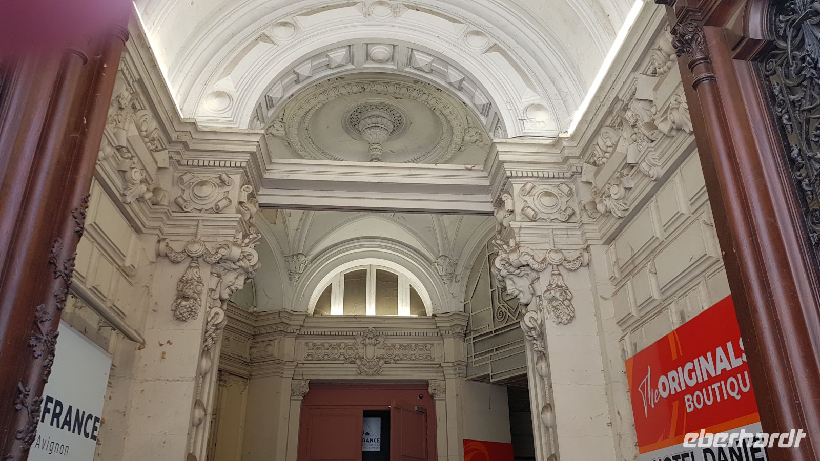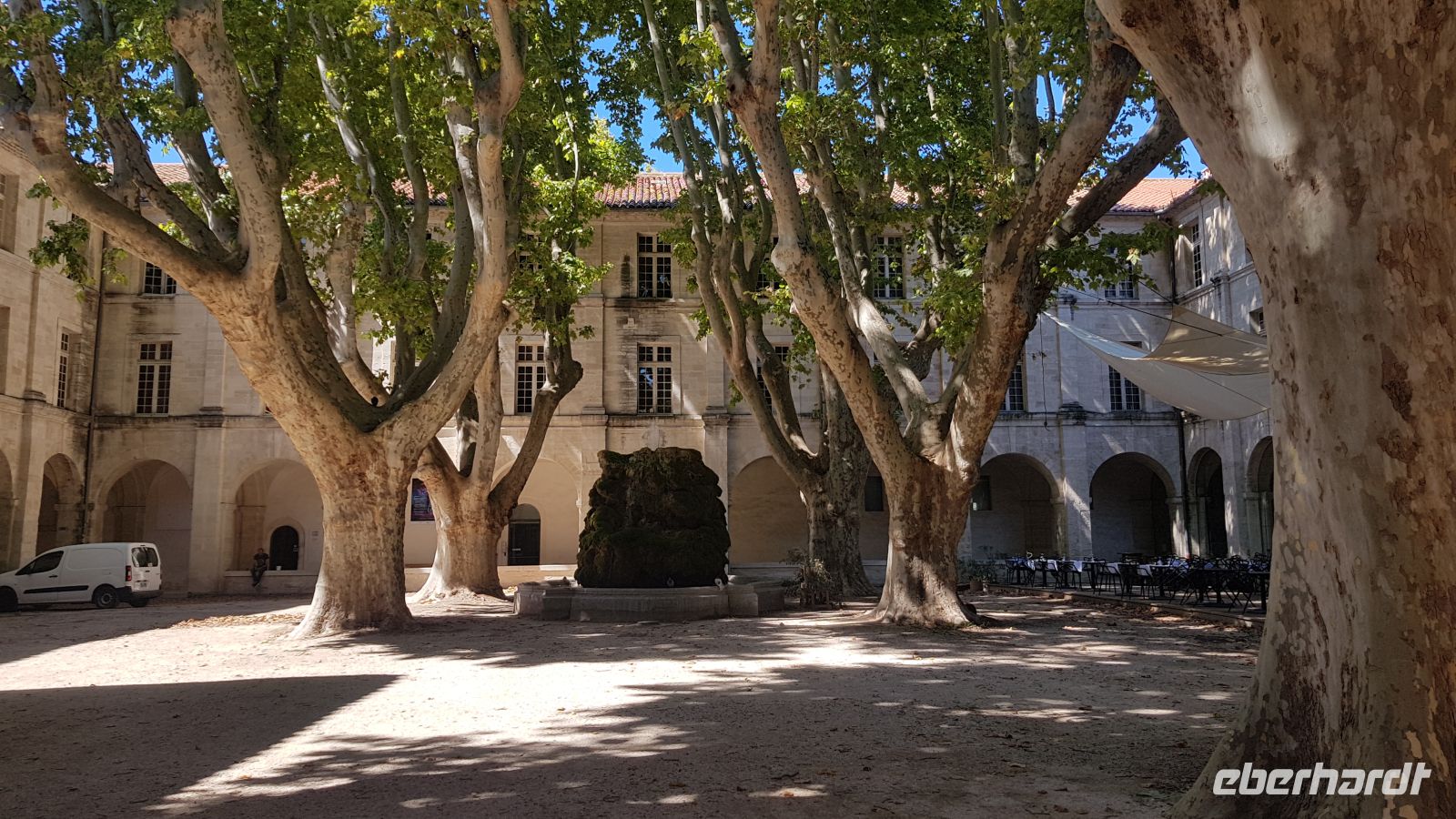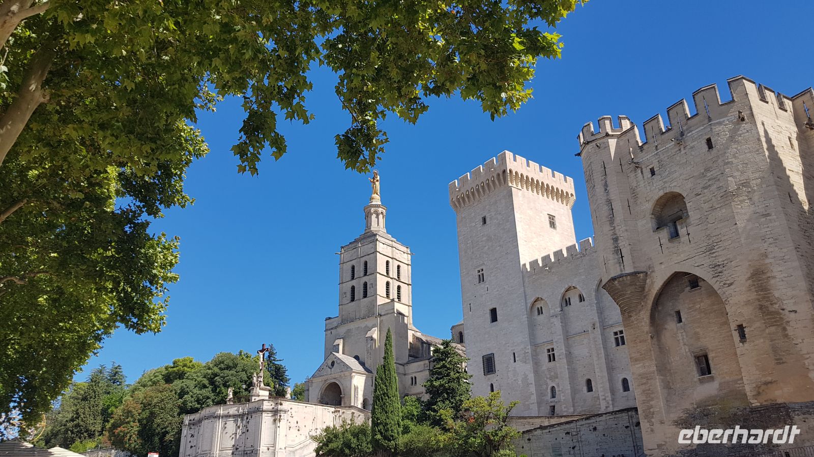 Dann erreichten wir Avignon, wo im 14. Jahrhundert für gut sieben Jahrzehnte die Päpste regierten. Die „Stadt der Päpste“ wird von einer fast vollständig erhaltenen Stadtmauer umzogen, an der wir ausstiegen. Vor dort führte uns unsere Reiseleiterin in die Innenstadt sowie zum Papstpalast. Während sich unsere Reiseleiterin um unsere Fahrkarten für den Zubringerzug zum TGV Bahnhof kümmerte, starteten wir unsere individuellen Erkundungen in Avignon. Wir genossen die sonnige Altstadt mit ihren malerischen Plätzen, Gassen und Höfen oder kehrten in einem der vielen Restaurants ein.