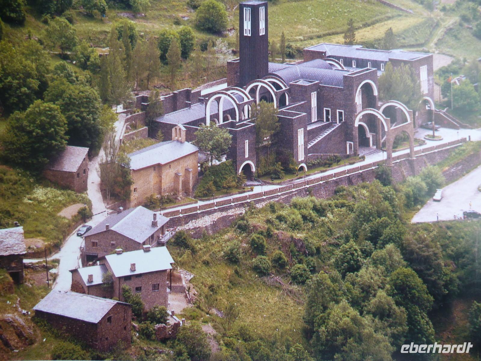 Punkt des Tales. Von hier haben wir einen wunderbare Aussicht auf die phantastische Landschaft, den See unten, die Kapelle des Heiligen Gil, die Kirche mit den besonderen Eingravierungen in den Treppenaufgängen, die die Geburt eines Kindes nach dem Besuch des Val de Nuria dokumentieren. Zurück mit der Bahn und wieder über die zahlreichen Serpentinen und den vertrauten Pas de la Casa erreichen wir unser Hotel. Wir hatten wieder einen Sehr schönen und erlebnisreichen Tag. 6. Tag: Donnerstag (17. Mai 2012) Meritxell - Bergfest Os de Civis: 68 km Zwischen der ältesten Gemeinde Andorras Canillo und Encamp liegt die Kirchevon Meritxell. Sie ist die Hauptkirche des Zwergstaates und repräsentiert allesieben Gemeinde des Landes. Unsere Reiseleiterin führt uns die moderne undhelle Kirche, die 1976 eingeweiht wurde, nachdem die Orginalkirche 1972 durch einen Brand