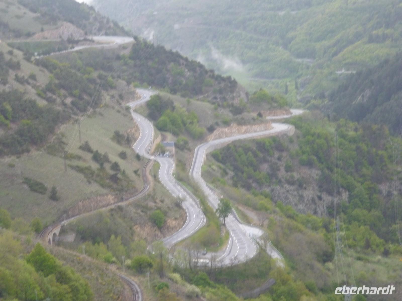 Nach dem Mittagessen fahren wir wieder durch Caldea, den Ort mit dem durch seinen architektonisch eigenartig gestalteten Turm nicht zu verfehlendem Thermalbad. Wir erreichen das Dreiländereck Andorras - genannt auch "Flaschenhals". Es ist ein Aussichtsplateau, 2069 m hoch gelegen, eingerahmt durch die Bergwelt Andorras, Frankreichs und Spaniens. Bei Kaffee und Kuchen genießen wir den phantastischen Ausblick. Auf unserer Rückfahrt stoppen wir noch an einer kleinen Likörfabrik mit dazugehörigem Geschäft und lassen uns zum Kauf manch kleiner Leckerei verführen. 5. Tag: Mittwoch (16. Mai 2012) "Tal der Träume" - Vall de Nuria: 209 km Heute geht es ins Tal der Träume, nach Spanien. Es ist schon seltsam, dass wir hier im Osten der Pyrenäen von einem Land problemlos schon in einem anderen Land sind. Wir fahren von Andorra hoch zum Pas de la Casa (2408 m) - der einzigen Straße Andorras nach Frankreich. Wir fahren also von Andorra durch Frankreich, nach Spanien zu unserem heutigen Reiseziel. Im katalanischen Dorf Ribes de Freser nehmen wir die Zahnradbahn zum 12 km entfernten Tal der Träume und dann geht es gleich weiter mit der Gondelbahn zum höchsten