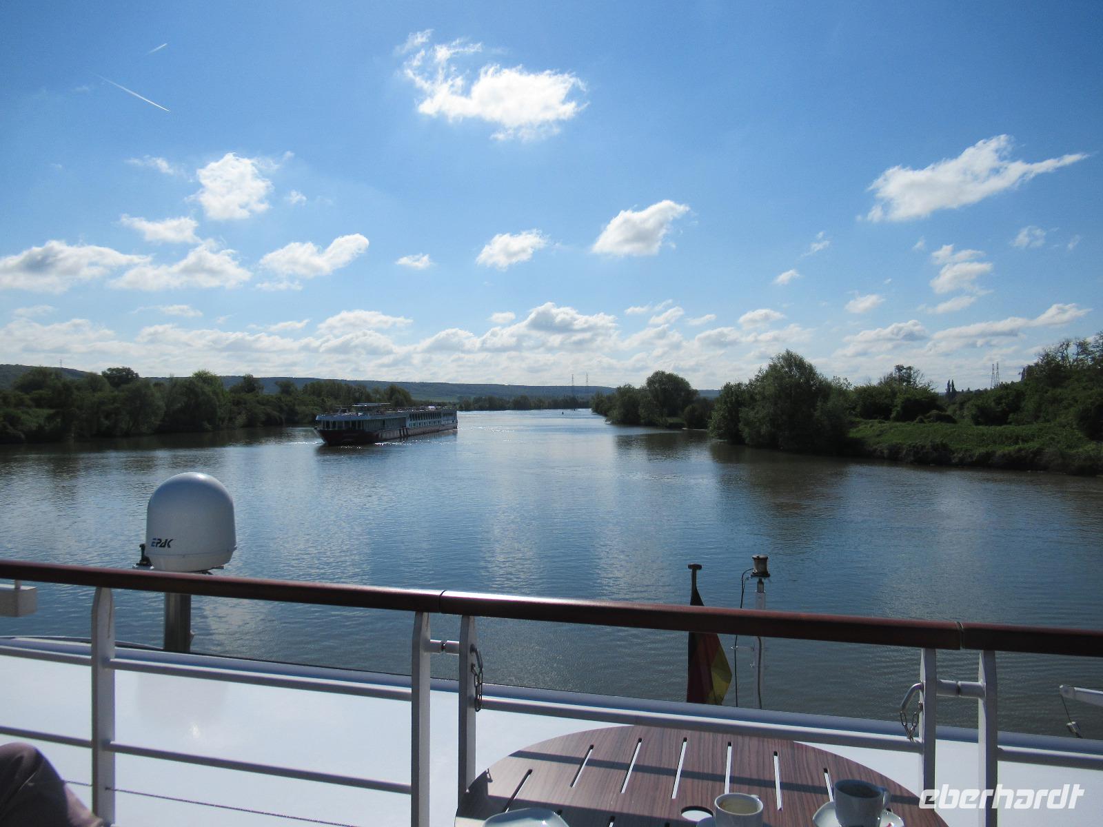 Von 7:00 bis 9:00 Uhr gibt es ein reichhaltiges Frühstück. Unser erster Tag auf dem Wasser begrüßt uns mit sonnigem Wetter.