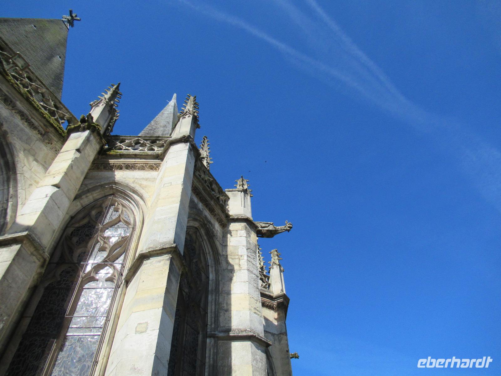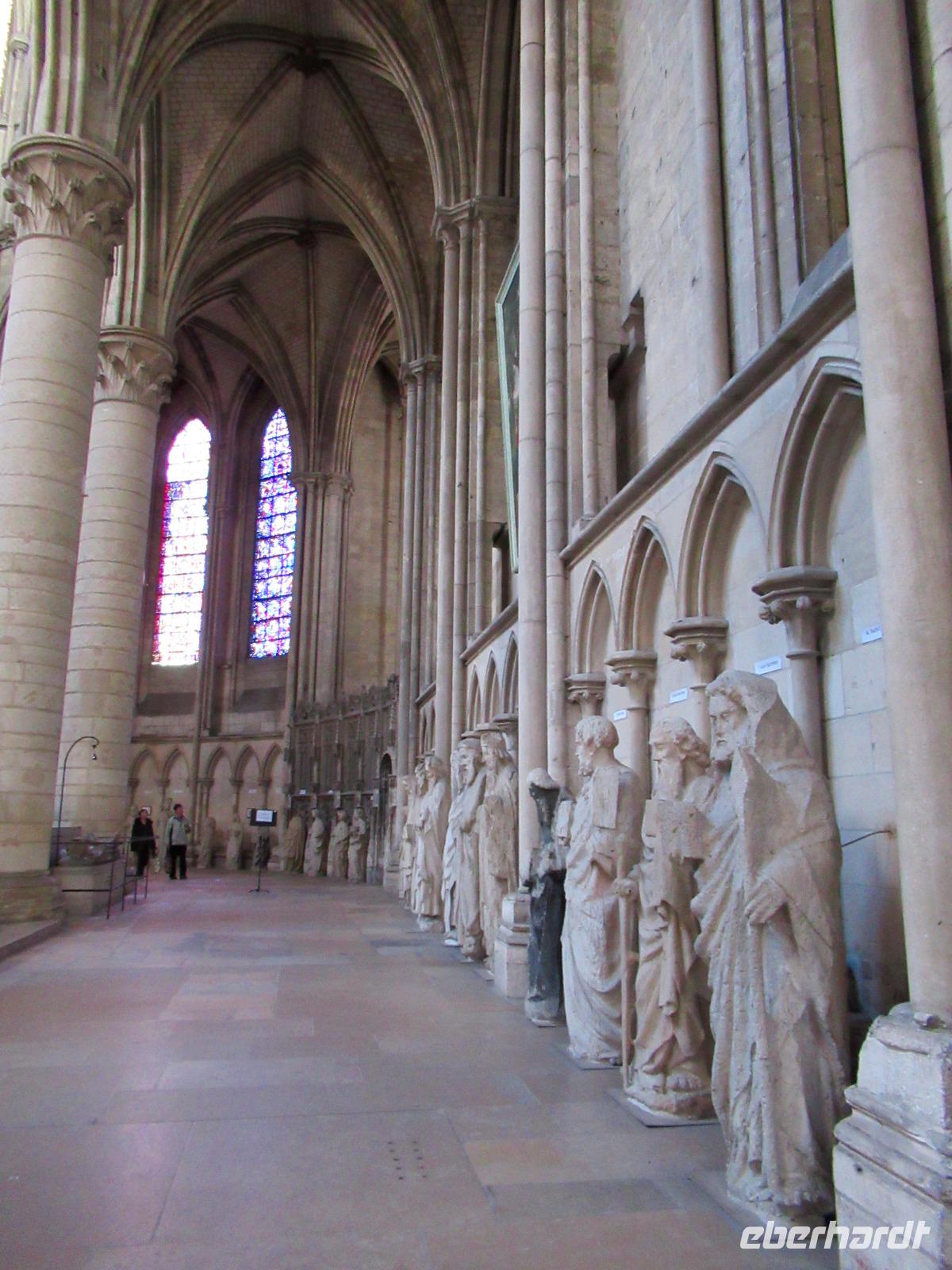 Da wir sind nur einen Katzensprung von der Kathedrale von Reims entfernt sind, beschließen wir ihr einen kurzen Besuch abzustatten. 1918 ist dieses imposante Bauwerk bis auf die Grundmauern abgebrannt. 20 Jahre wurde am detailgetreuen Wiederaufbau der gothischen Kathedrale gearbeitet.