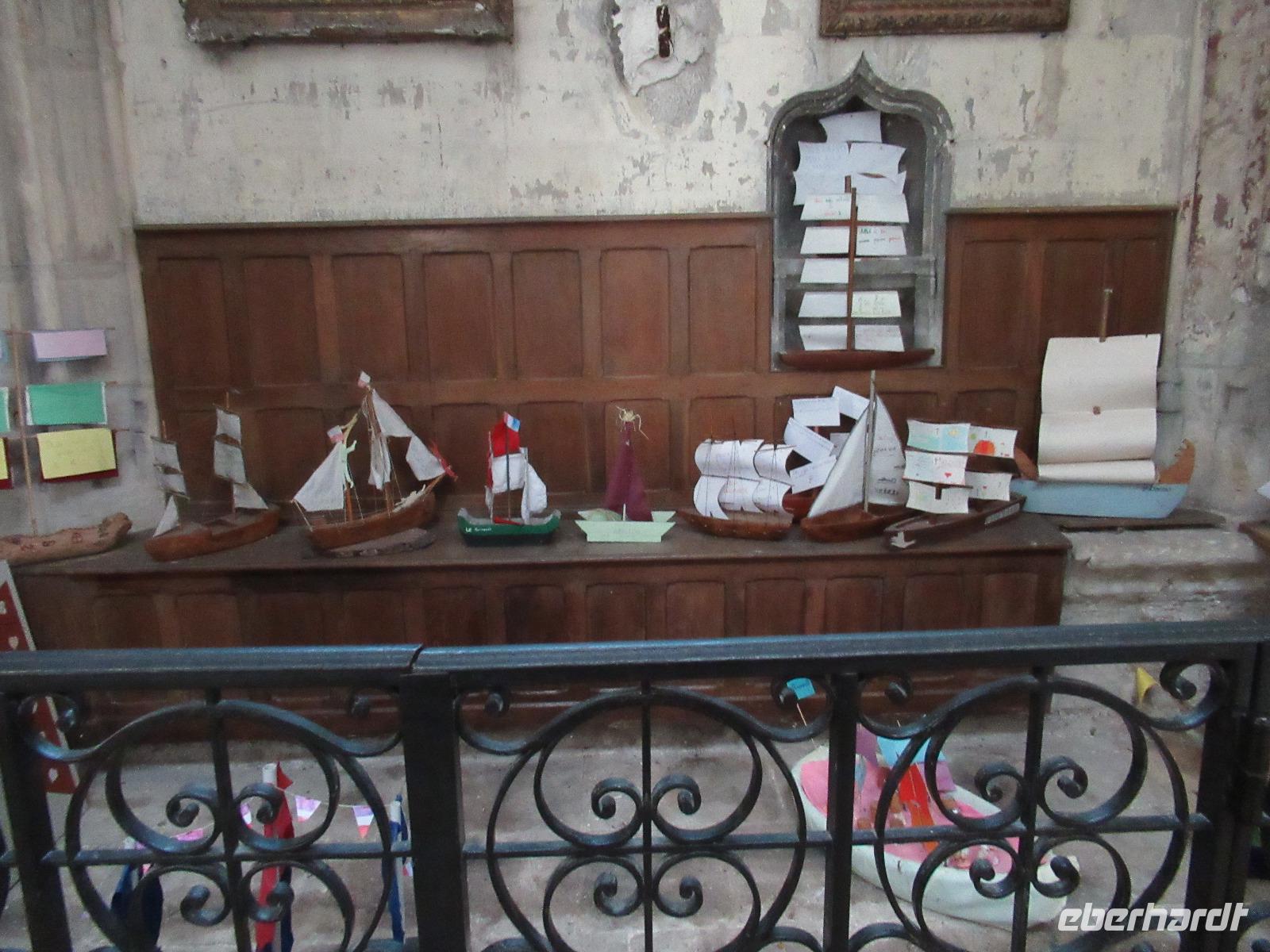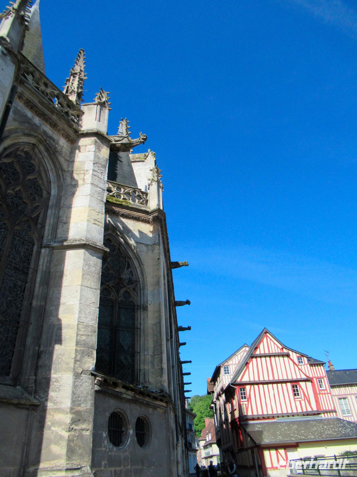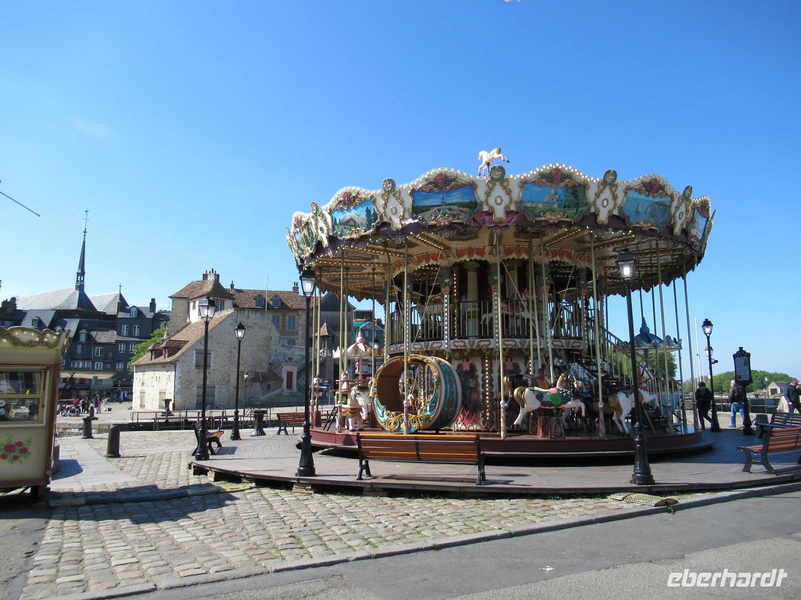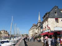 Dann fahren wir nach Honfleur, einem kleinen Fischerhafen, mit seiner vollständig aus Holz gebauten Kirche St. Katharina und seinem separaten Glockenturm.