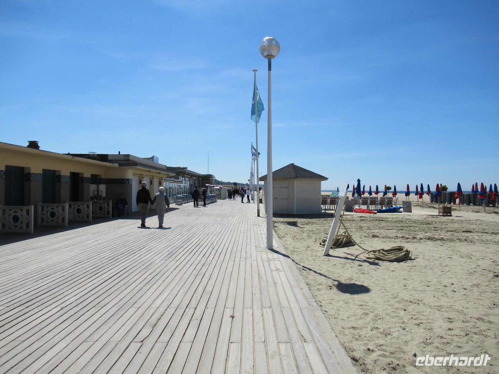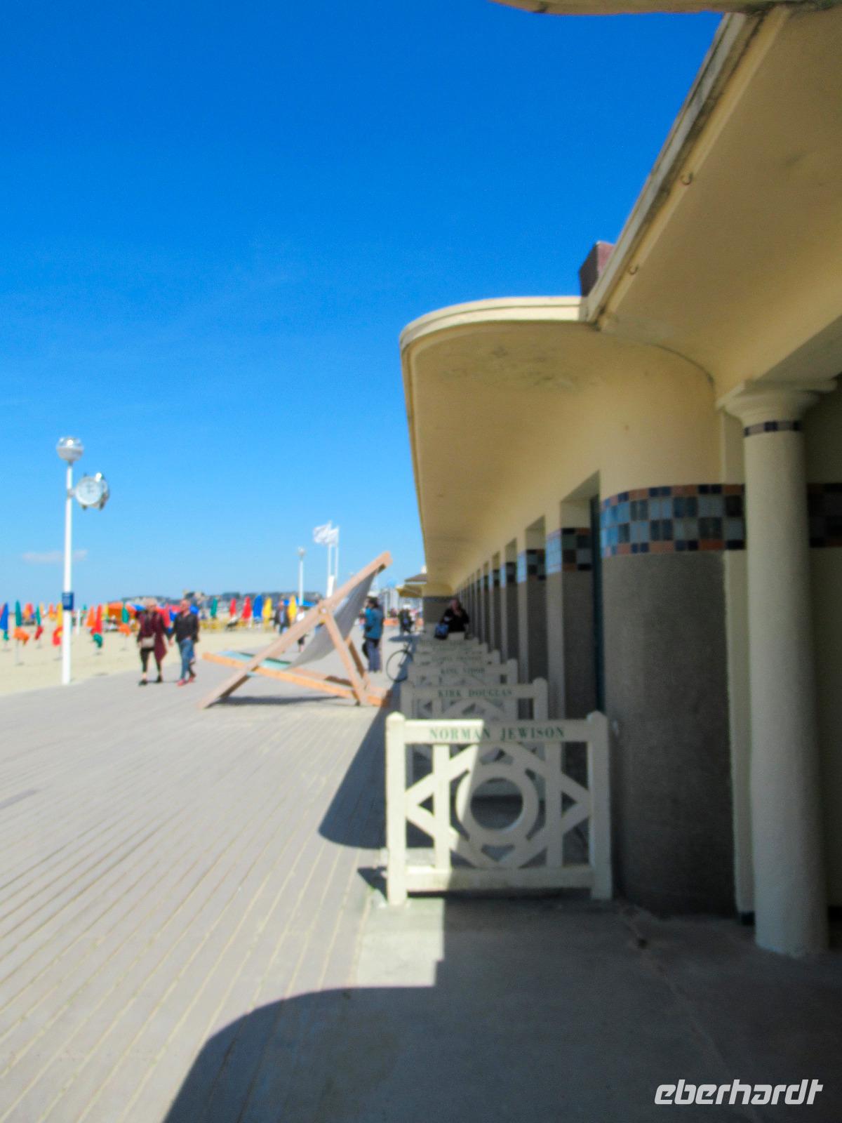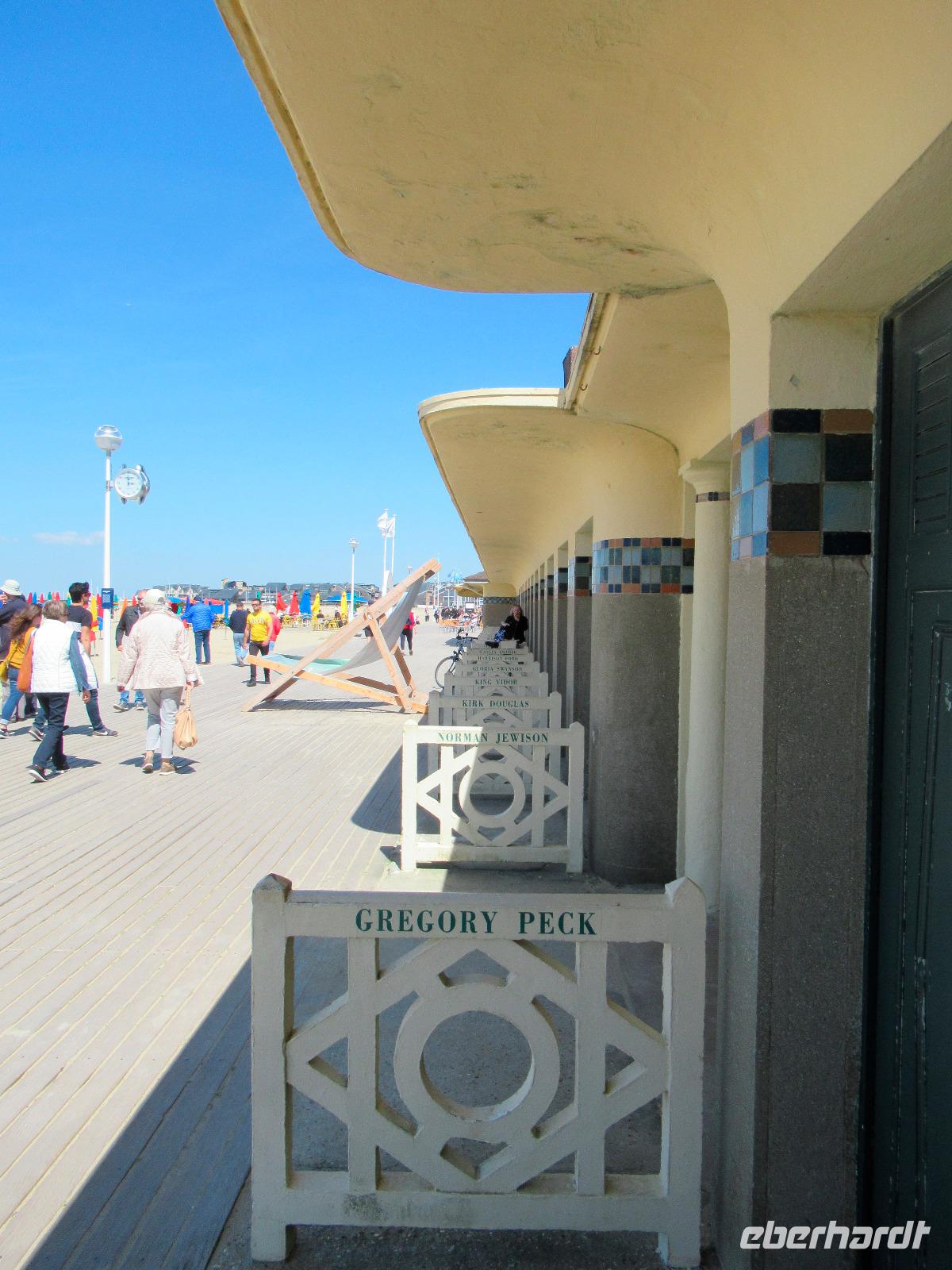Die Gebäude wurden zu Beginn des 20. Jahrhunderts nach bekannten Filmschauspielern und bekannten Personen aus Hollywood benannt. Jedes Jahr kommen zahlreiche Menschen zum größten amerikanischen Filmfestival Europas nach Deauville. Jeder von uns konnte auf den Brettern dieses schönen Strandes spazieren gehen, wo sich schon Coco Chanel einen großen Namen gemacht hat.