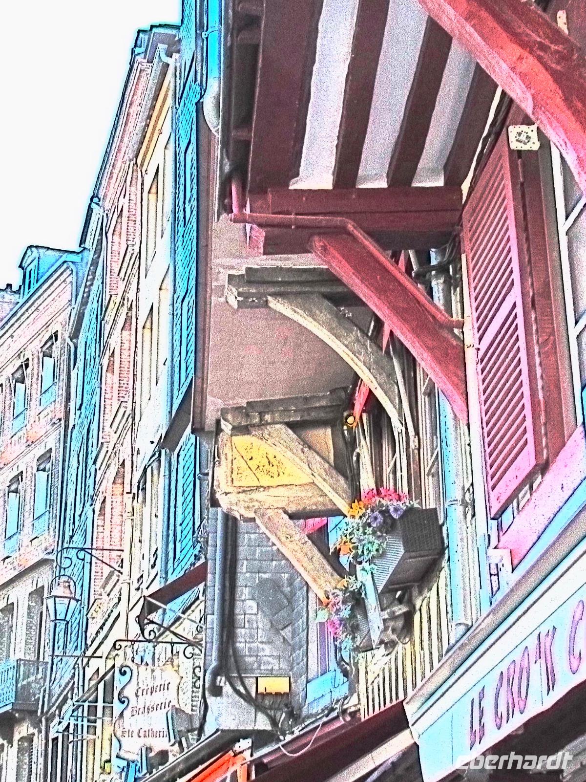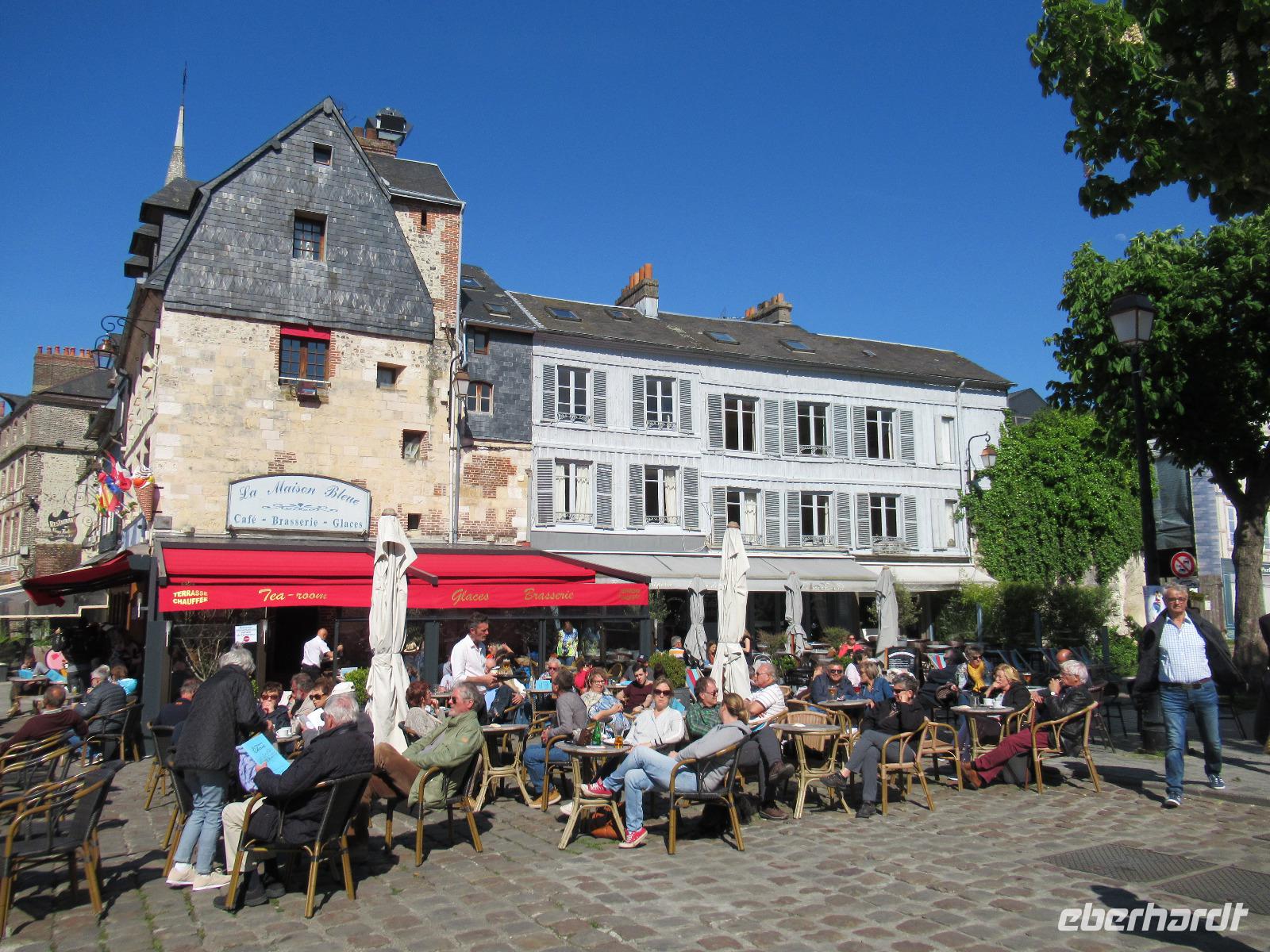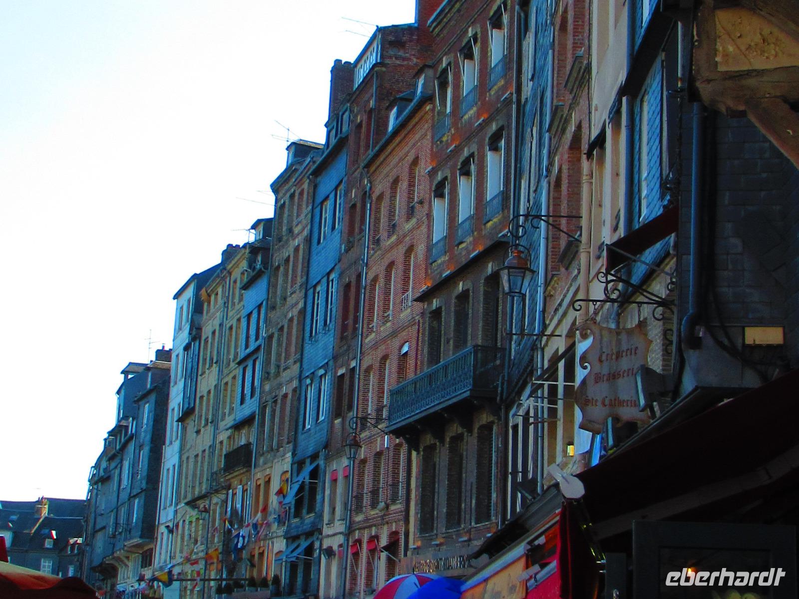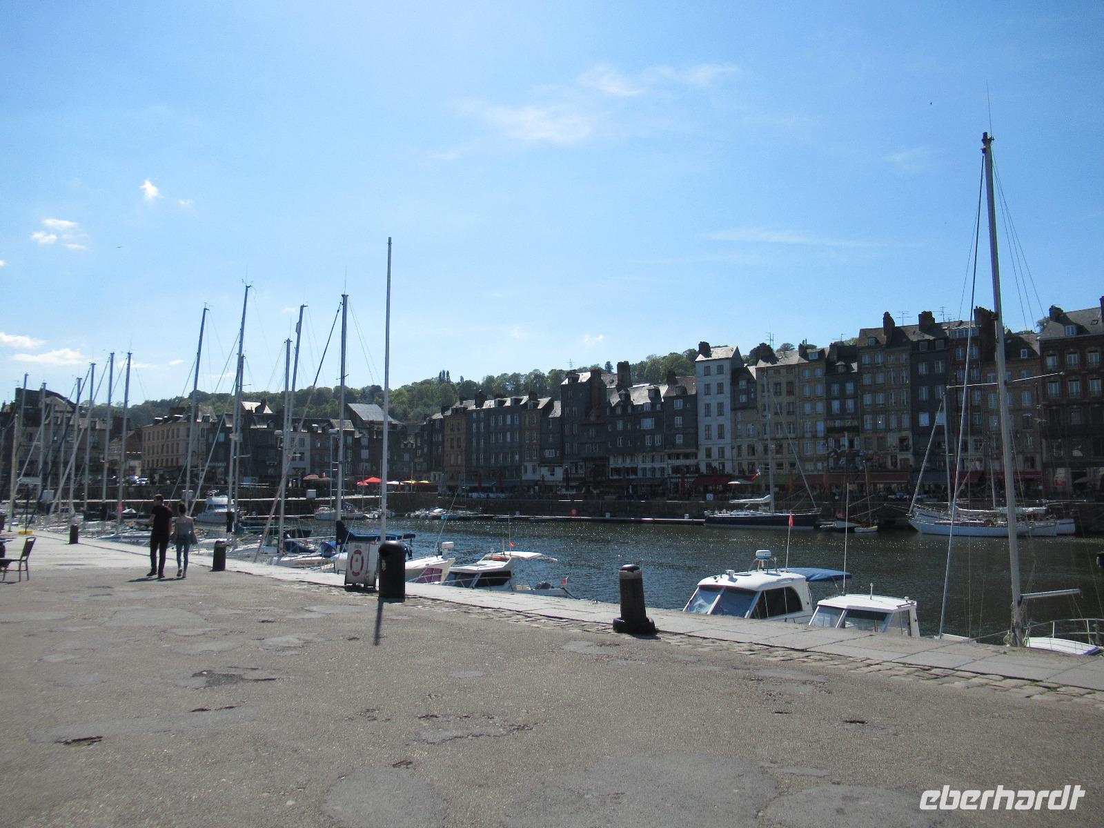 Heutzutage hat Honfleur mehr Kunstgallerien, als Fischer. Die Maler des frühen 20. Jahrhunderst kamen mit dem Zug aus Paris in dieses malerische Dorf und machten sich das zauberhafte Licht, den Wind und die Fischer zu ihren Motiven. Honfleur sieht mit seinen farbenfrohen Fassaden, welche hoch und dicht beieinander stehen, aus wie ein Bühnenbild. Wir sind jedoch in der Normandie.