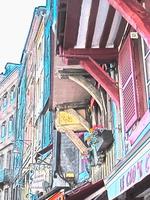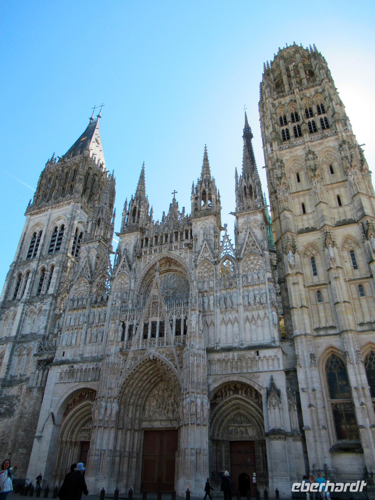 Unser Reiseleiter holte uns gegen 13:30 Uhr für eine Stadtführung ab. Rouen ist reich an Geschichte und Denkmälern. Wir besuchten das mittelalterliche Zentrum mit seinen Fachwerkhäusern, die imposante gotische Kathedrale, die kleinen engen Gassen sowie den Platz, auf dem Jeanne d'Arc auf dem Scheiterhaufen verbrannt wurde. Das "Gros Horloge", die "großen Uhr" ist eine der ältesten astronomischen Uhren Europas und eine beliebte Sehenswürdigkeit der Stadt. Die Gebäude am Ufer der Seine wurden im alten Backstein-Stil erbaut und beherbergen heute Bars und Restaurants, wo sich junge Leute regelmäßig treffen.
