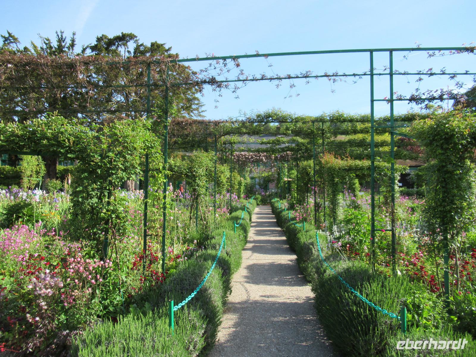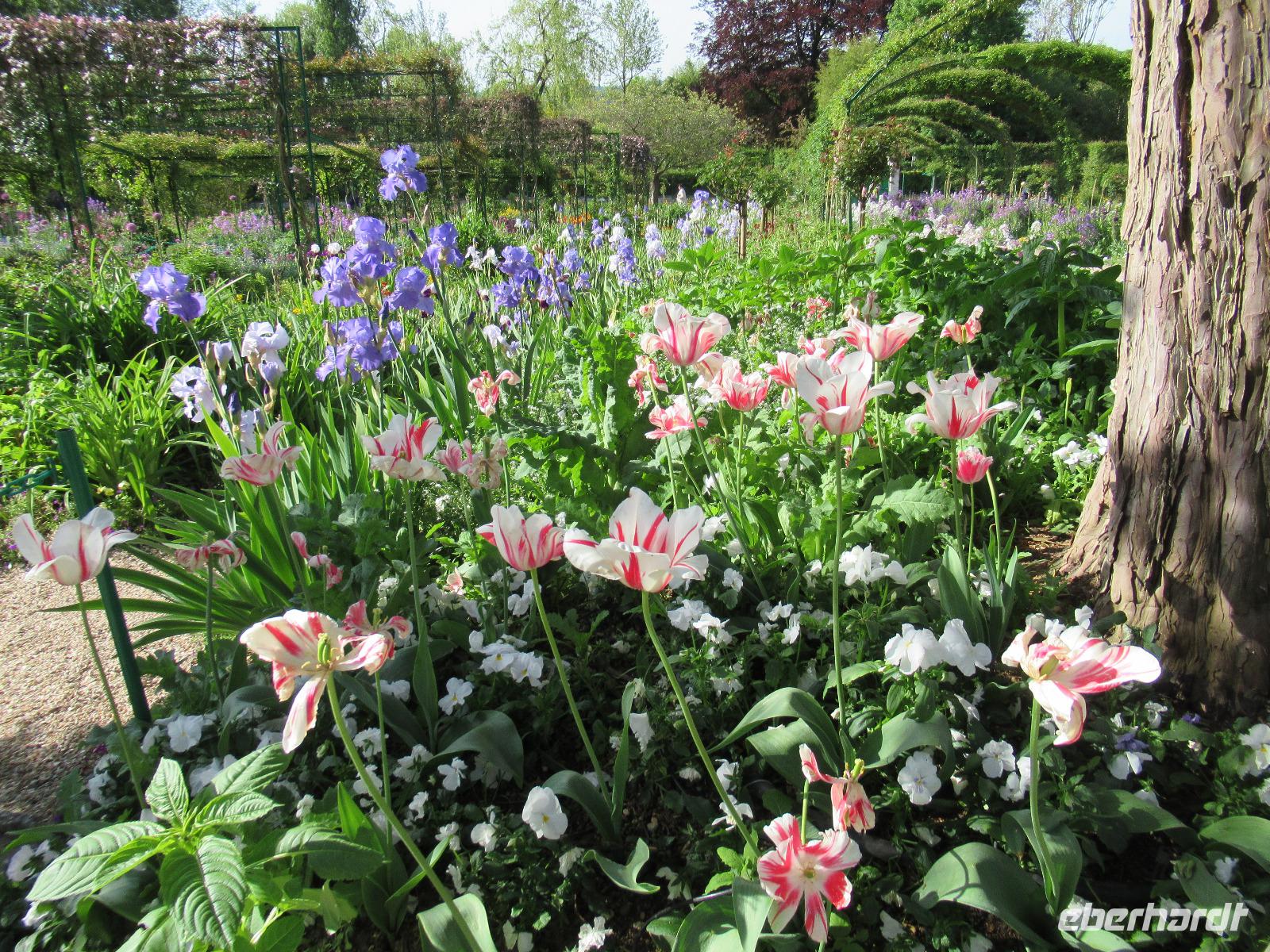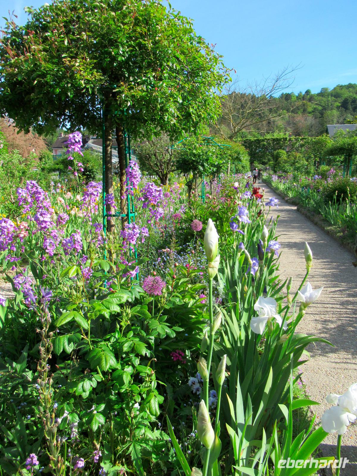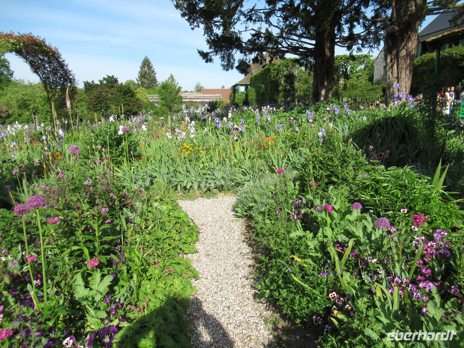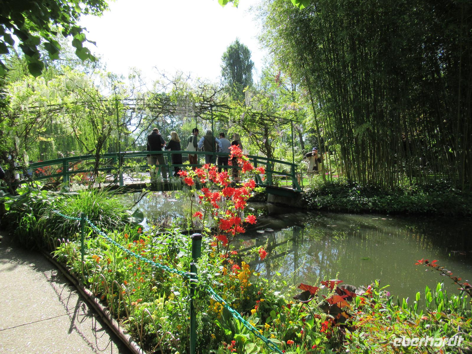 Es ist ein wunderschöner Frühlingstag mit blauem Himmel. Monets Garten steht mit einer Vielfalt an Farben und verschiedenen Blumen in voller Blüte. Viele Gärtner arbeiten hier das ganze Jahr über, um das Farbenreichtum zu erhalten, welches Monet diesem Garten gegeben hatte. Er wollte die Natur das ganze Jahr über bei jedem Wetter malen können. Monet lebte 40 Jahre lang in Giverny. Dieses kleine Dorf, das sich nicht viel verändert hat, ist dank ihm in der Welt berühmt geworden. Das Gemälde "Seerosen" mit der berühmten japanischen Brücke stammt aus diesem Garten. Die Seerosen blühen noch nicht, als wir den Garten besuchen, aber der Rest des Gartens ist blütenreich und farbenfroh.