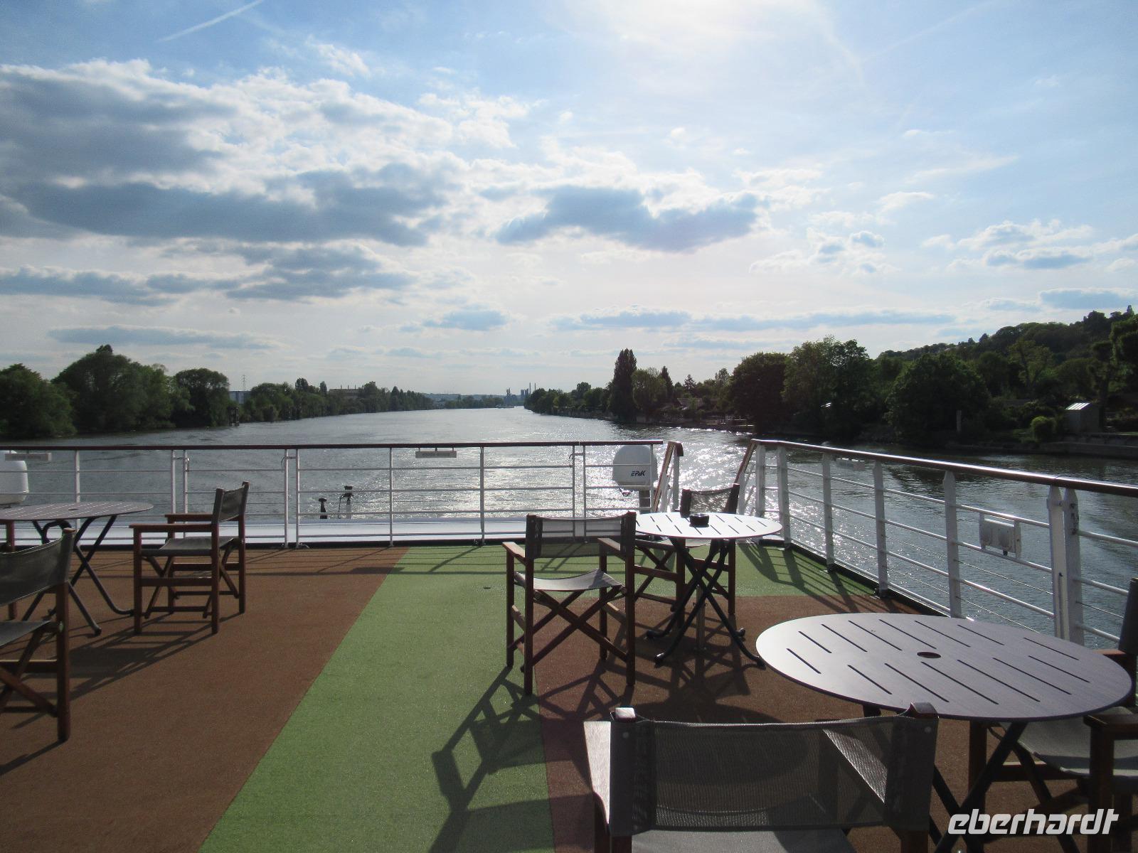 Um 14:00 Uhr sind alle an Bord und wir verlassen Vernon bei herrlichem Wetter in Richtung Paris.