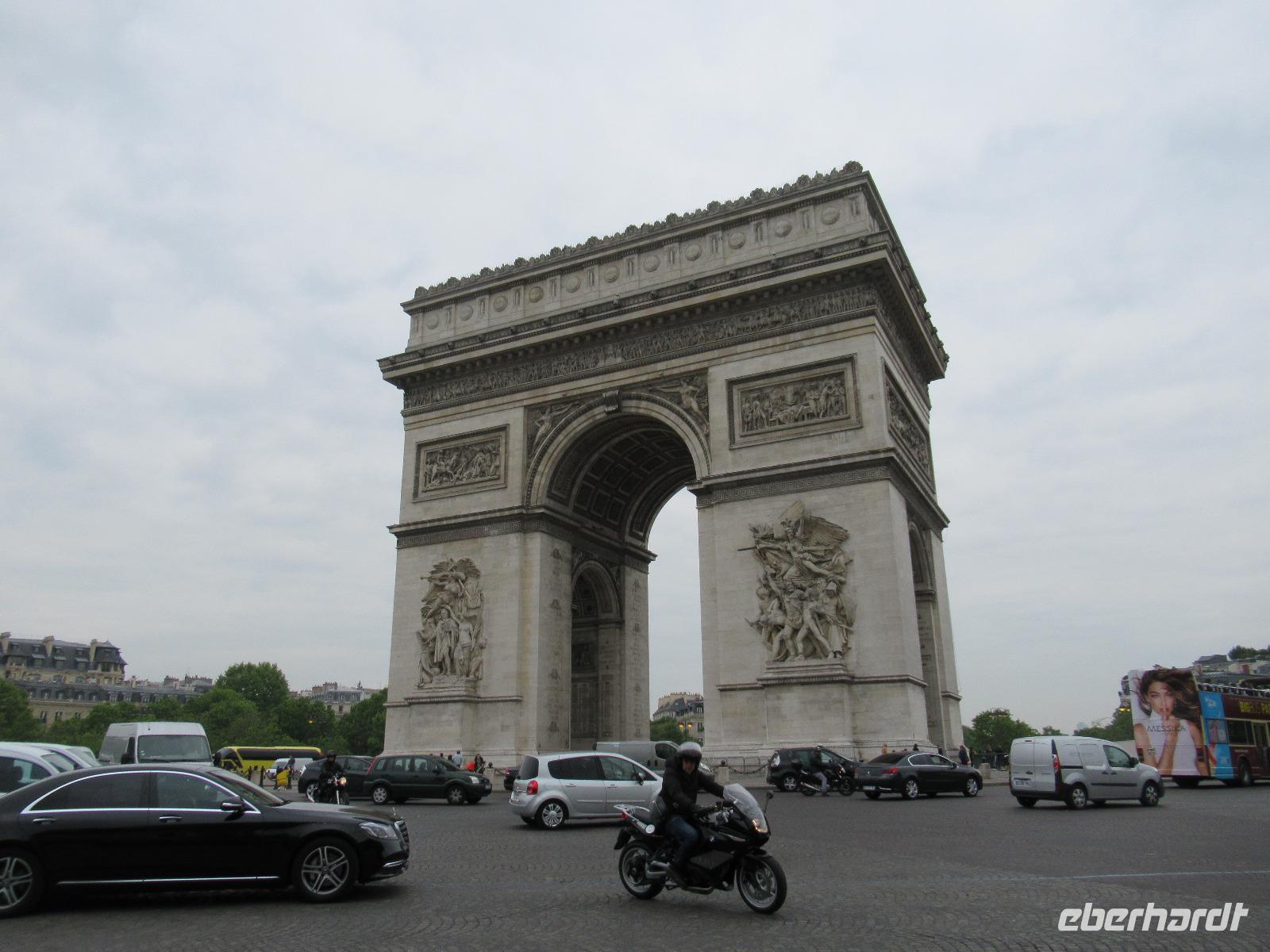 Ein Bus mit unserer Reiseleiterin Hildegarde erwartete uns. Gegen 9:30 Uhr brechen wir zu unserem Stadtrundgang auf. Eine Stunde später sind wir am Place de l'Etoile am Arc de Triomphe. Der Triomphbogen wurde unter Napoleon I. gebaut und ist gleichzeitig Nationaldenkmal der Franzosen.