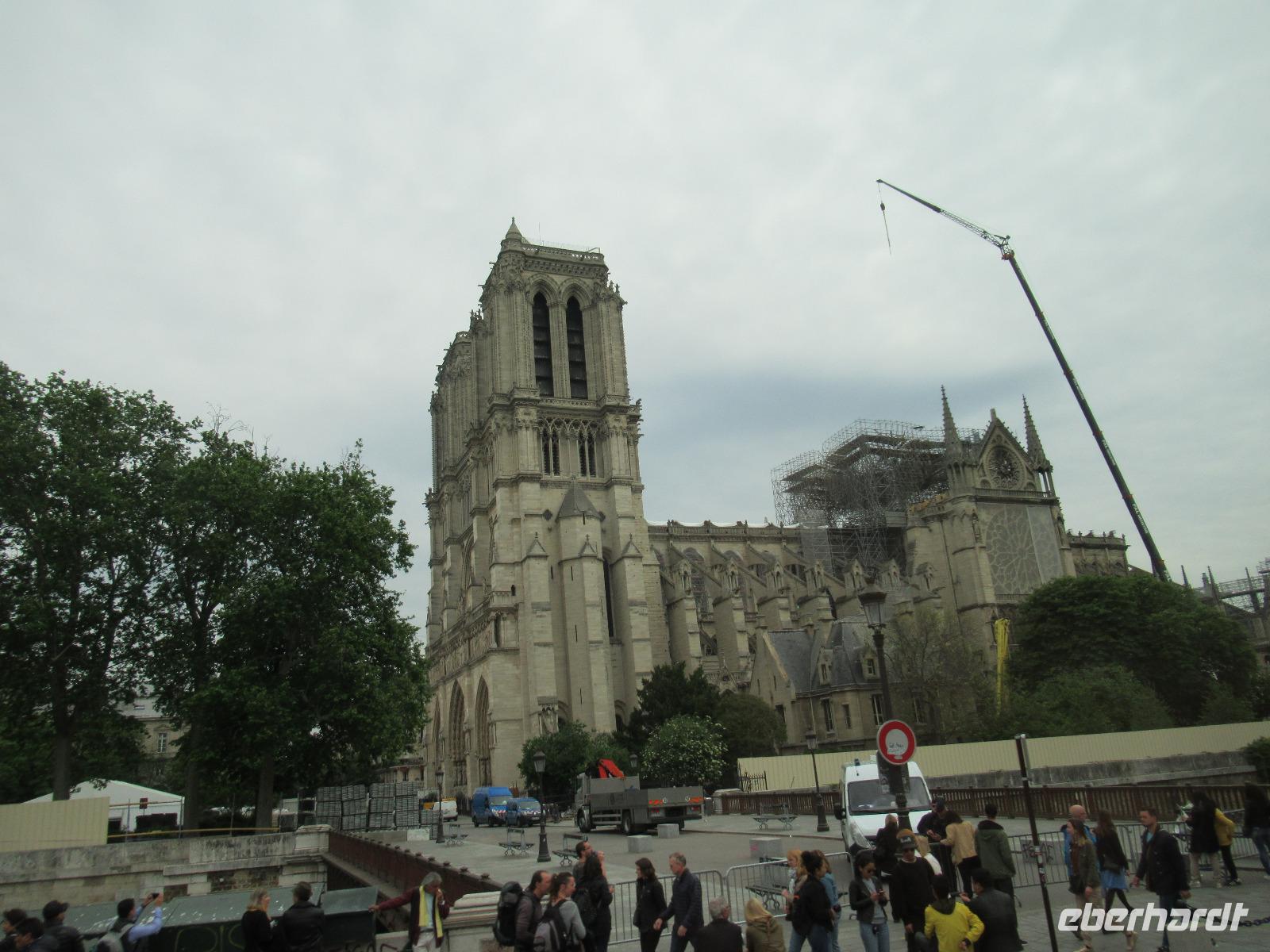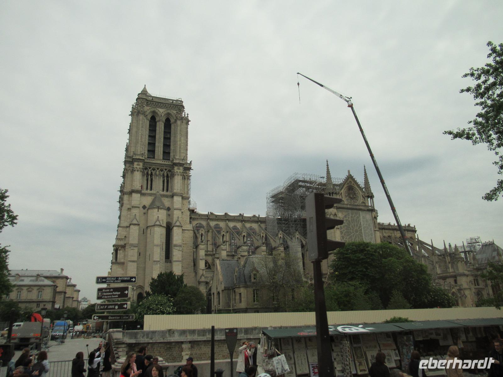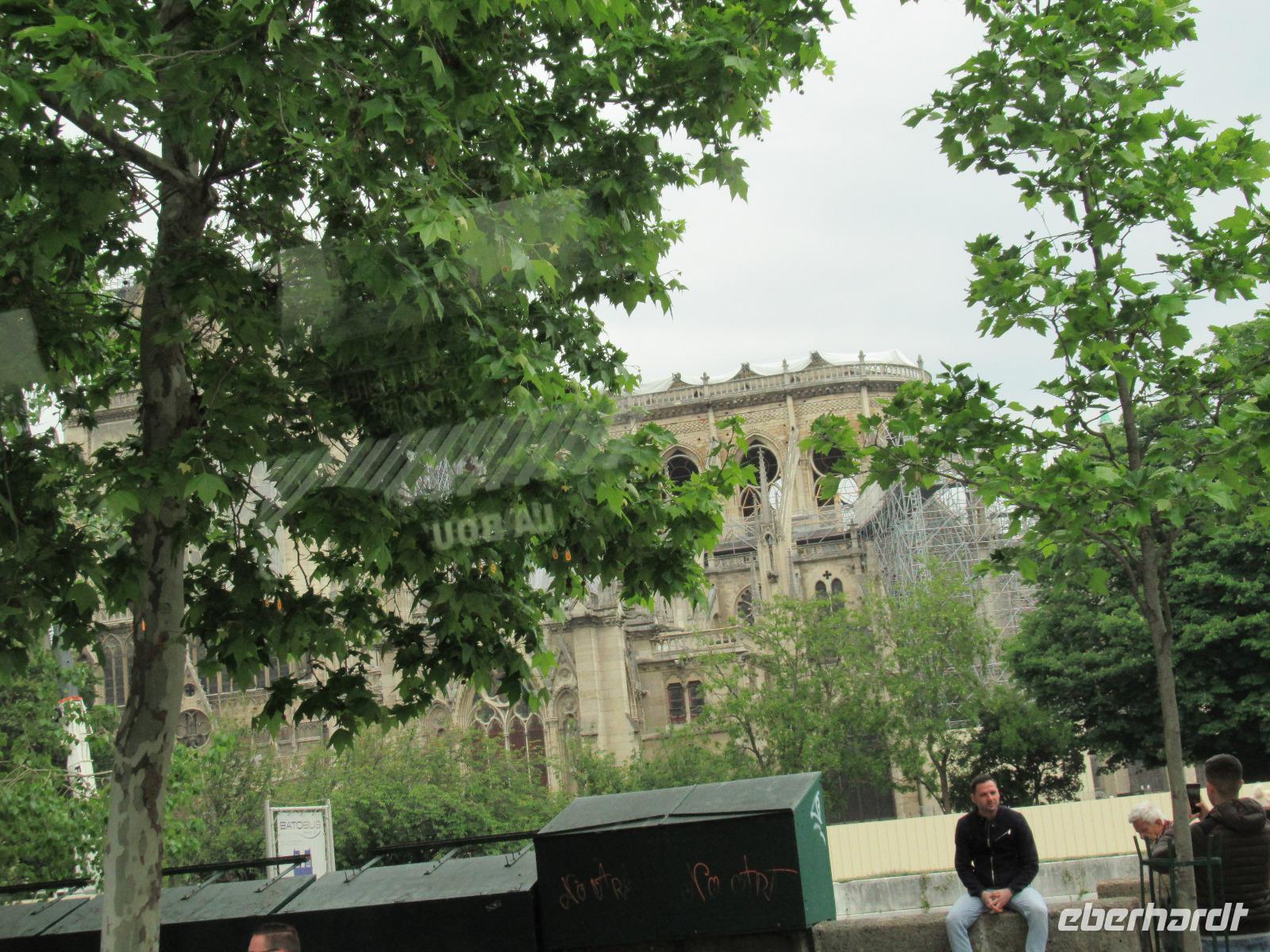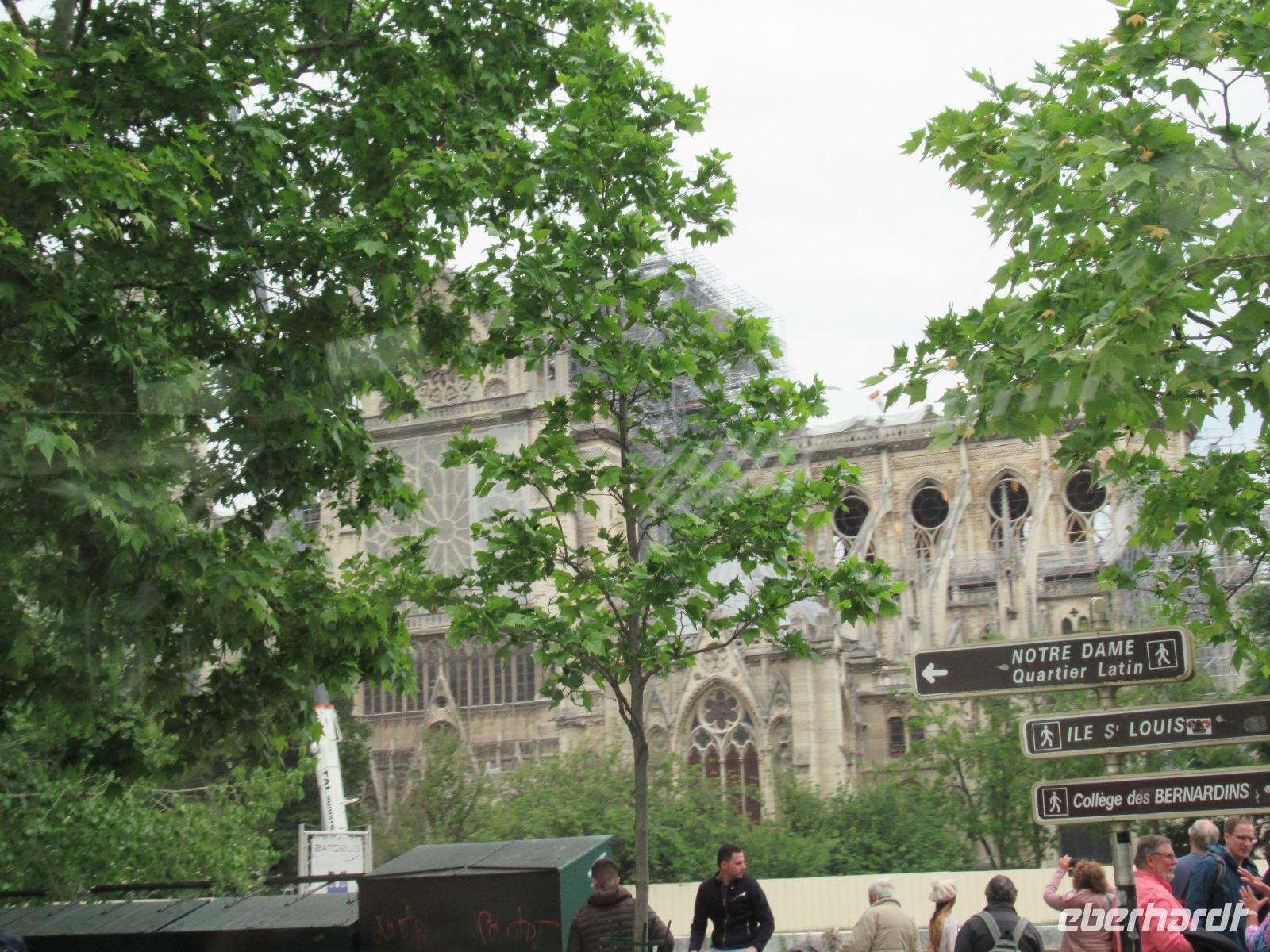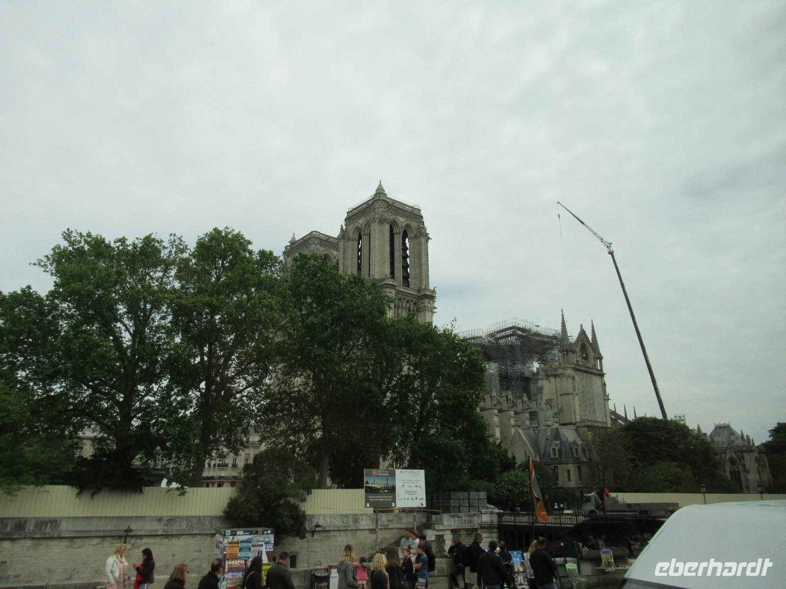 Zu unserer Rechten sehen wir aus der Ferne die Kathedrale Notre-Dame, der Muttergottes. Durch die schlimme Brandkatasthrophe, vor nicht allzulanger Zeit, können wir diese leider nicht besichtigen.