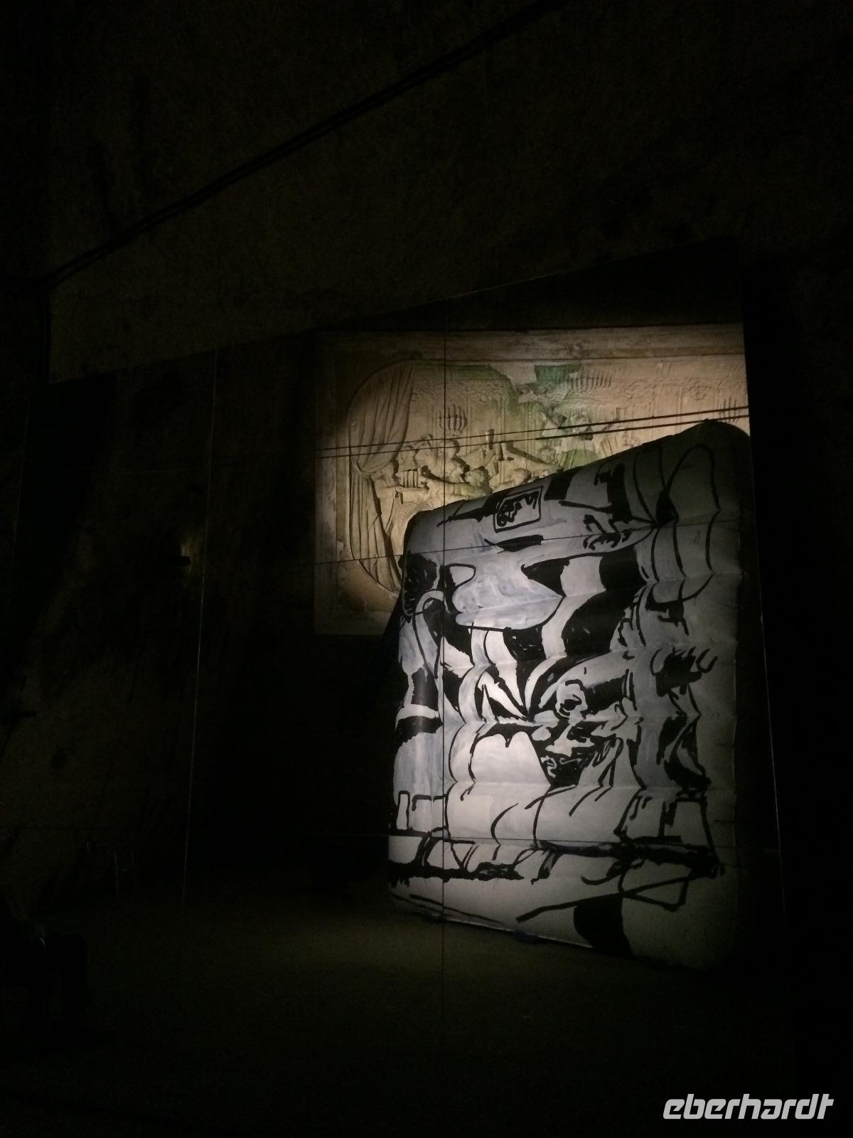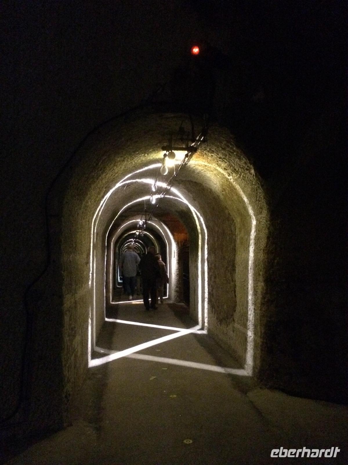 Selbstverständlich möchten wir bei unserem Aufenthalt in der Champagne auch das berühmteste der Getränke aus dieser Region probieren! Am Morgen haben wir einen Termin in einem der berühmtesten Champagnerkeller der Welt. Im Champagnerkellern von Pommery wird das Schaumgetränk seit mehreren Generationen hergestellt. Um in den Keller zu gelangen, müssen wir erst einmal 180 stufen hinab steigen. Im Keller angekommen ist die Temperatur kühl und feucht - ein faszinierender Ort. Ursprünglich wurde dieser Keller zur Gewinnung des einzigartigen weißen Kalksteins gegraben. Zu unserer Überraschung sind die Pommery-Keller auch eine Galerie für zeitgenössische Kunst. Die Werke mehrerer Künstler aus der Region werden hier gezeigt. In jedem Keller finden wir viele verschiedene Kunstwerke. Statuen, Mosaike und in den Himmel ragende Rohrinstallationen prägen das Bild.