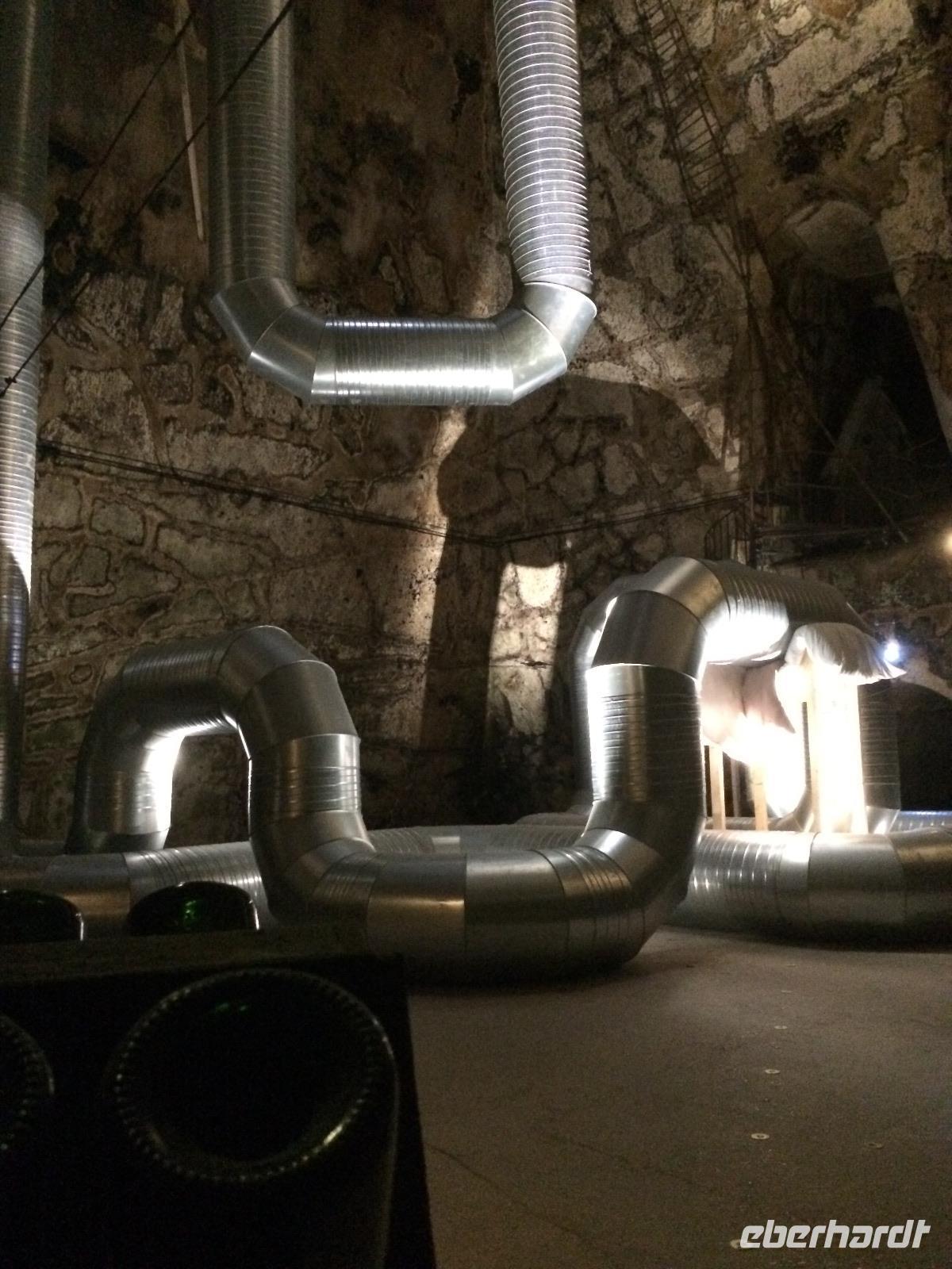Unser Reiseleiterin Anne erklärt uns ausführlich, wie in diesem Kellern seit 1866 Champagner hergestellt wird und wie sich die Keller in den Jahren technisch weiterentwickelt haben.