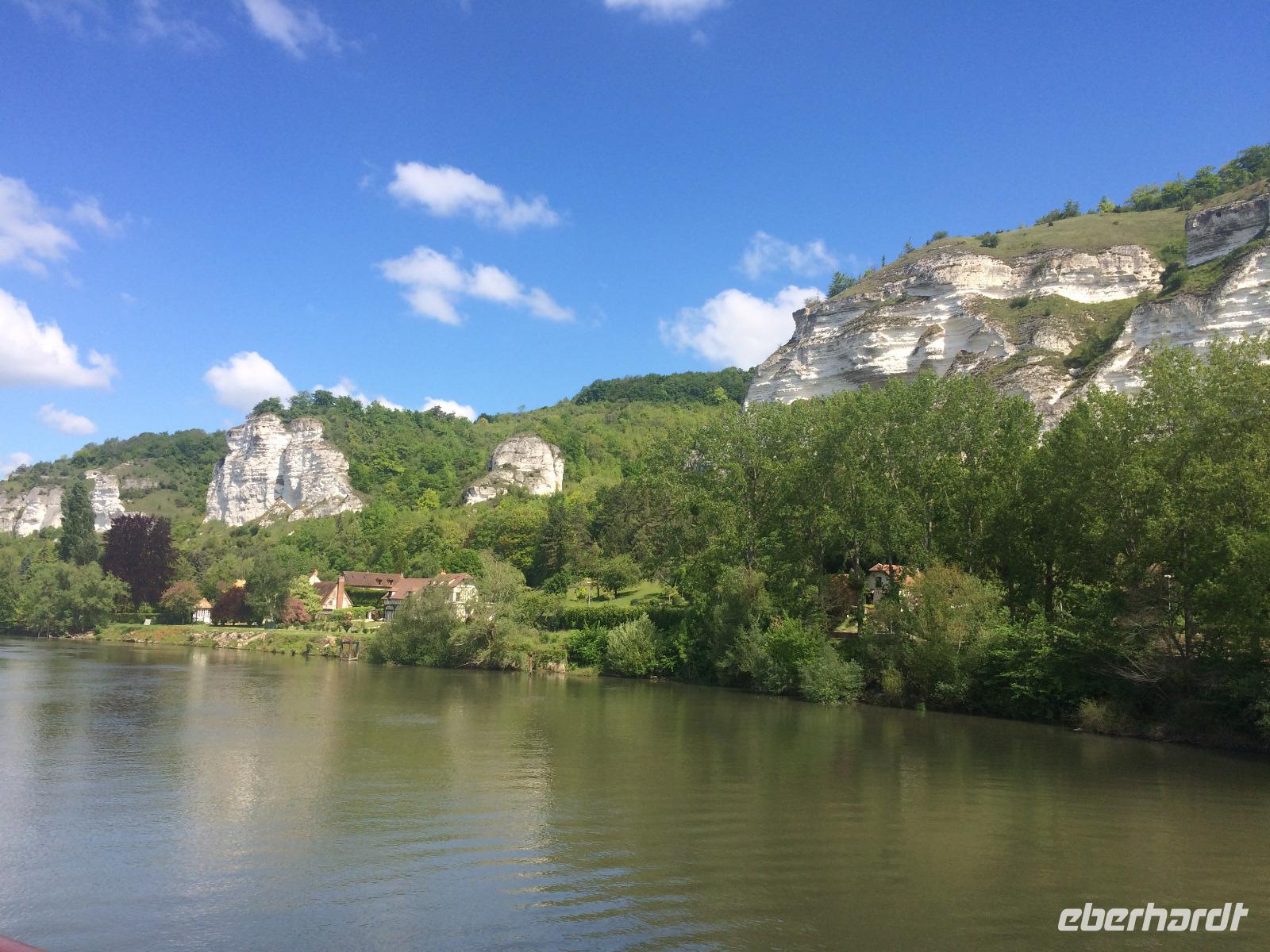 Die Ufer der Seine sind grün und von einzigartiger Schönheit. Kleine Kalksteinfelsen schmiegen sich wie eine weiße Perlenkette, an den Ufern entlang. Sie werden von kleinen Fachwerkhäusern mit Schiefer- oder Strohdächern und Überresten einer vergangenen Generation unterbrochen.