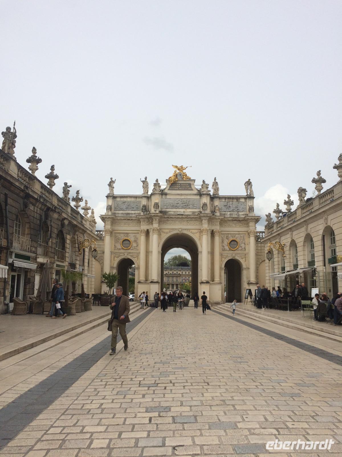 Wir fahren auf der Straße nach Nancy, der ersten Etappe auf unserem Rückweg. Wir durchqueren Frankreich nach Osten, um um 14:00 Uhr in Nancy anzukommen. Hier erwarten uns zwei Reiseleiterinnen, die uns ihre Stadt zeigen wollen. Wir sind überrascht von der Schönheit von Nancy mit dem Place Stanislas, zu Ehren von Stanislas Leszczynski, der den Torbogen für König Ludwig XV bauen ließ.