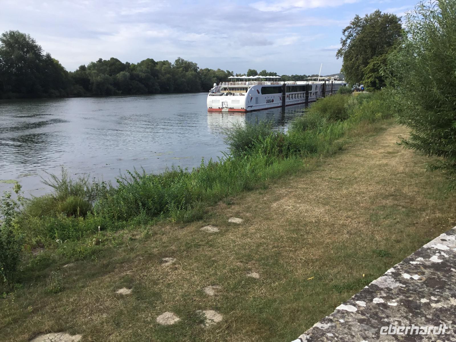 Der Blick aus dem Fenster offenbart uns die Schönheit der Flusslandschaft. Unsere VIVA ist nicht in Vernon vor Anker gegangen, sondern in La Roche-Guyon. Hoch über den für das Seine-Tal typischen Kalksandsteinfelsen thront die mittelalterliche Burg. Unter dieser befindet sich das Château und auch ein Garten darf hier nicht fehlen.
