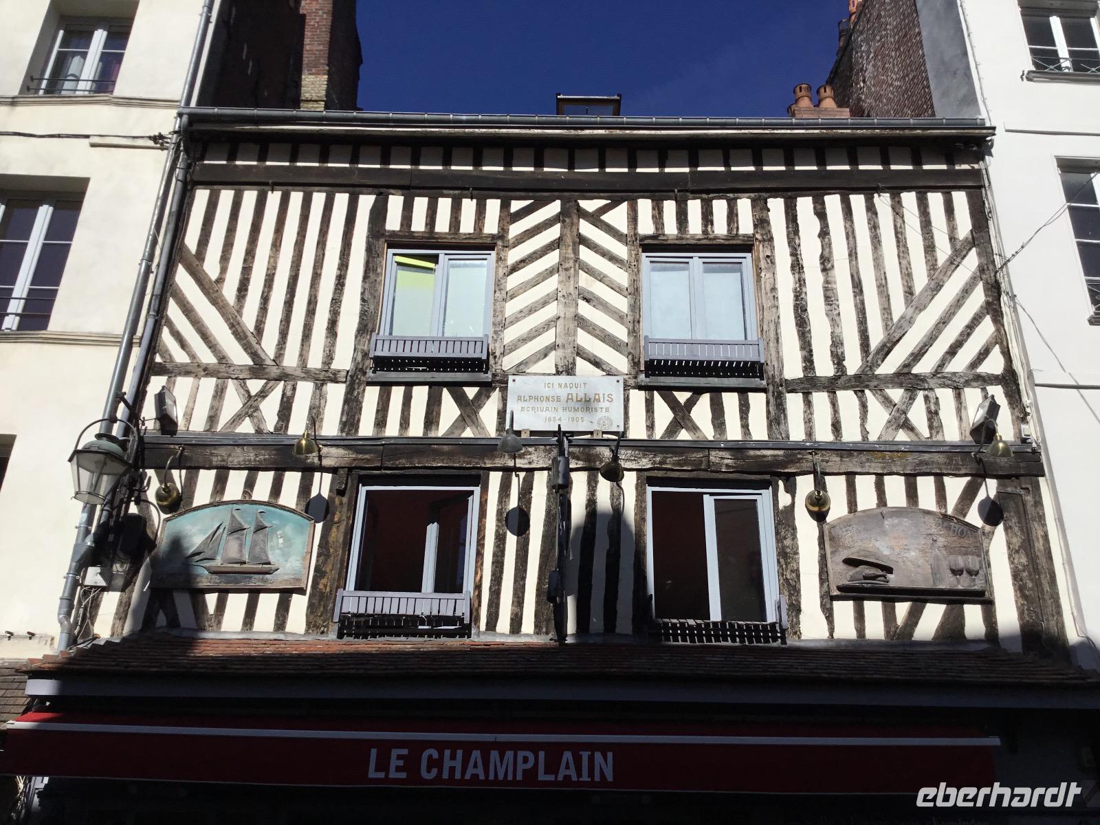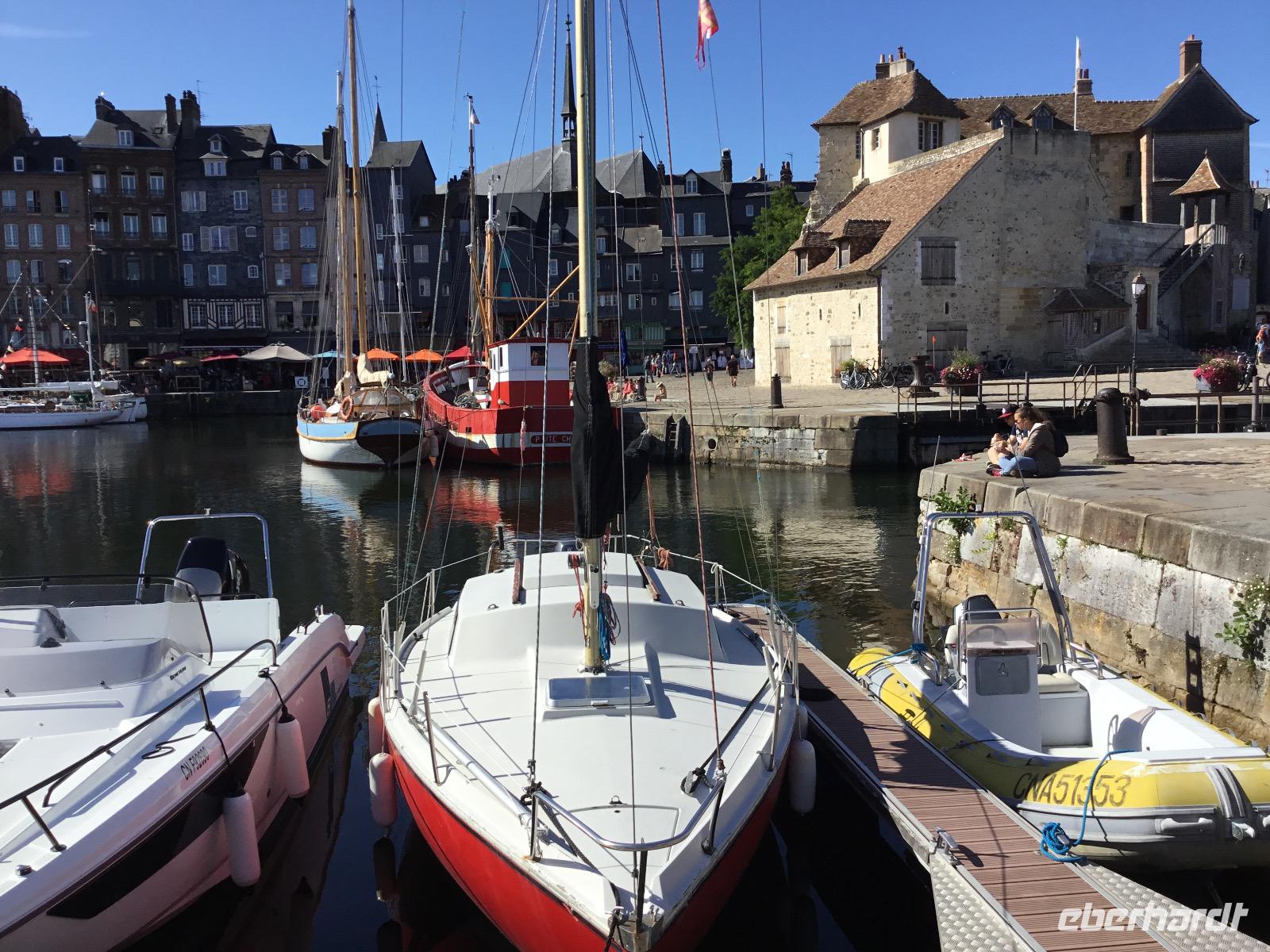 Wir lassen schweren Herzens diesen wunderbaren Strand zurück und fahren in das Städtchen Honfleur. Schon nah an der Seine-Mündung wurde diese Stadt durch die Reeder und die Seefahrt reich und bedeutsam. Zahlreiche Häuser zeugen hiervon und die Kirche Sainte-Catherine mit ihren Holzkonstruktion zeigt eindrucksvoll wie wichtig der Schiffsbau in dieser Region war. Wir beschließen unseren Besuch mit einen Kostprobe der Produkte der Normandie: Cidre, Pommeau und Calvados. Alles aus den guten Äpfeln hergestellt, finden diese Getränke auch bei so manchem Ausflügler Gefallen.