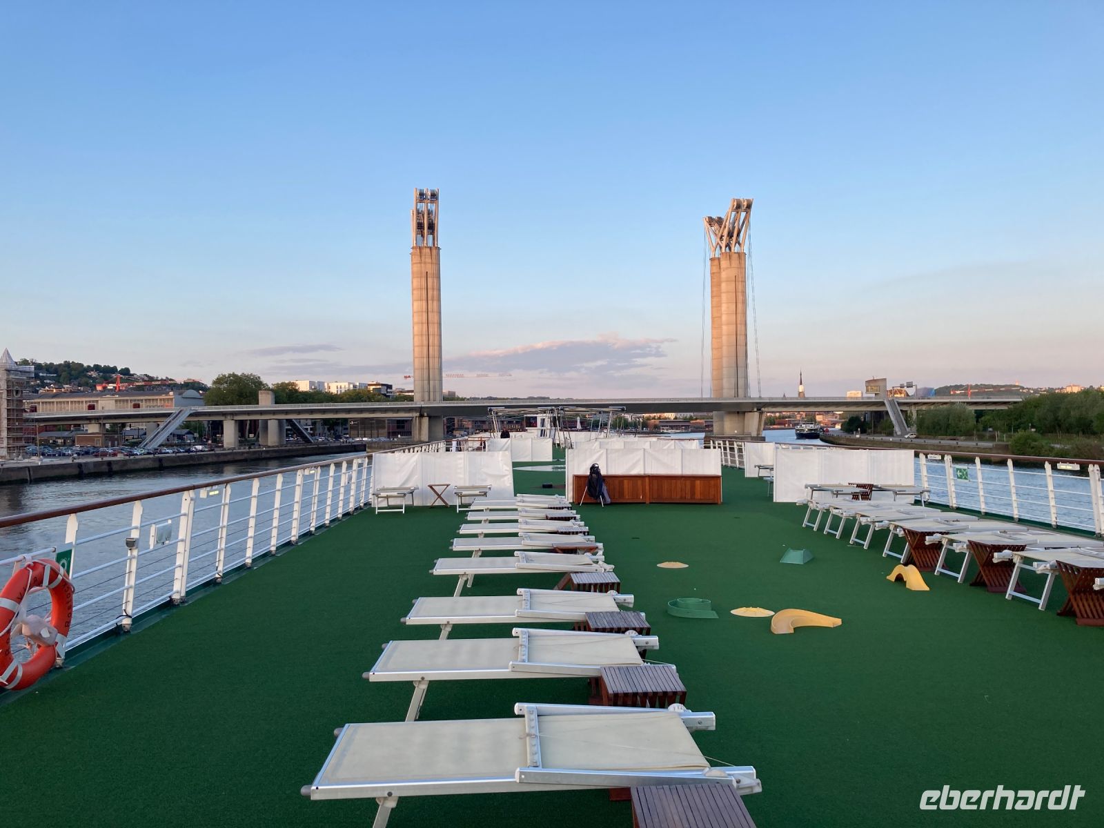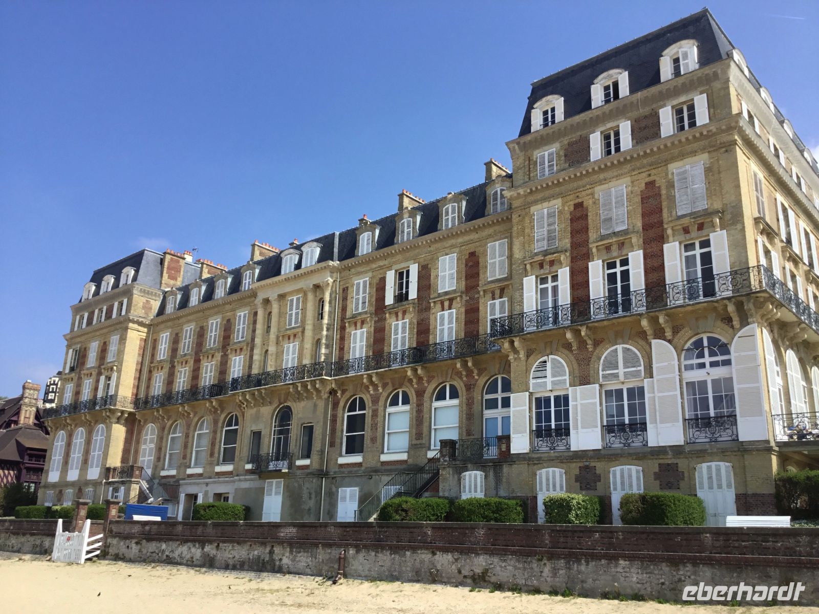 Das Schiff hatte am Abend Rouen verlassen und wir erwachen in Caudebec-en-Caux auf. Der Tag der Befreiung wird natürlich auch hier begannen. Wir werden Zeugen der Feierlichkeiten, bei denen an die Opfer der Kriege gedacht wird. Dieser Ort markiert für uns den weitesten Punkt unserer Kreuzfahrt. Doch per Bus geht es für uns heute nochmals an die Küste. Mit Trouville und Deauville lernen wir die Traditionsbadeorte vor allem der Pariser kennen. Hier konnte die Sommerfrischler mit der Eisenbahn anreisen, was für eine schnelle Entwicklung der Orte sorgte. Schöne Villen in Trouville und Deauville zeugen von dem Reichtum der Besucher und lassen die beiden Städte bis heute als mondäne Badeorte erscheinen. Doch bei aller schönen Bäderarchitektur, der eigentliche Grund, warum es so viele Gäste alljährlich hierher zieht, ist der fabelhafte Sandstrand, der das Leben gleich viel leichter erscheinen lässt.