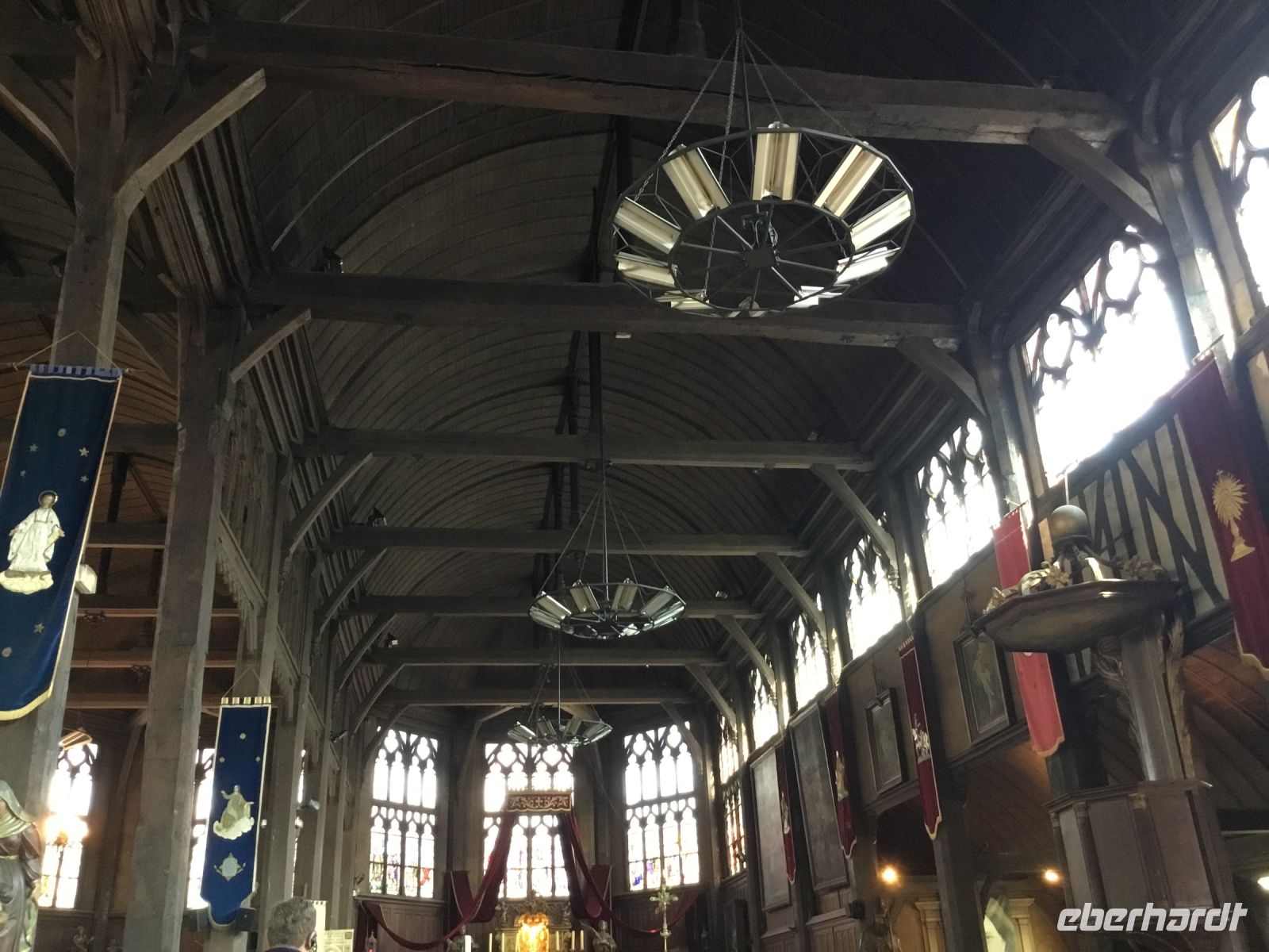 Als Abschluss des Tages geht es nun noch das Honfleur. Diese Stadt markiert die Mündung der Seine. Der Maler Boudin stammt aus dieser Stadt. Er gilt als ein Wegbereiter des Impressionismus. Und Eric Satie, der für die moderne Musik neue Impulse gab, ist ein Sohn dieser Stadt. Neben dem schönen Hafen hat Honfleur eine besondere Kirche: Sainte Catherine. Diese Holzkirche stammt aus dem 12. Jahrhundert und überrascht mit ihrer eigenwilligen Architektur. Zu einem Besuch in Honfleur gehört selbstverständlich eine Calvadosprobe. Schließlich sind wir in der Region der Äpfel!