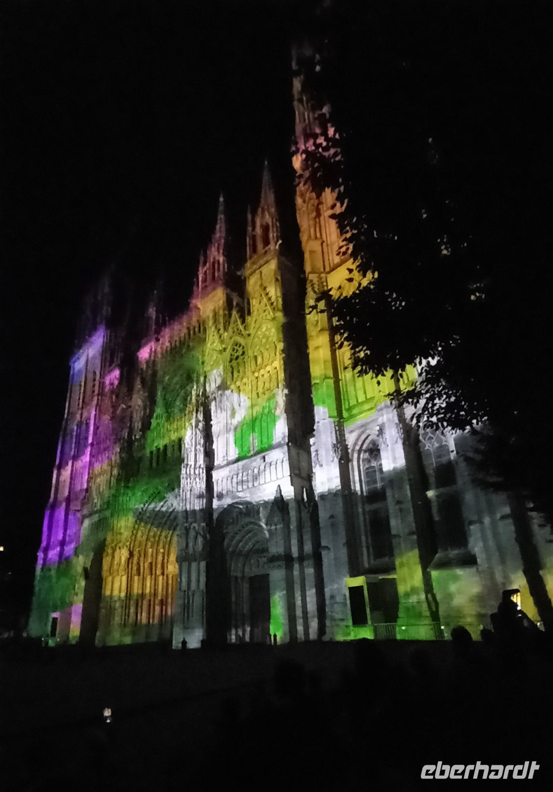 Nachdem Abendessen ging es dann erneut in die Altstadt, um das Lichtspektakel an der Kathedrale zu bestaunen. Eine knappe halbe Stunde diente die Fassade von Notre Dame Rouen als Projektionsfläche für ein unvergessliches magisches Farbenspiel im normannischen Sommerhimmel. Gänsehaut pur.