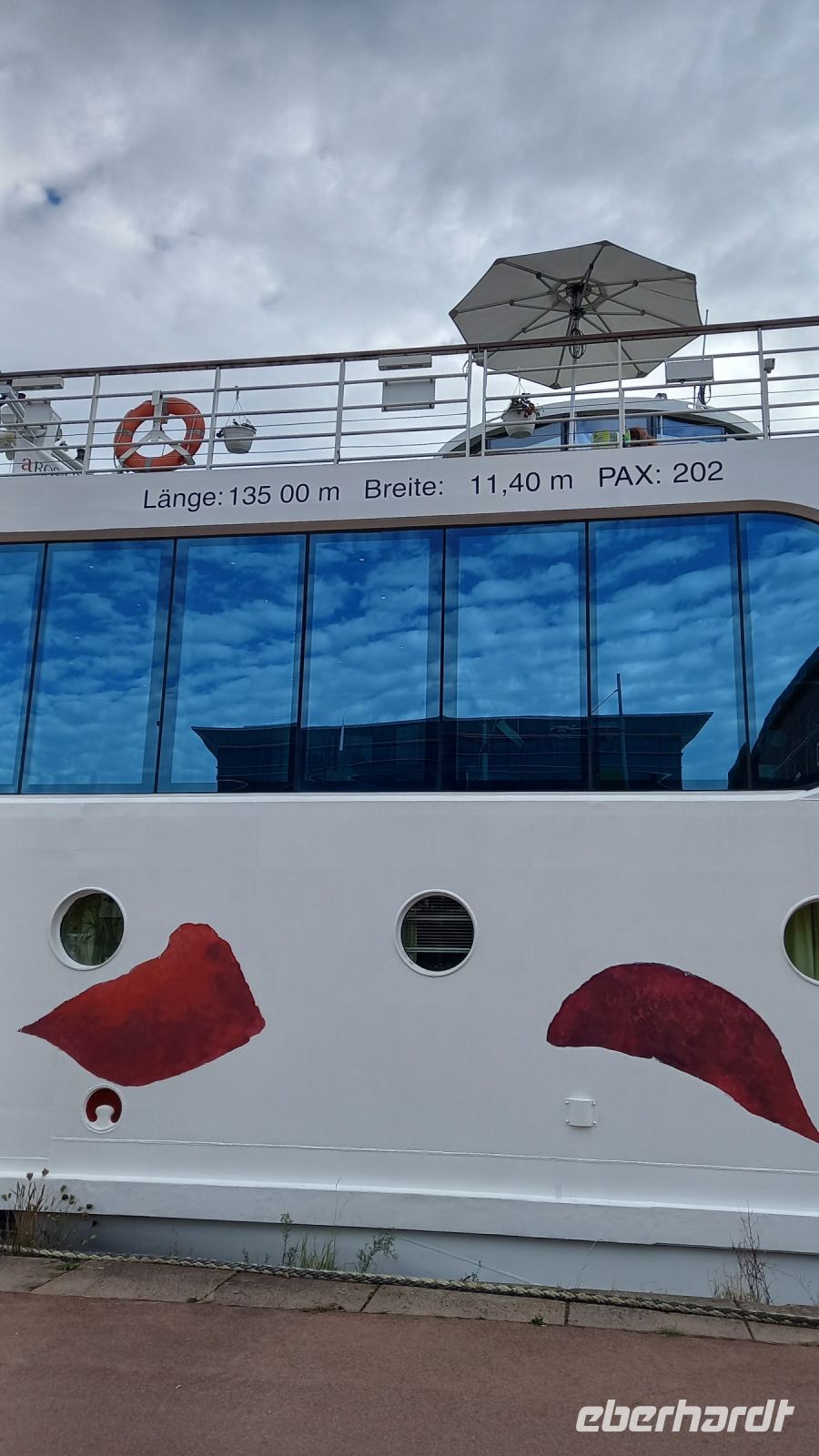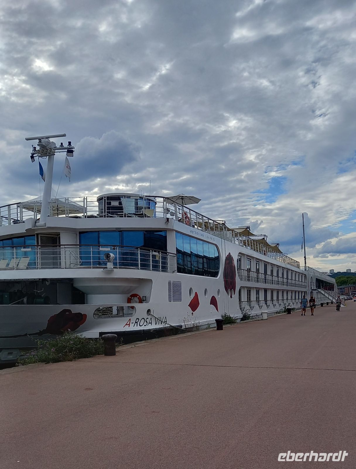 Vor dem Abendessen wurden alle Gäste in die Sicherheitsbestimmungen des Schiffes eingewiesen, das Ausflugsangebot der Reise wurde ausführlich vorgestellt und wir legten pünktlich um 19.00 Uhr Richtung Rouen ab.