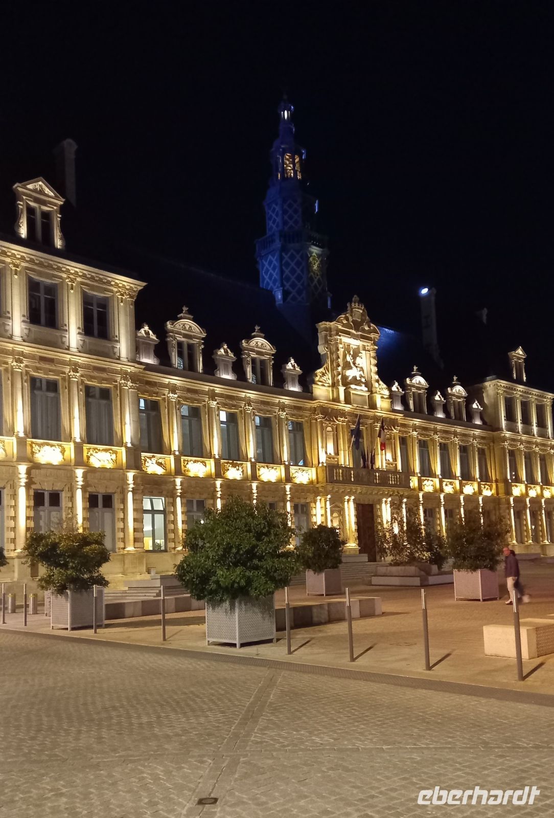 Im Hotel angekommen bekamen alle Gäste ihre Schlüssel für ihre Zimmer und konnten dann 30 Minuten später ein leckeres 3 Gänge Menü in der 7. Etage des Gebäudes genießen. Von der dortigen Dachterrasse hatten wir einen wunderbaren Blick auf die Altstadt von Reims mit seiner imposanten Kathedrale. Nach der wohltuenden Stärkung erkundeten wir dann in einem einstündigen Stadtrundgang Reims bei Nacht. Dabei konnten wir das historische Rathaus, den königlichen Platz und die weit in den Nachthimmel ragende Kathedrale Notre Dame von Reims bestaunen. Alle Sehenswürdigkeiten waren strahlend und warm beleuchtet, so dass uns Reims in angenehmer Erinnerung bleiben wird.