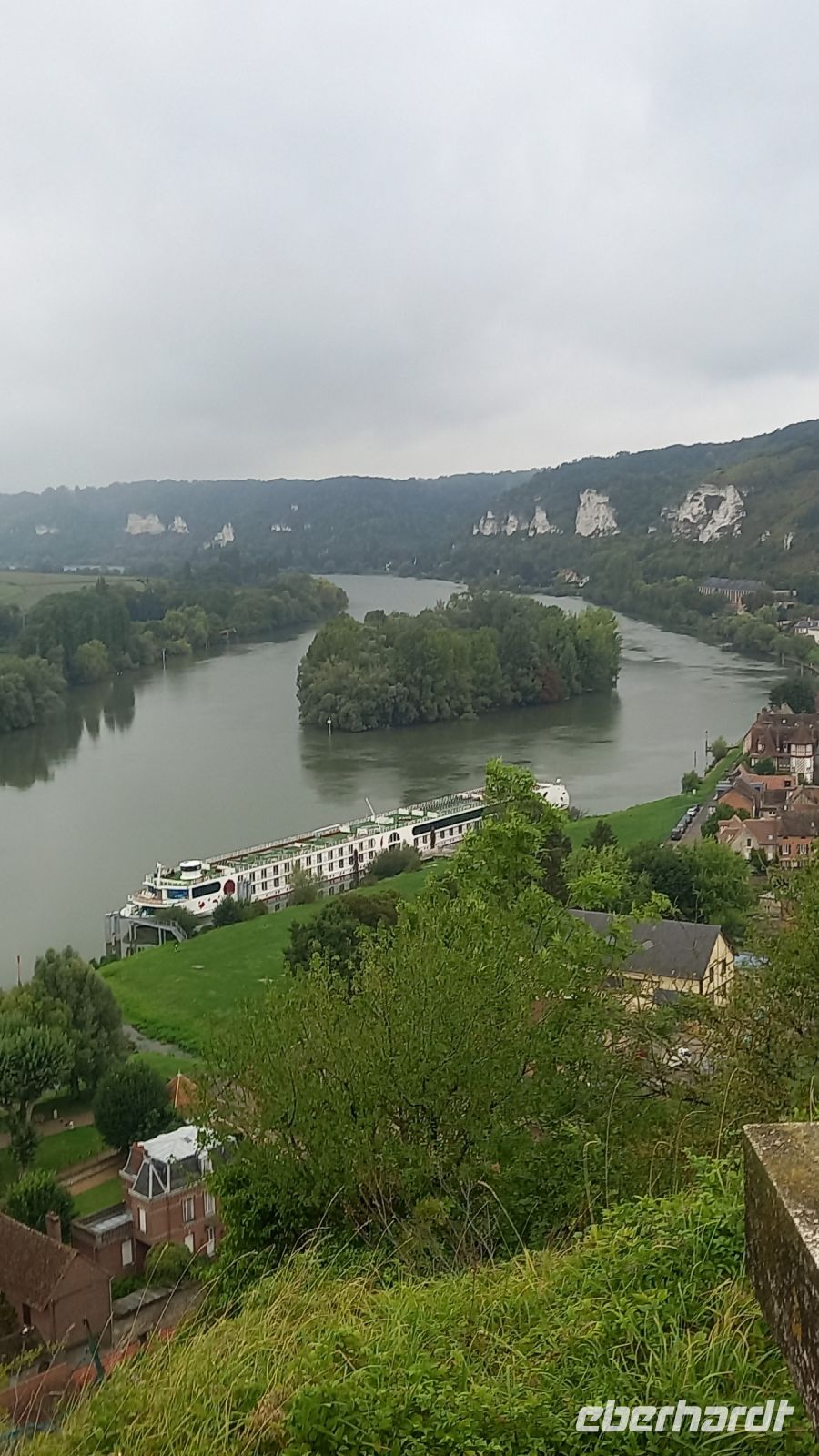 Auch heute Morgen zeigte sich die Normandie wieder von ihrer regnerischen Seite, trotzdem trafen sich die meisten Gäste nach dem Frühstück zu einem geführten Stadtrundgang durch das kleine, verträumte Les Andelys. Berühmt wurde dieser Ort durch das hochgelegene Chateau Gaillard, das Richard Löwenherz zum Schutz des englischen Herzogtums im 12. Jh. erbauen ließ. Von dort hat man natürlich einen fantastischen Blick auf die sich windende Seine mit ihren kleinen Inseln. In der Altstadt konnte man wieder in kleinen Gassen mit schmalen Fachwerkhäusern entlangschlendern und die gotische Kirche besichtigen.