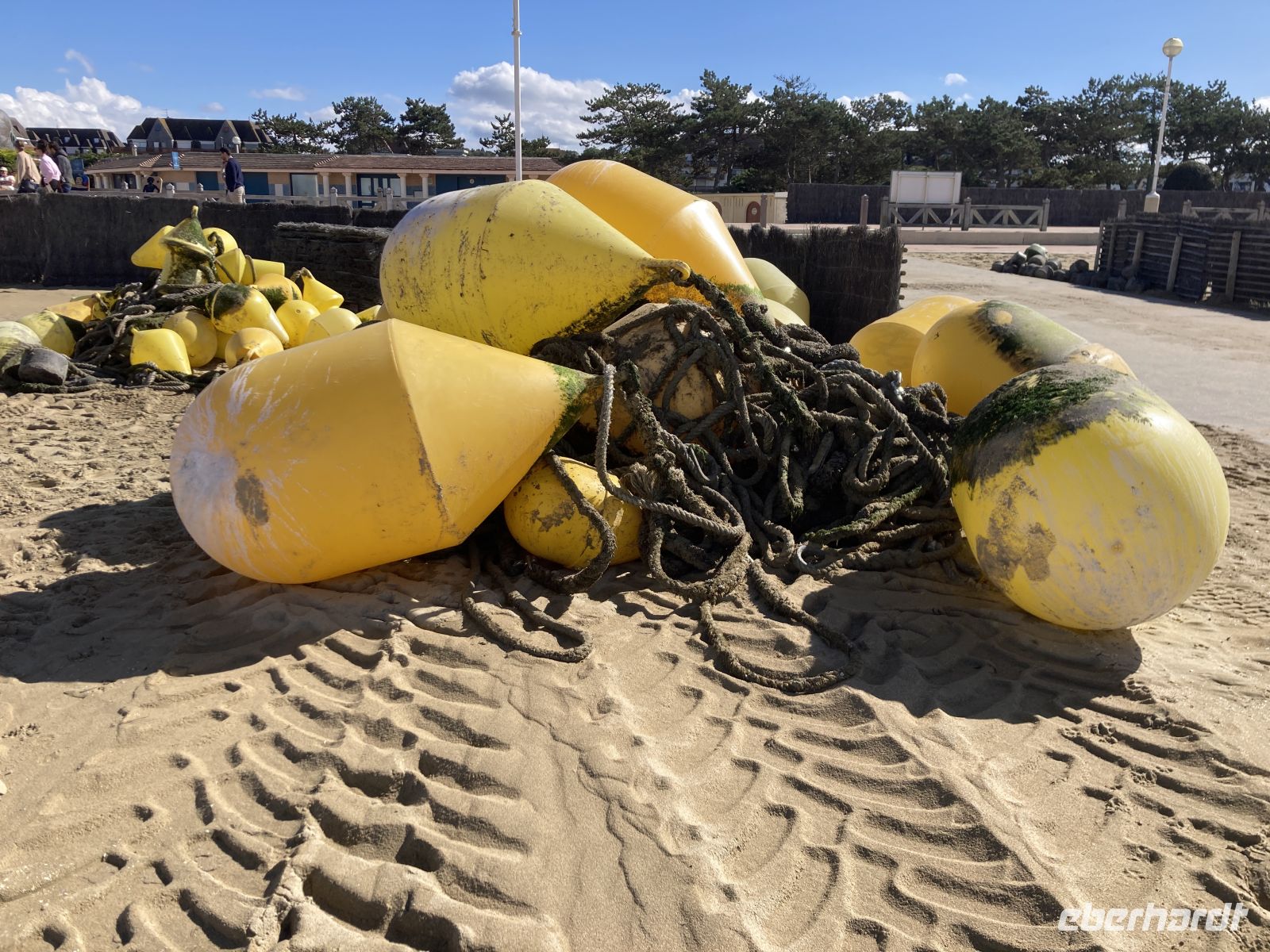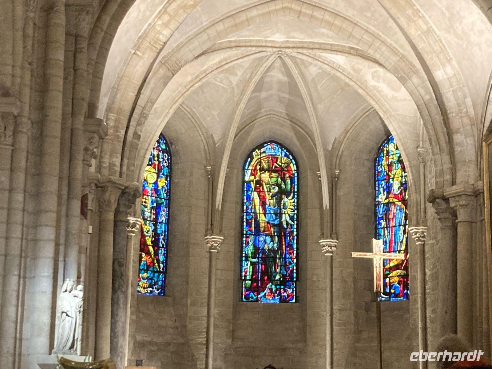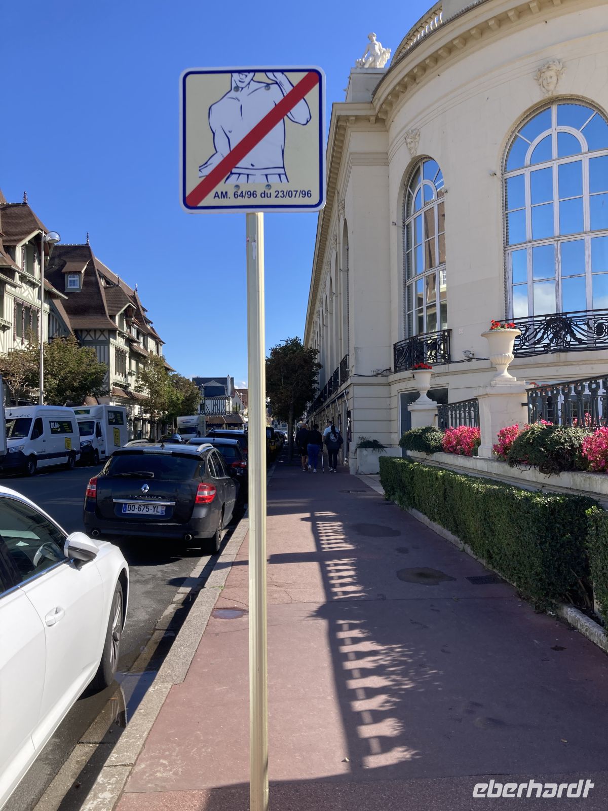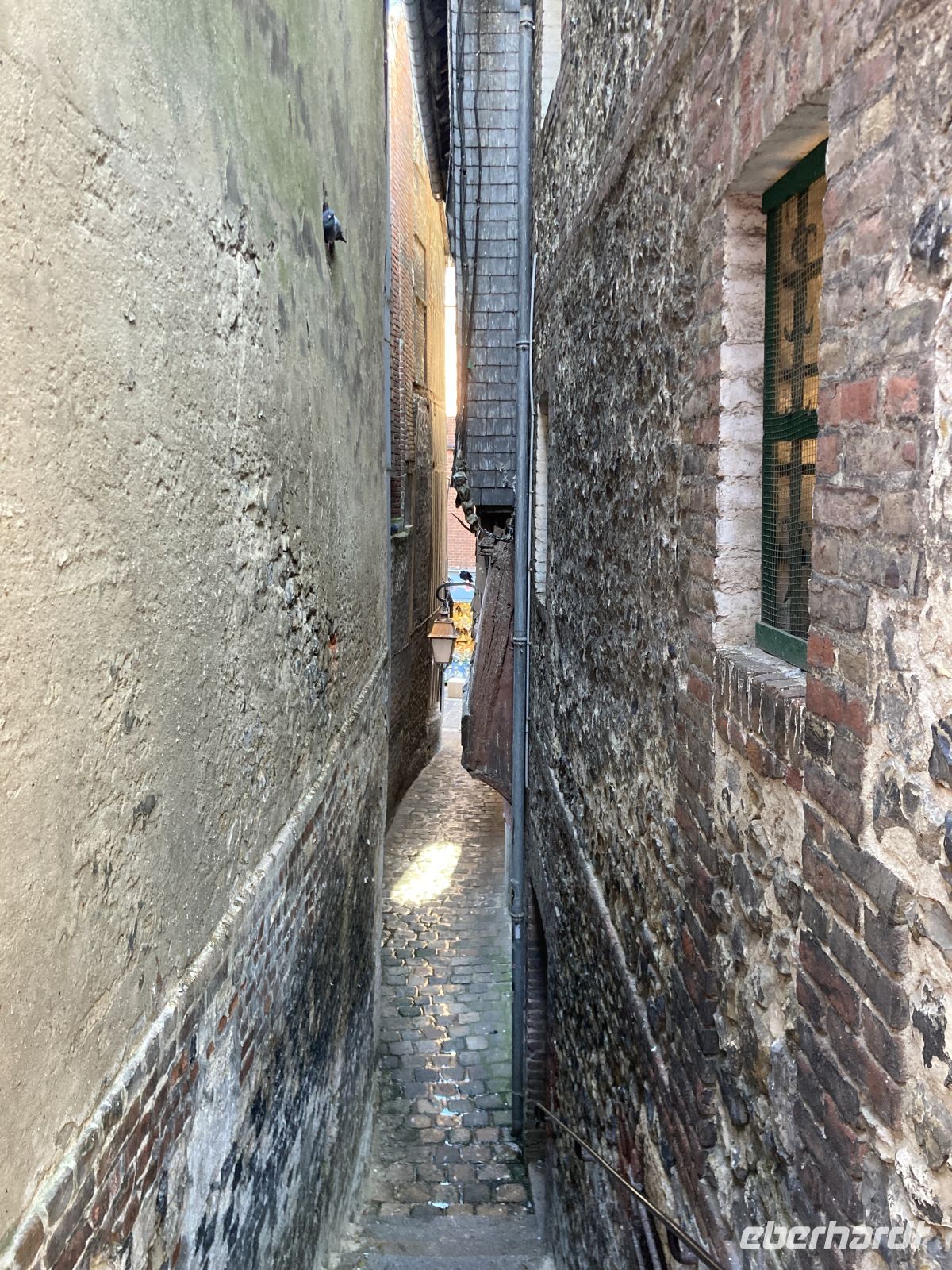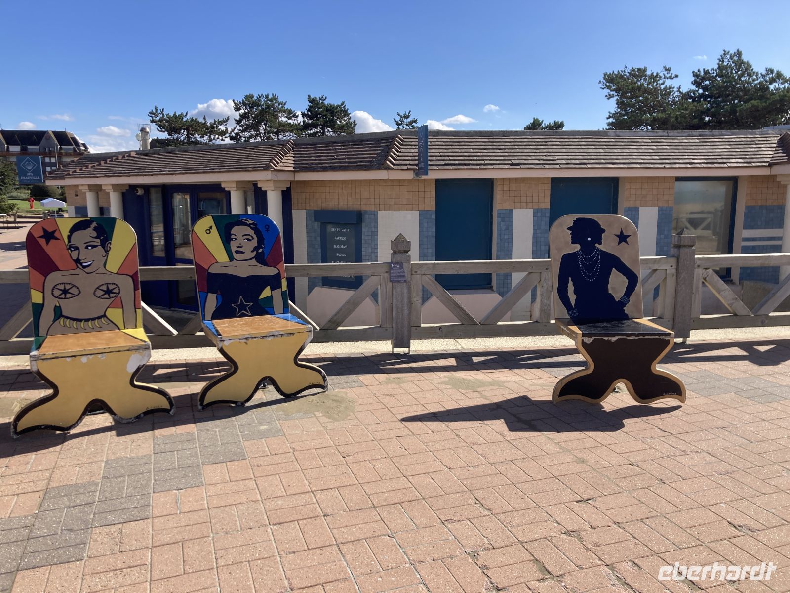 Im Inneren sehen wir schöne Kirchenfenstern sowie ein besonderes Kreuz beim Altarstein. Einst war Caudebec-en-Caux eine Stadt der Gerber. Im Zweiten Weltkrieg wurde auch dieser Ort stark beschädigt. Ein besonderes Gebäude ist jedoch erhalten geblieben - la Maison des Templiers aus dem 12. bis 13. Jahrhundert. Ein wunderbares Beispiel für die beginnende Renaissance-Architektur in Frankreich. Heute beherbergt das Gebäude Kunsthandwerker und einen Geschichtsverein. Wir schenken noch einem Stück verbliebener Stadtmauer unsere Aufmerksamkeit, immerhin findet sich hier auch das ehemalige Gefängnis der Stadt. Und nicht nur dies, auf dem Platz vor dem Gefängnis fanden auch die peinlichen Verhöre statt, bei denen Foltermethoden eingesetzt wurden. Jetzt macht sich der kleine Hunger bemerkbar und es geht wieder zum Schiff zurück. Der Nachmittag führt uns mit einem Ausflug erneut an Küste: Deauville und Honfleur stehen auf dem Programm. Obwohl oder vielleicht gerade deshalb, alle einen Schirm eingepackt haben, hält das Wetter. Wir erleben die Küste zwar mit Wind aber trocken. Deauville, das berühmte Seebad, dass die Pariser liebevoll ihr 21. Arrondissement nennen, begrüßt uns mit seinem wunderbaren Sandstrand. Nach einem Nahkontakt mit dem Wasser geht es weiter nach Honfleur. Hier wandeln wir erneut auf den Spuren der Impressionisten und genießen das Treiben dieses charmanten Städtchens, in dem heute noch Bildende KünstlerInnen leben und einige Galerien zu finden sind. Der Komponist Eric Satie stammte von hier und der Maler Eugène Boudin. Letzterer erkannte früh das Talent eines gewissen Claude Monet. Ein Museum widmet sich dem Leben und Werk Eugène Bodin. Eine große Sammlung seiner Werke findet sich aber in dem sehr schönen Museum in Le Havre. Wir erreichen wieder unser Schiff in Caudebec-en-Caux und treten nun schon wieder die Rückfahrt flussaufwärts an.