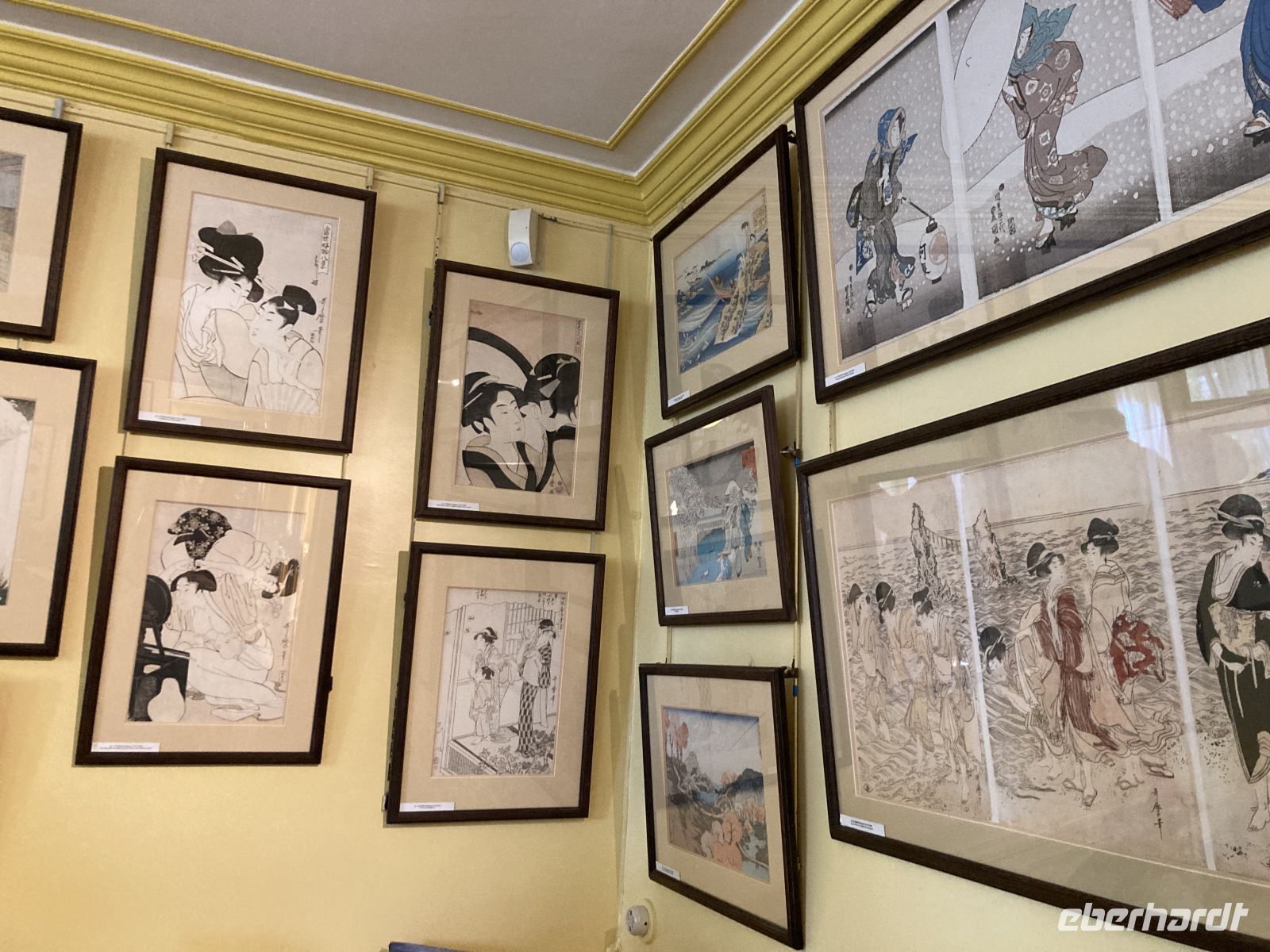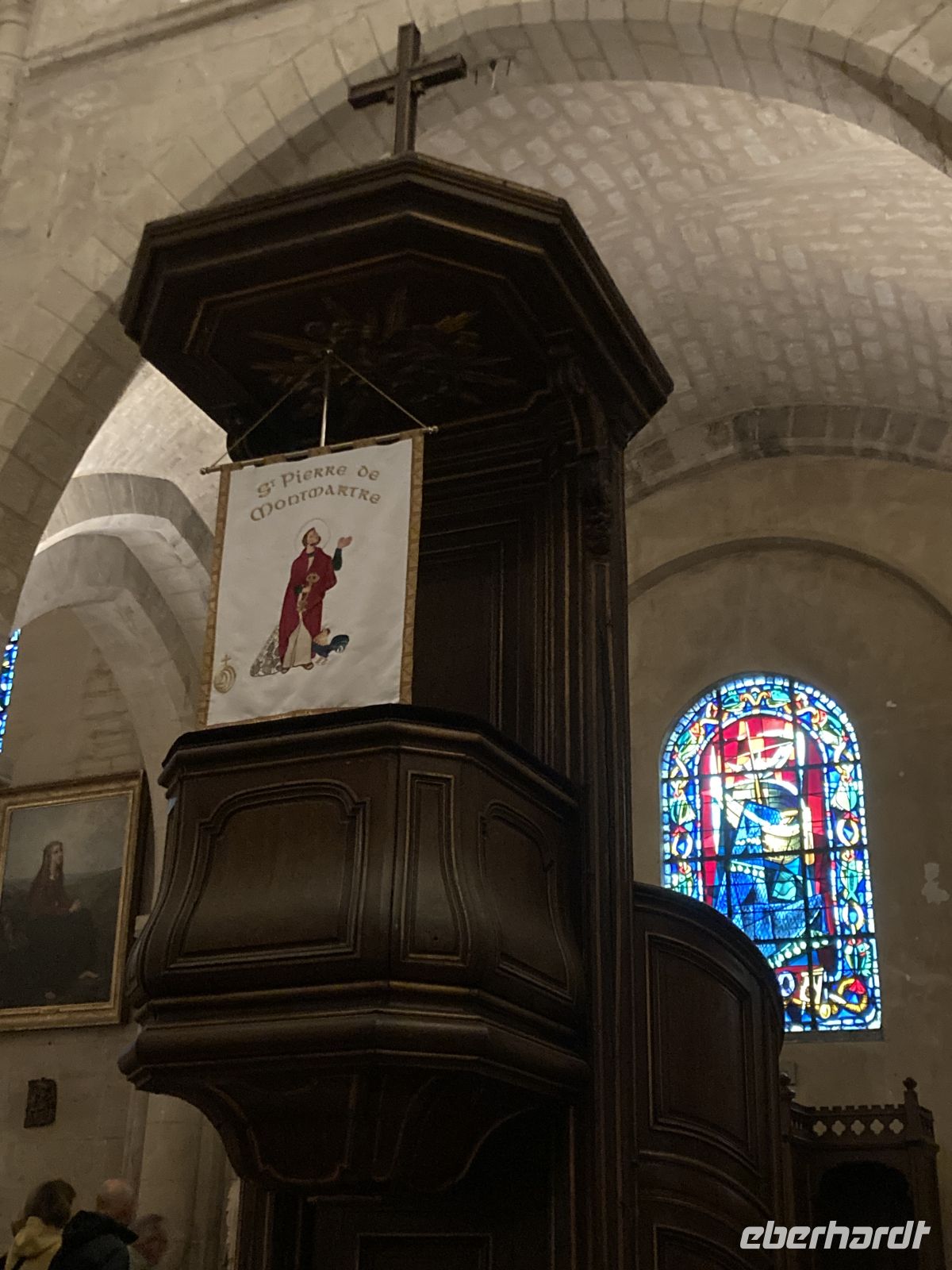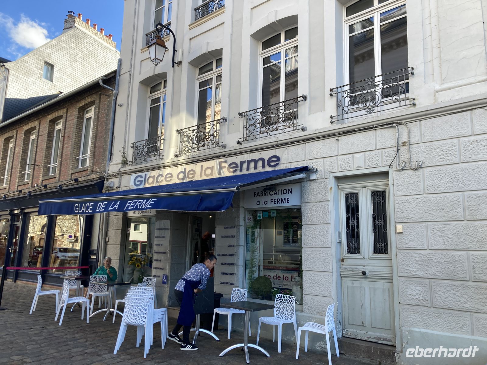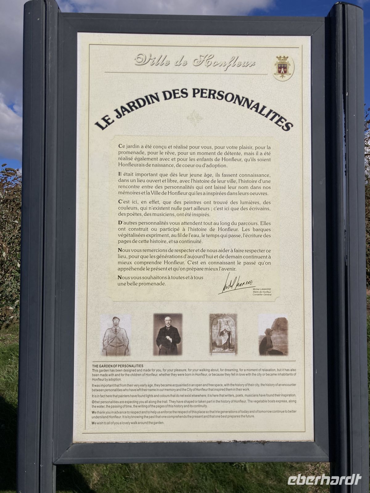 Im Inneren sehen wir schöne Kirchenfenstern sowie ein besonderes Kreuz beim Altarstein. Einst war Caudebec-en-Caux eine Stadt der Gerber. Im Zweiten Weltkrieg wurde auch dieser Ort stark beschädigt. Ein besonderes Gebäude ist jedoch erhalten geblieben - la Maison des Templiers aus dem 12. bis 13. Jahrhundert. Ein wunderbares Beispiel für die beginnende Renaissance-Architektur in Frankreich. Heute beherbergt das Gebäude Kunsthandwerker und einen Geschichtsverein. Wir schenken noch einem Stück verbliebener Stadtmauer unsere Aufmerksamkeit, immerhin findet sich hier auch das ehemalige Gefängnis der Stadt. Und nicht nur dies, auf dem Platz vor dem Gefängnis fanden auch die peinlichen Verhöre statt, bei denen Foltermethoden eingesetzt wurden. Jetzt macht sich der kleine Hunger bemerkbar und es geht wieder zum Schiff zurück. Der Nachmittag führt uns mit einem Ausflug erneut an Küste: Deauville und Honfleur stehen auf dem Programm. Obwohl oder vielleicht gerade deshalb, alle einen Schirm eingepackt haben, hält das Wetter. Wir erleben die Küste zwar mit Wind aber trocken. Deauville, das berühmte Seebad, dass die Pariser liebevoll ihr 21. Arrondissement nennen, begrüßt uns mit seinem wunderbaren Sandstrand. Nach einem Nahkontakt mit dem Wasser geht es weiter nach Honfleur. Hier wandeln wir erneut auf den Spuren der Impressionisten und genießen das Treiben dieses charmanten Städtchens, in dem heute noch Bildende KünstlerInnen leben und einige Galerien zu finden sind. Der Komponist Eric Satie stammte von hier und der Maler Eugène Boudin. Letzterer erkannte früh das Talent eines gewissen Claude Monet. Ein Museum widmet sich dem Leben und Werk Eugène Bodin. Eine große Sammlung seiner Werke findet sich aber in dem sehr schönen Museum in Le Havre. Wir erreichen wieder unser Schiff in Caudebec-en-Caux und treten nun schon wieder die Rückfahrt flussaufwärts an.