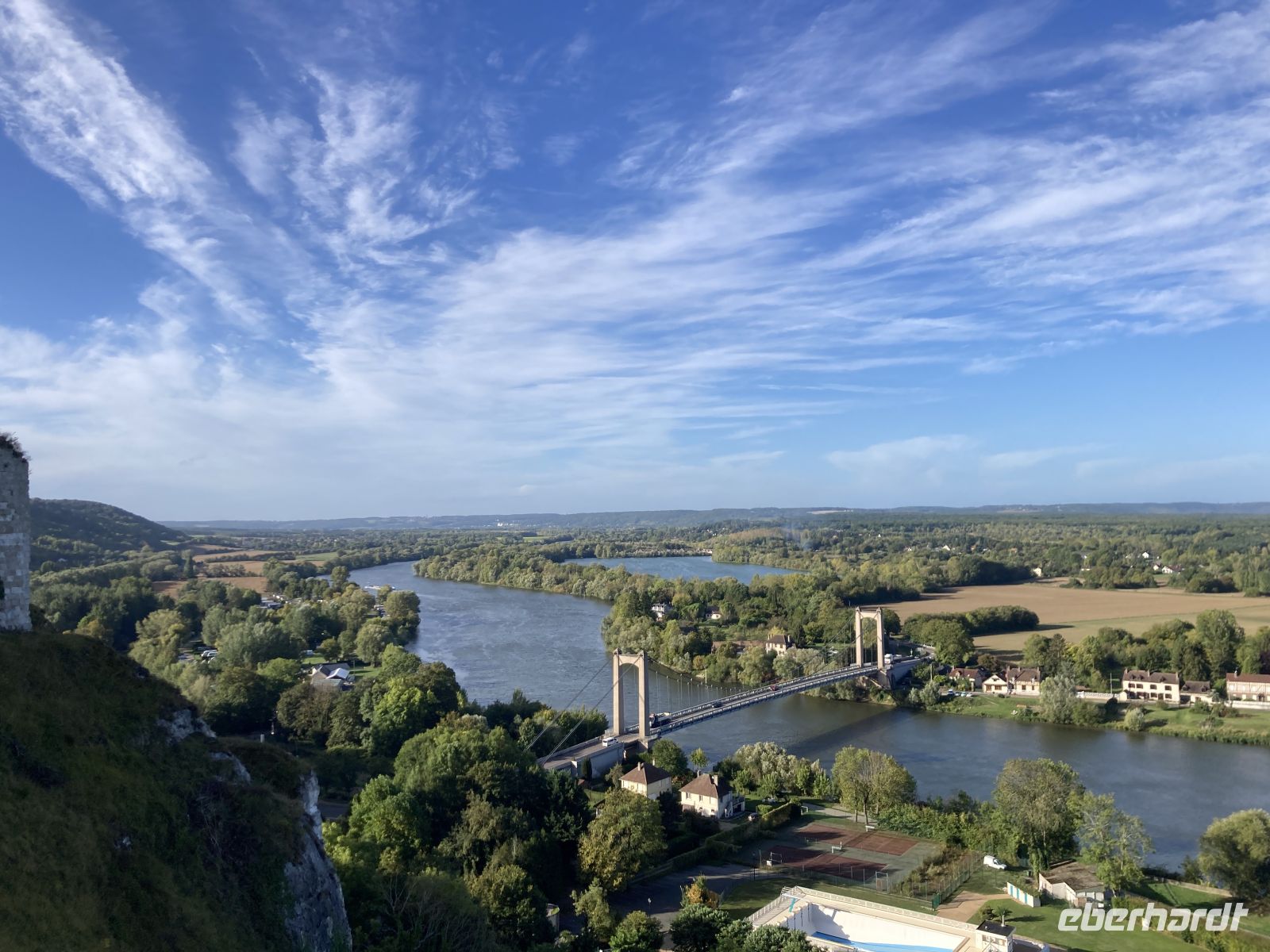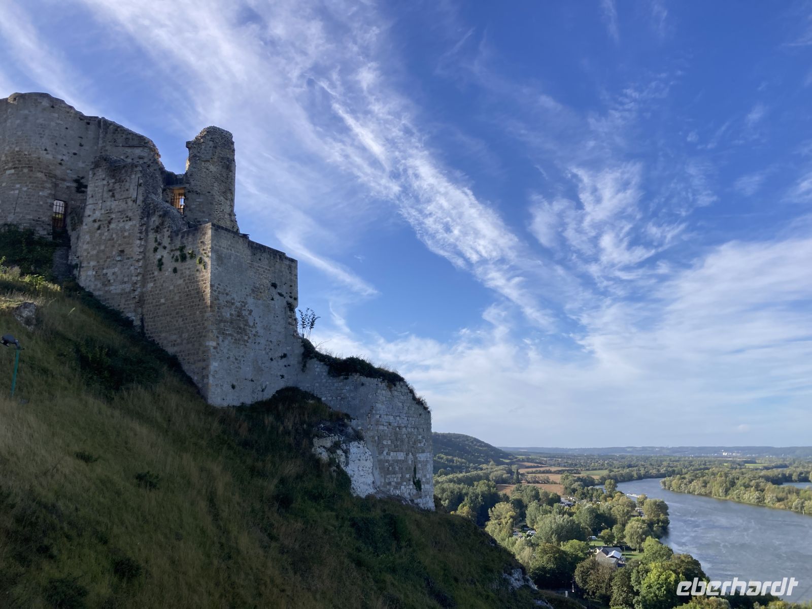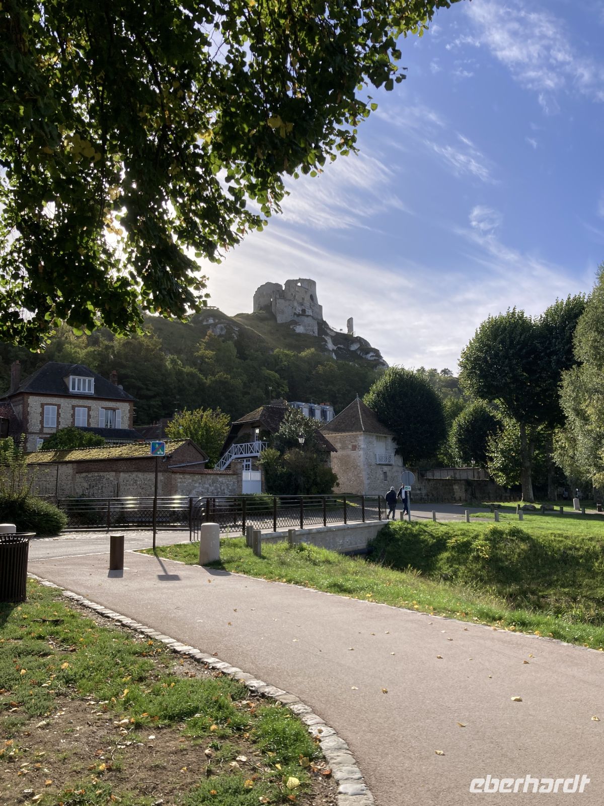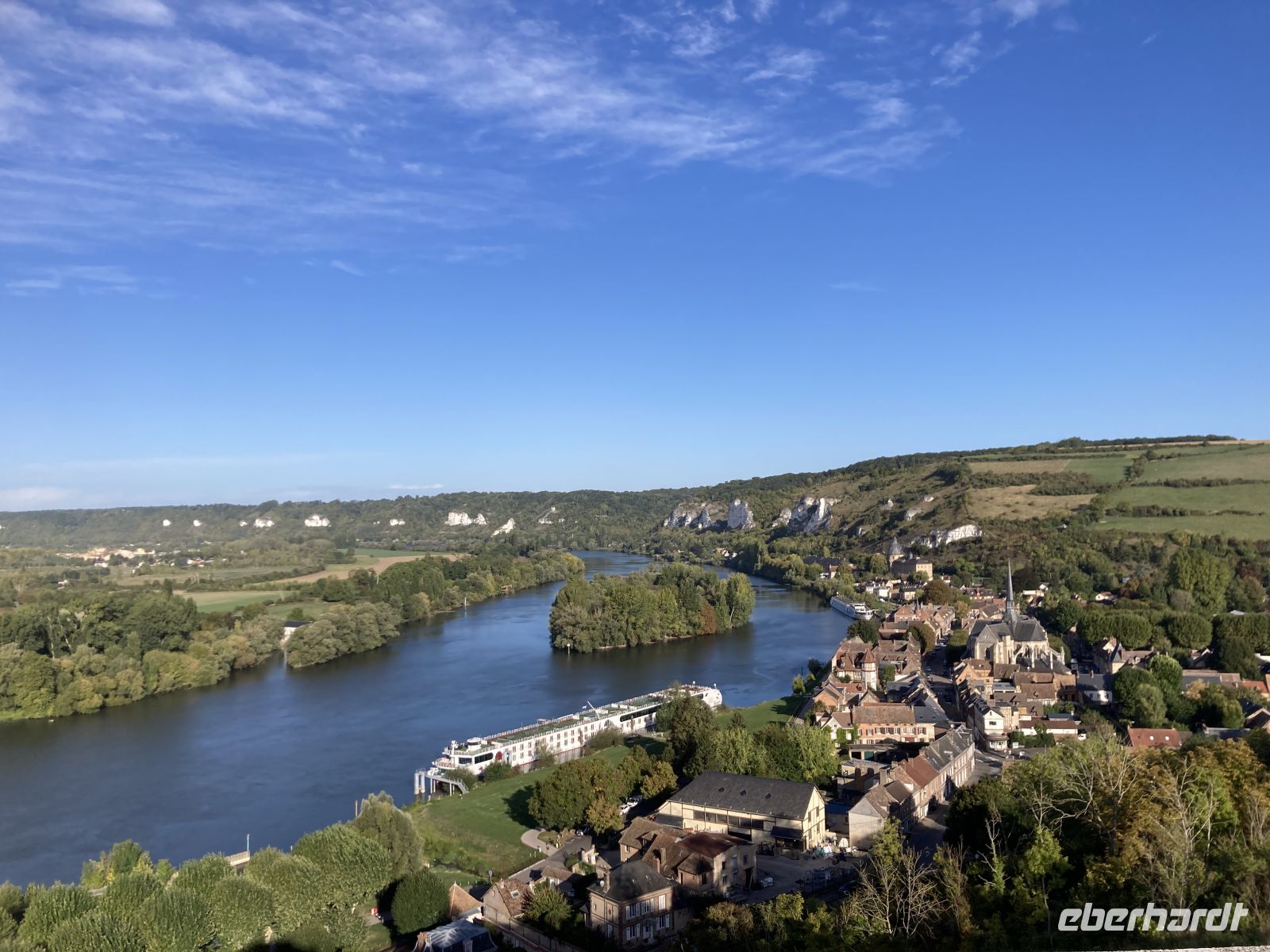 Im 17. Jahrhundert wurde Château Gaillard geschleift und diente wie viele andere Gebäude in der Geschichte als Steinbruch. Die sportliche Herausforderung hinauf zur Ruine lohnt auf jeden Fall, denn es öffnet sich hier ein schöner Blick über die Seine. Wieder unten angekommen, lockt auch das Städtchen mit kleinen Läden, die sogar heute am Montag öffnen, obwohl diese eigentlich der traditionelle Ruhetag in Frankreich ist. Es spricht für den Geschäftssinn der Ladeninhaber. Wir legen vor dem Mittagessen wieder ab und fahren nun nach Vernon.