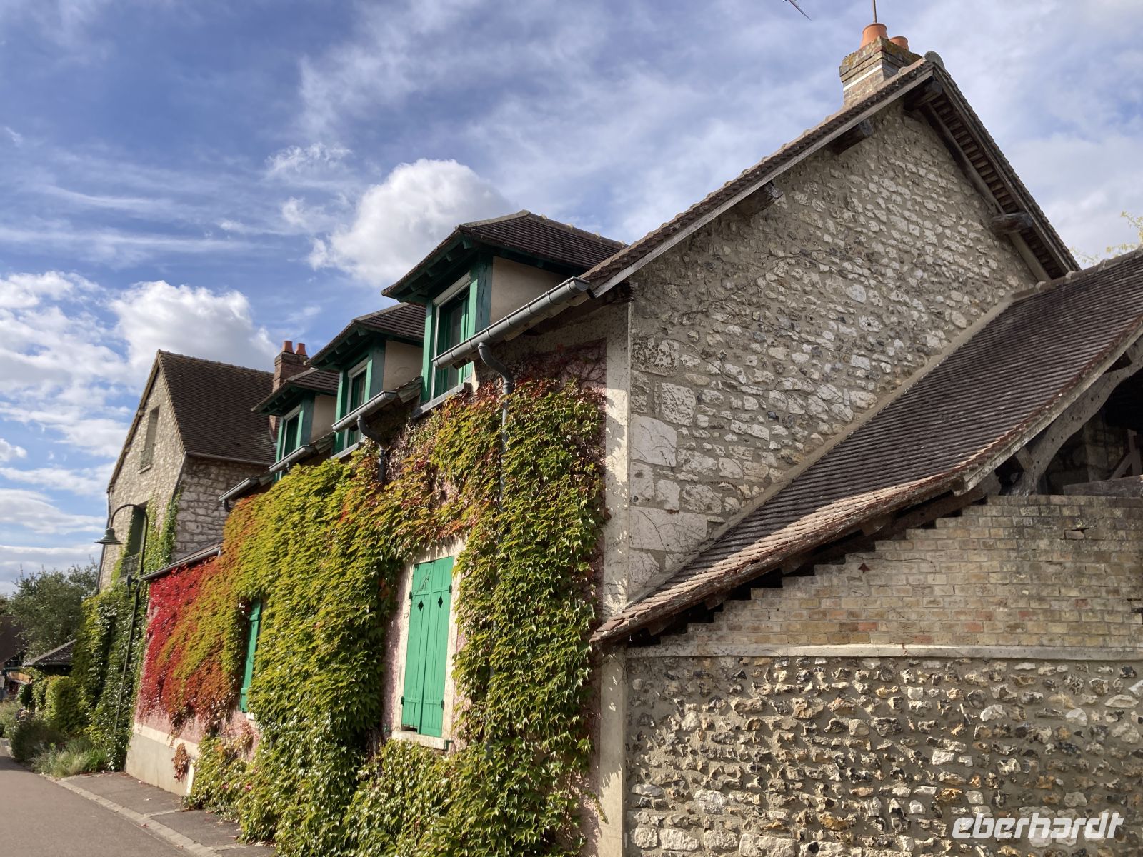 Der Ort Vernon ist für die meisten weit weniger bekannt, als der Ort auf der anderen Seine-Seite: Giverny. Und dorthin führt auch der Ausflug am Nachmittag. Bekannt wurde Giverny durch Maler Claude Monet. Seine herrlichen Gartenbilder sind in der ganzen Welt verteilt. Die bekannte grüne Brücke, die Seerosenteiche und Blau- und Gelbregen bilden hier ein naturgewordenes Gemälde. Monet ließ diesen Garten nach seinen Vorstellungen anlegen und für ihn sollte er ein Füllhorn der Inspiration werden. Für viele Normandie-Besucher ist des Gartens der Höhepunkt ihrer Reise. Die Seerosen blühen, allerdings sind sind noch recht bescheiden, denn sich wieder erst vor wenigen Jahren in den Teich gesetzt.