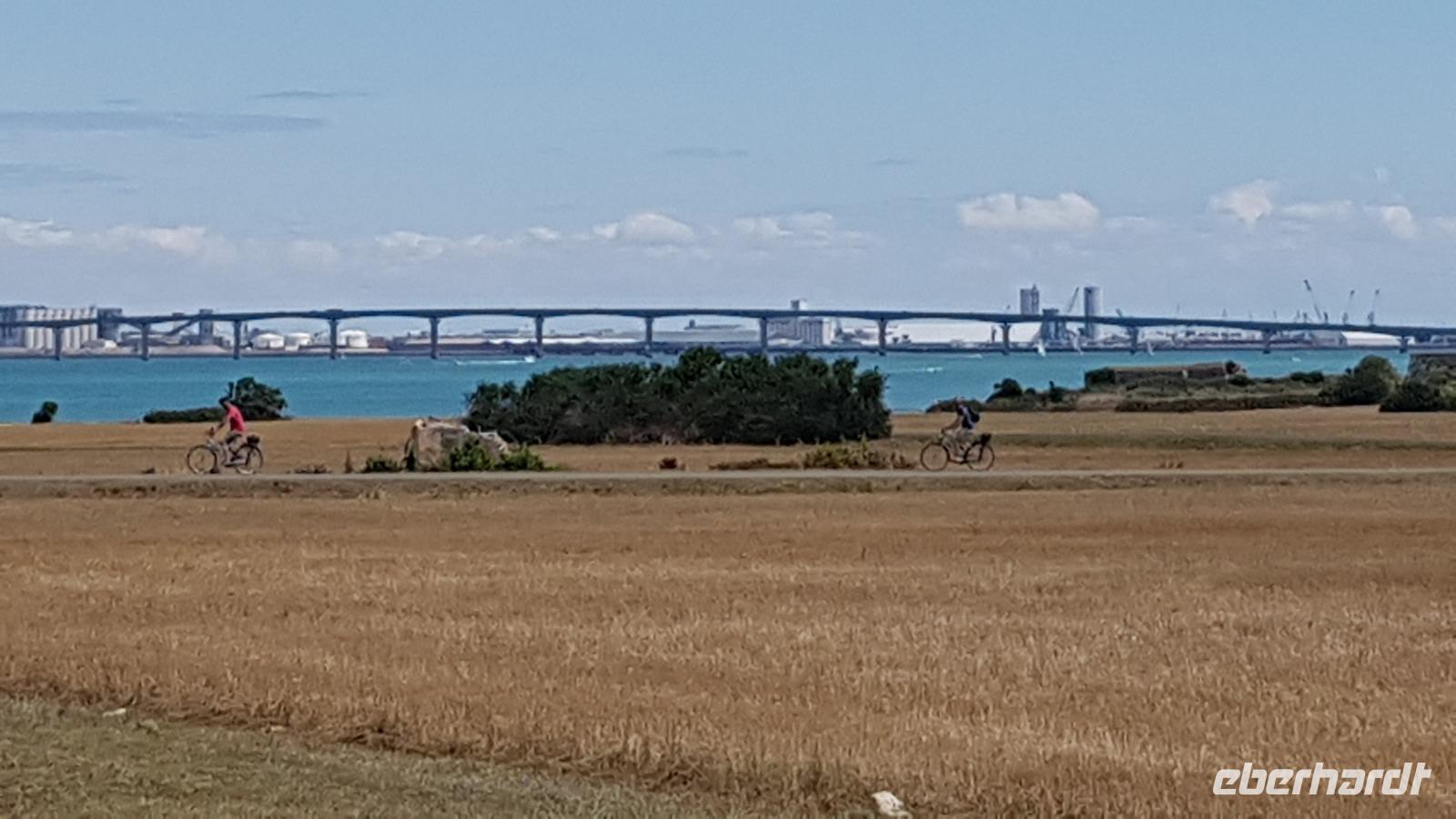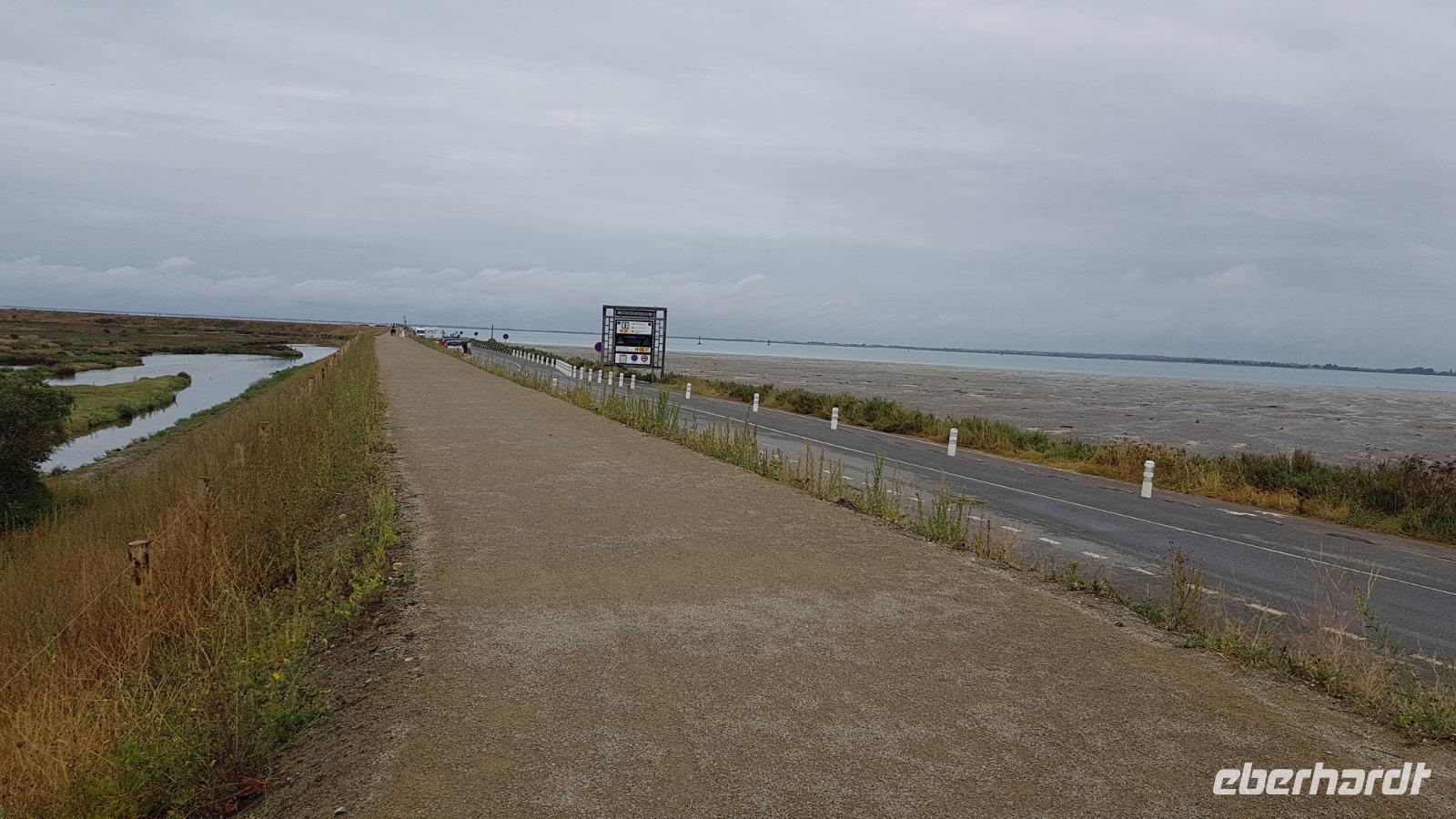 Wenig später fuhren wir über ein weiteres beeindruckendes Brückenbauwerk: die 1971 eingeweihte Brücke zur Atlantikinsel Ile de Noirmoutier. Sie ersetzt die alte Passage du Gois, die nur bei Ebbe zu passieren ist.