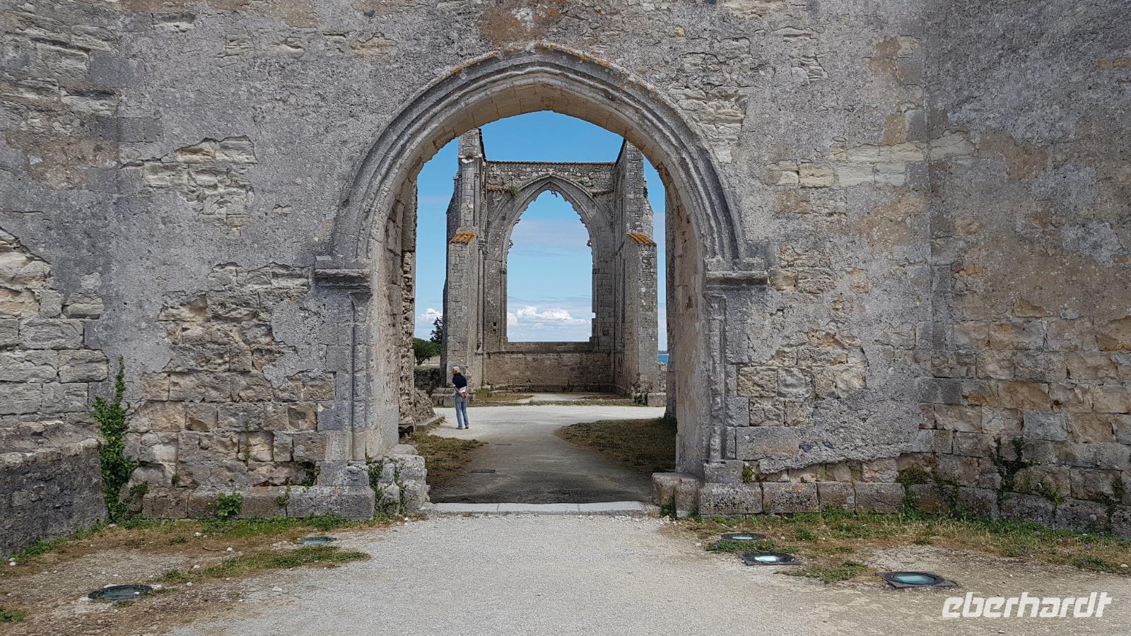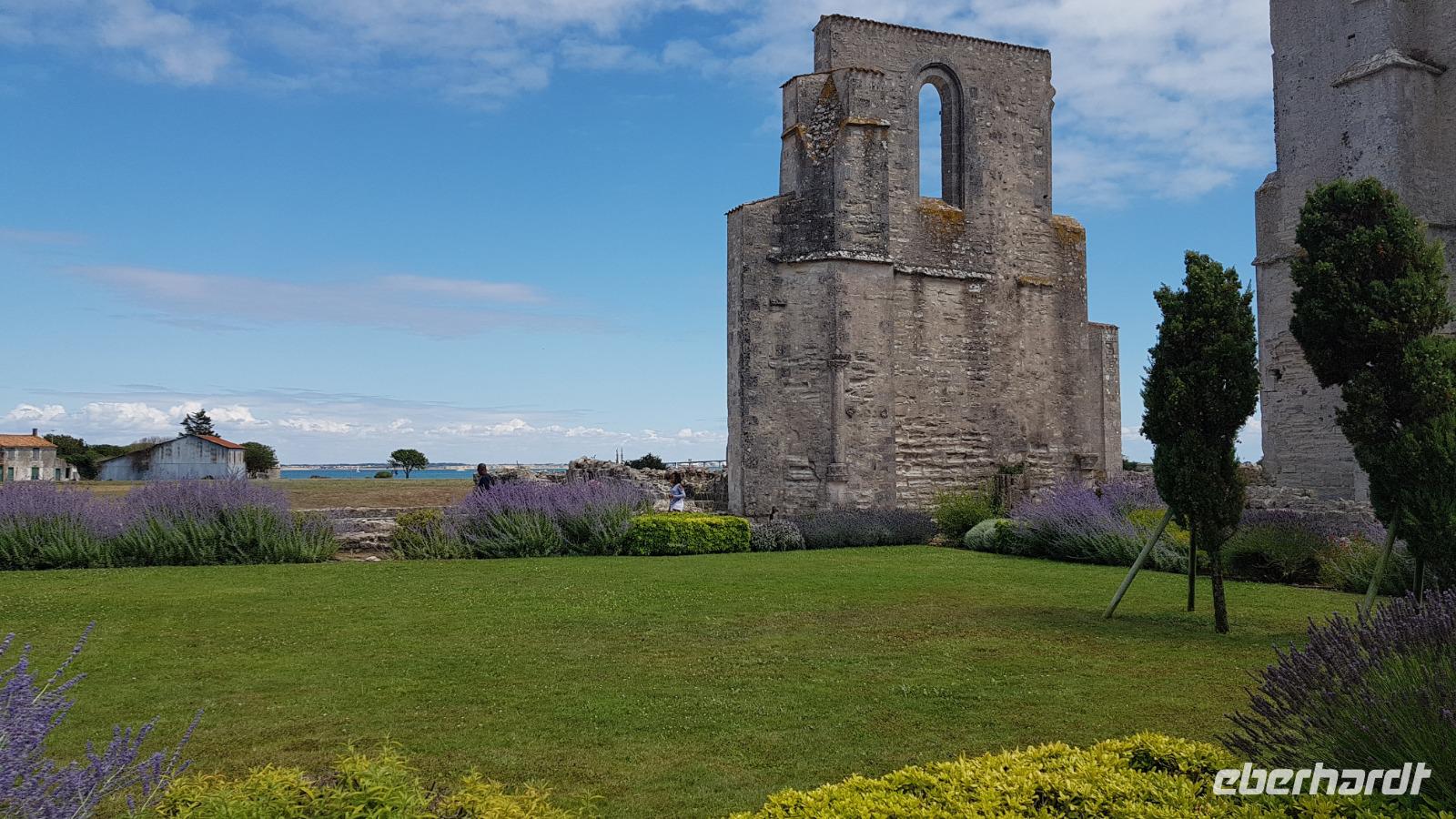 Bevor wir die Insel verließen legten wir bei der berühmten Ruine der Zisterzienserabtei Notre-Dame-de-Ré einen Fotostopp ein. Sie wurde 1156 gegründet und beherbergte u.a. die französische Königin Marie von Anjou, Gemahlin von König Karl VII., die hier 1463 starb. Die Abtei wurde mehrmals von der englischen Flotte verwüstet, zerstört und danach immer wieder aufgebaut. 1793 wurde das inzwischen nur noch teilweise intakte und von den Oratoriern genutzte Kloster aufgehoben und dem Verfall preis gegeben. Erst 1997 wurde die Ruine gesichert und kann seit dem besichtigt werden.
