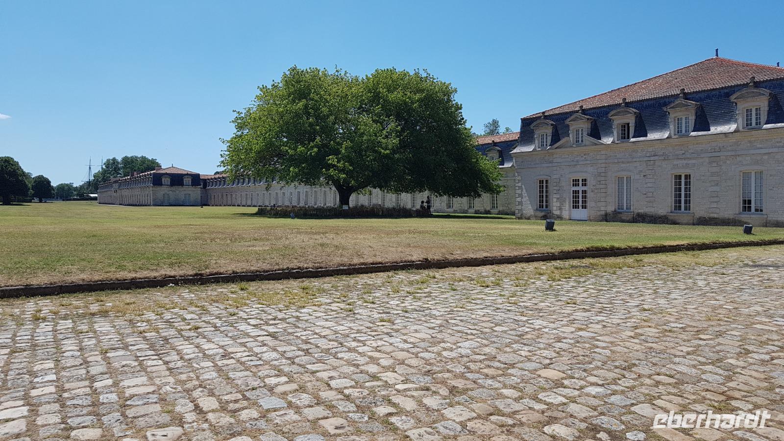 Heute entfernten wir uns etwas von der Atlantikküste, um nach Rochefort zu fahren. Die Stadt liegt am Ufer der Charente, deren Mündung durch die vorgelagerten Inseln Ré, Oléron und Aix optimal vor feindlichen Angriffen geschützt ist. An diesem strategisch absolut günstigen Ort ließ König Ludwig XIV den Marinestützpunkt für seine neu aufgebaute Flotte anlegen. Sein Minister Jean-Baptiste Colbert ließ hier ab 1666 das größte Marine-Arsenal Frankreichs errichten. Hier wurden im Verlauf von 250 Jahren 350 Schiffe gebaut, ausgerüstet und repariert. Zum Marine-Arsenal gehörte die „Corderie Royale", die königliche Seilerei, in der bis zur Einführung der Dampfschifffahrt das gesamte Tauwerk für die Französische Marine hergestellt wurde. In der ehemalige königliche Seilerei hatten wir eine spannende Führung durch einen Mitarbeiter des Museums, der uns die Geschichte des Hauses, das Handwerk der Seilerei und die Finesse von Seemannsknoten mit Wissen und Witz sehr lebendig nahe brachte.