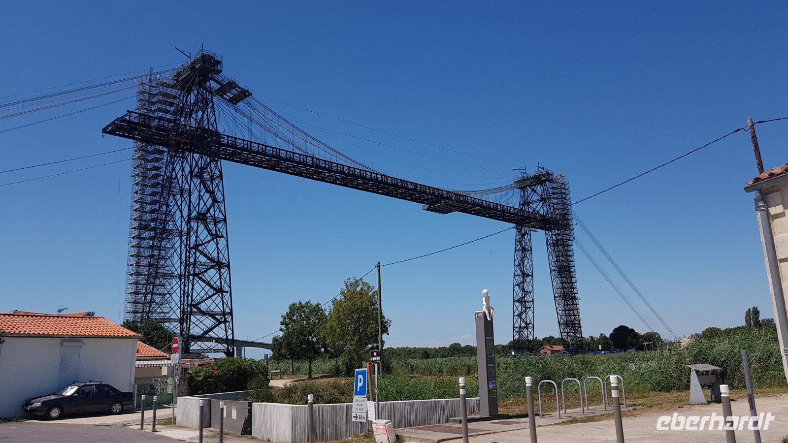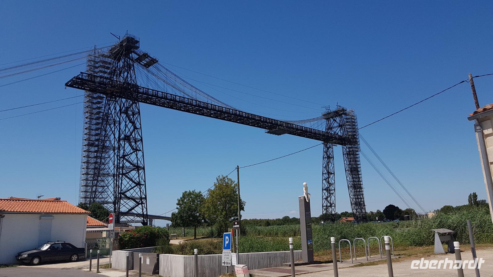 Dann wartete noch eine weitere Attraktion auf uns: die Schwebefähre von Rochefort. Einigen von uns war sie schon bekannt aus dem Film „Die Mädchen von Rochefort" von 1967. In diesem romantischen Filmmusical von Jacques Derry spielten Catherine Deneuve und ihre Schwester Françoise Dorléanc sowie Michel Piccoli, Danielle Darrieux und viele andere berühmte Schauspieler der Zeit. Leider war die Schwebefähre wegen einer Reparatur gerade nicht in Funktion. So betrachteten wir dieses im Juli des Jahres 1900 nach den Plänen des Ingenieurs Ferdinand Arnodin errichtete Bauwerk mit Andacht und informierten uns über sein Funktionieren und sein technischen Einzelheiten im „Maison du Transbordeur".