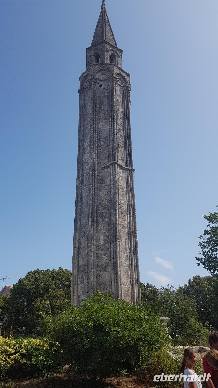 Anschließend fuhren wir nach St. Pierre d'Oléron, wo wir eine ganz besondere Sehenswürdigkeiten besuchte. Es handelte sich um eine Totenlaterne, die in der Zeit um 1300 mit großem architektonischen Aufwand und bauplastischer Finesse errichtete wurde. Sie ist 25 m hoch und stand inmitten eines ehemaligen Friedhofs. An der Nordseite der Totenlaterne sieht man noch heute den Zugang zu der innen liegenden Wendeltreppe. Offenbar diente die Totenlaterne in der Zeit ihrer Errichtung als Ort des „Ewigen Lichts" dem Totengedenken.