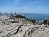 Als nächstes geht es zur Pointe du Raz. Auf dem Weg dahin wollen wir einen kleinen Abstecher ans Meer machen, um wenigstens unsere Füße im Atlantik abzukühlen. Die Temperatur zeigt 35 Grad und kein einziges Wölkchen ist am Himmel. Nichts erinnert hier an die Beschreibungen von Simenon, der seinen Maigret in die Bretagne zu Ermittlungen schickte und immer von den tief hängenden Wolken und dem bleigrauen Himmel erzählte. Heute ist hier alles anders: An der Pointe du Raz weht auch nicht einmal der Hauch eines Lüftchens. Überaus tapfer erwandert sich die Gruppe den Weg zur Spitze und alle hätten eine Urkunde an diesem heutigen Tag verdient. Im gut klimatisierten Bus treffen wir uns wieder und nach einem kräftigen Schluck aus der Mineralwasserflasche geht es vorbei an Pointe l'Abbé zurück zu unserem Hotel.