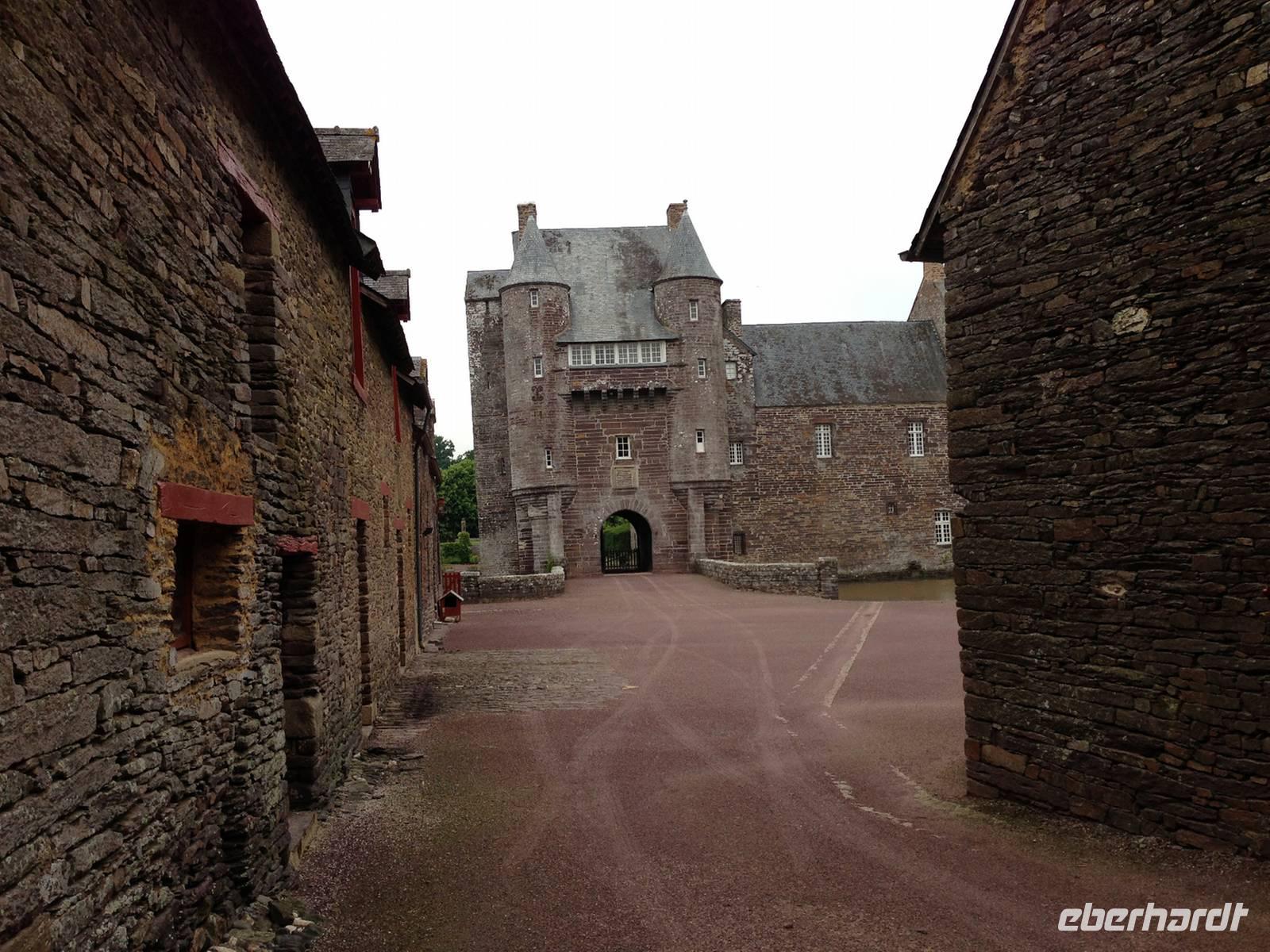 Die anschließende Busfahrt geht einige Kilometer in Richtung Rennes, denn im bretonischen Sagenwald Brocéliande bei Paimpont findet unsere erste kleine Rundwanderung zum Einlaufen der Wanderschuhe auf den Spuren von König Artus statt. Leider sind die blankgeputzten Schuhkleider aufgrund des teilweise schlammigen Waldweges schnell nicht wiederzuerkennen, obwohl wir manche Pfütze umständlich umklettert haben. Da alle diese erste Herausforderung meistern, steht dem zweiten Wandervorhaben nichts im Weg. Gemeinsam mit einem „echt falschen" Merlin machen wir uns auf die Suche nach dem etwas abgelegenen Haus der Fee Viviane. Da sie nicht zuhause ist geht es weiter, vorbei an Venusnabel und verschiedenen Farnen zum Tagesziel, dem Schloss Trécesson.