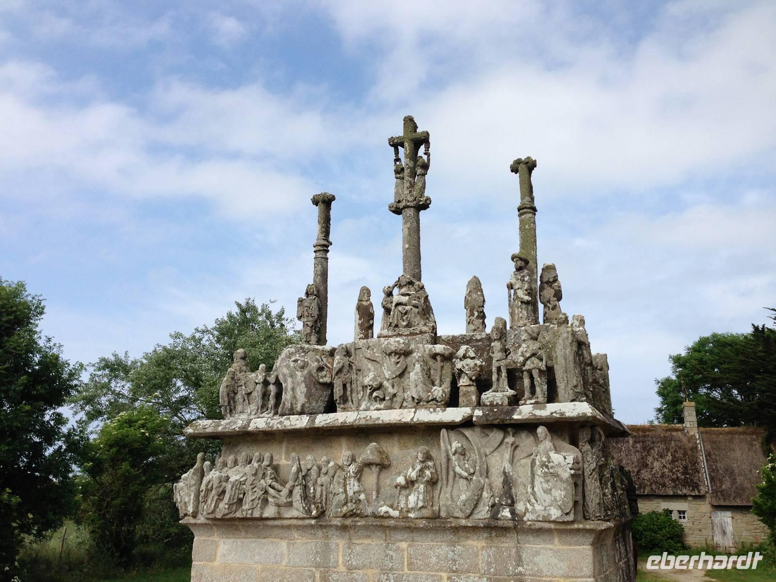 Die Fahrt geht nun nordwärts nach Guimillau. Dort erwartet uns der größte Pfarrhof der Bretagne. Der Kalvarienberg ist reich mit Skulpturen geschmückt, welche den Pfarrern als Anschauungsmaterial für die Verbreitung der christlichen Lehre dienten.