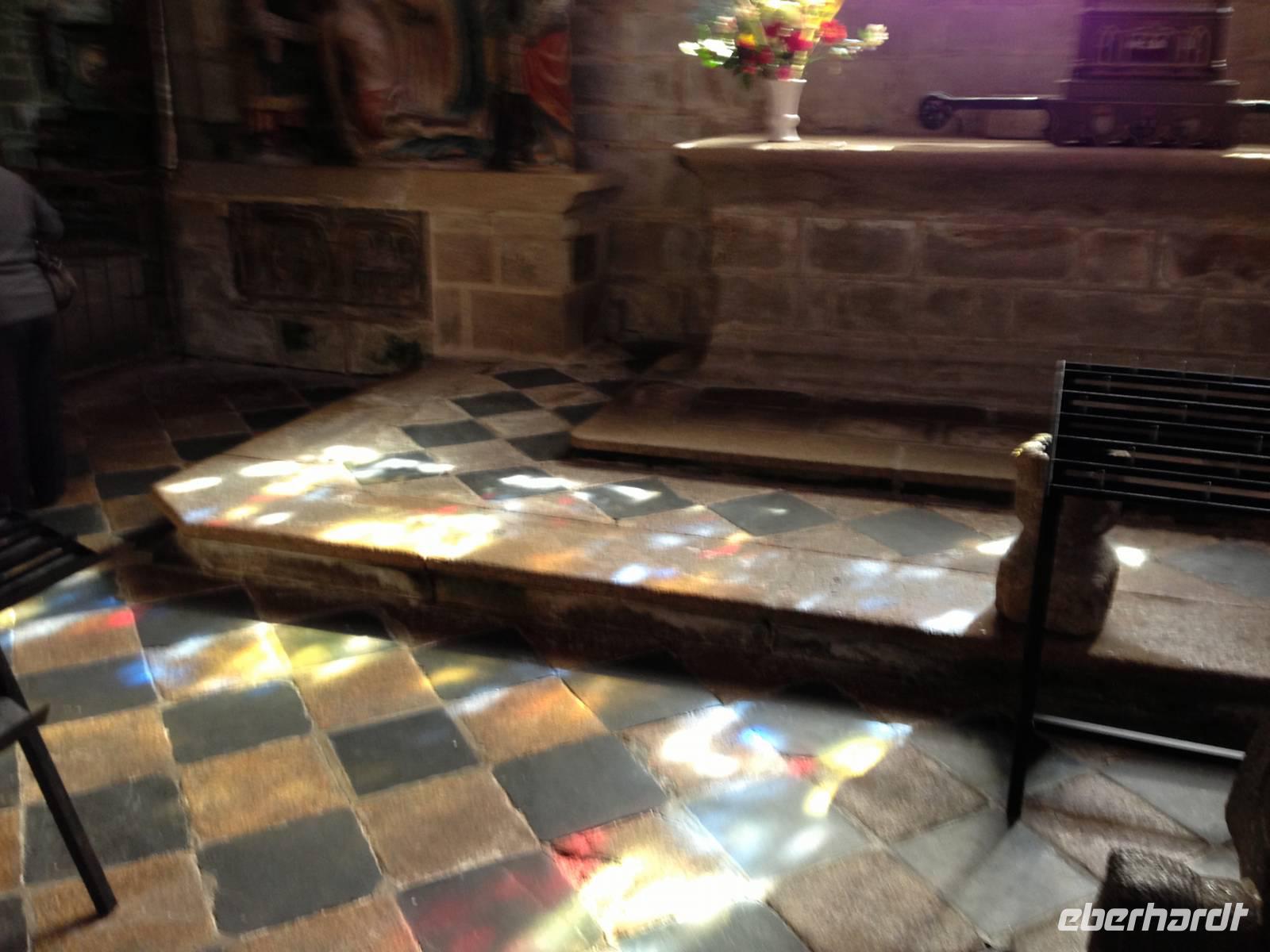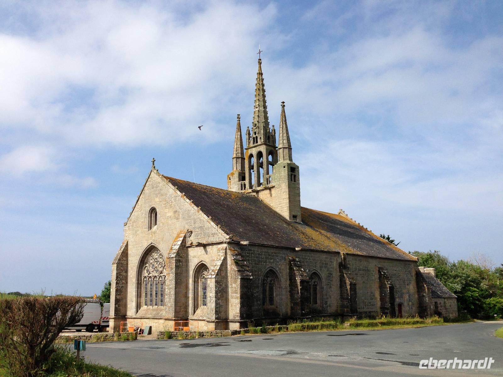 Da es heute doch ein wenig regnet, beginnen wir den Tag mit dem Besuch der Kirche „Notre-Dame-de-Confort" in dem kleinen Ort Meillars, welcher an der Straße zur Pointe du Raz liegt. Das Besondere an dieser Kirche ist ein Glöckchenrad, welches „Rad der wundertätigen Madonna" genannt wird. Viele taubstumme Kinder wurden hierher gebracht, da das Erklingen der Glöckchen Heilung bringen sollte und wohl einige Male erfolgreich war.