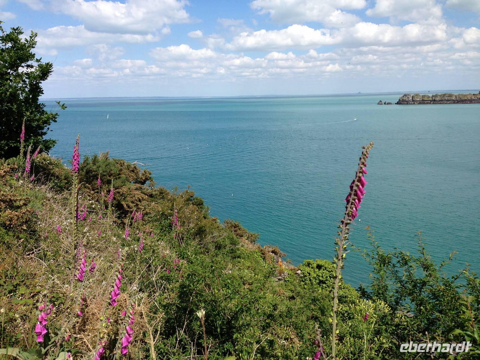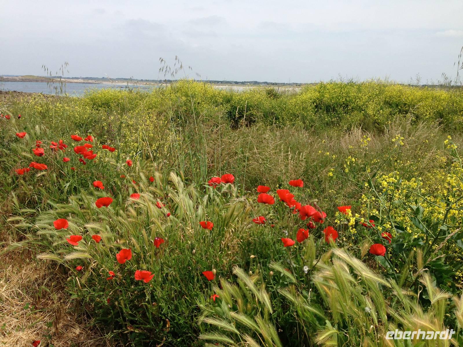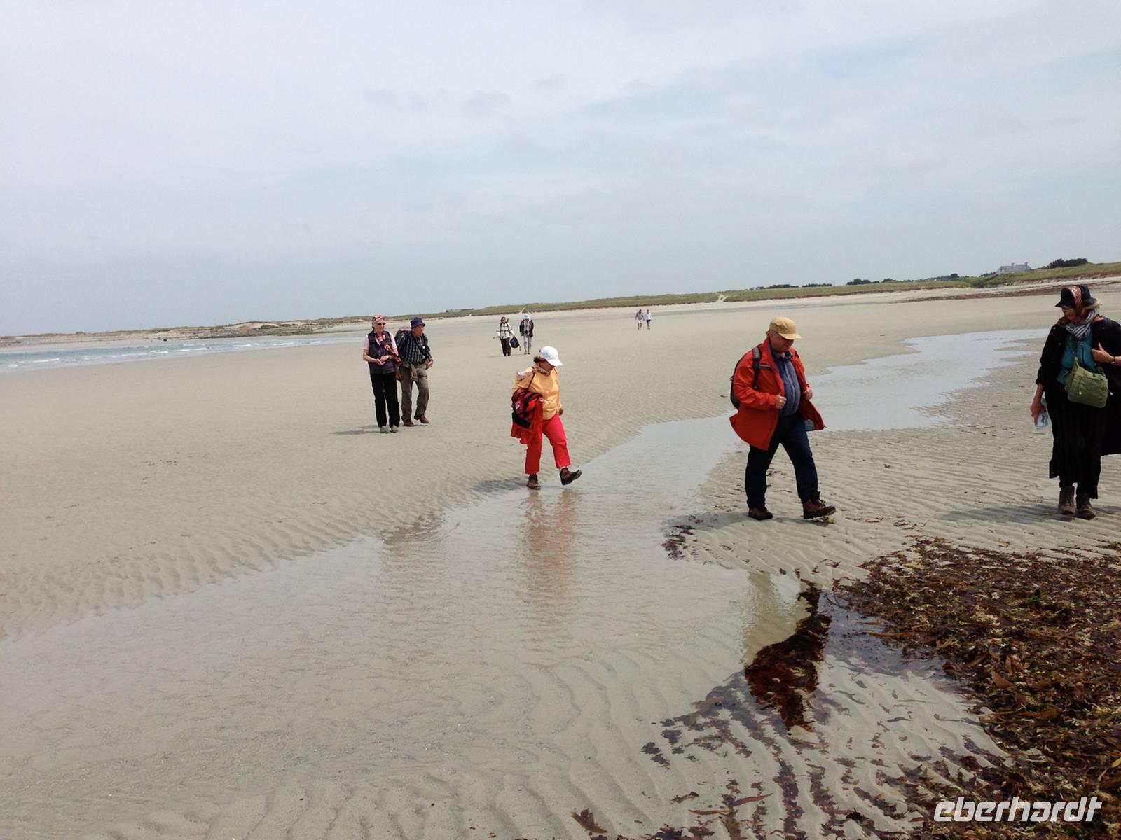 Mittlerweile zeigt uns sich die Bretagne von ihrer sonnigen Seite und auf der anschließenden Wanderung kommen wir schon etwas ins Schwitzen. Vor allem die Reiseleiterin auf der Suche nach drei verlorenen Schäfchen, die trotz längeren Wartens nicht zur Gruppe aufschließen. Wo der heimliche Überholprozess stattgefunden hat ist noch zu klären - denn lange vor der restlichen Gruppe waren die „Überholer" am Bus angelangt ... kein Wunder, hatten sie sich doch die ganze Zeit beeilt um die vermeintlich vor ihnen Gehenden einzuholen!