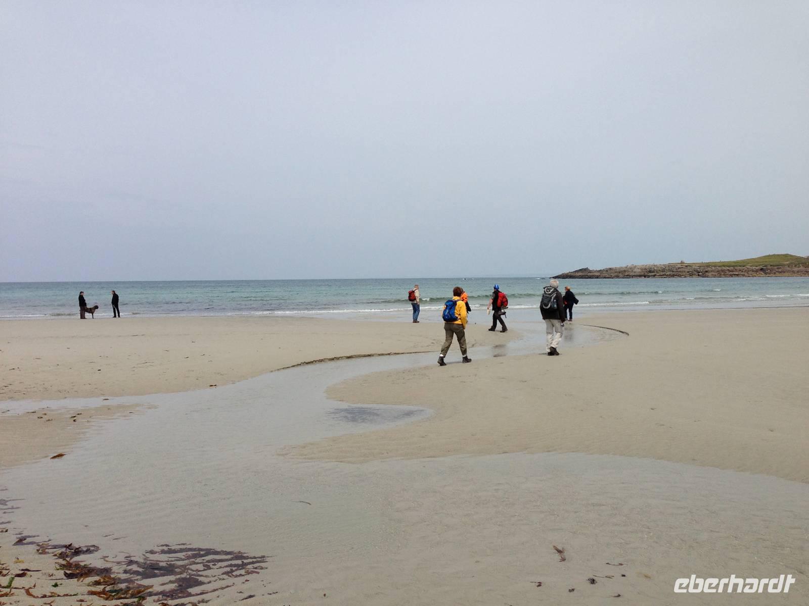 Ein gutes Stücke des Weges können wir wegen der Ebbe am Strand entlanglaufen, nicht ohne über manchen Priel zu springen oder einen großen Bogen landeinwärts machen zu müssen, um trockene Schuhe zu behalten.