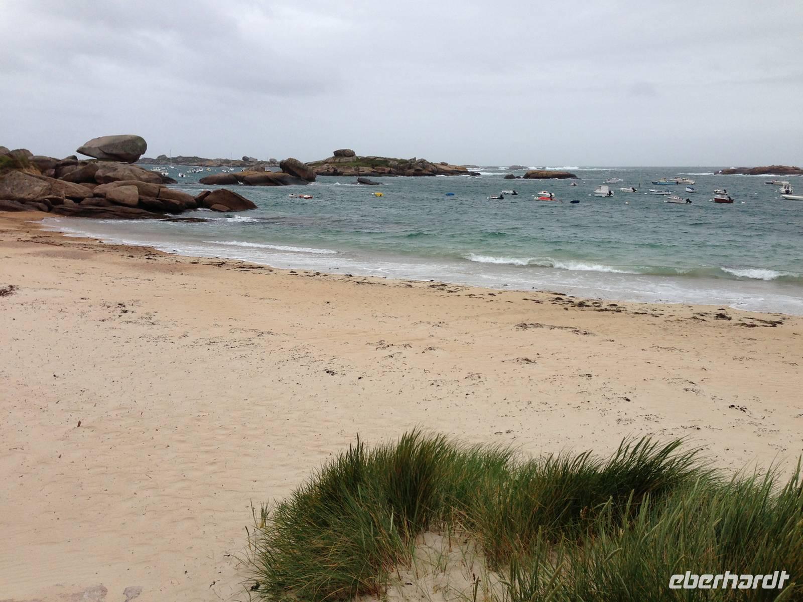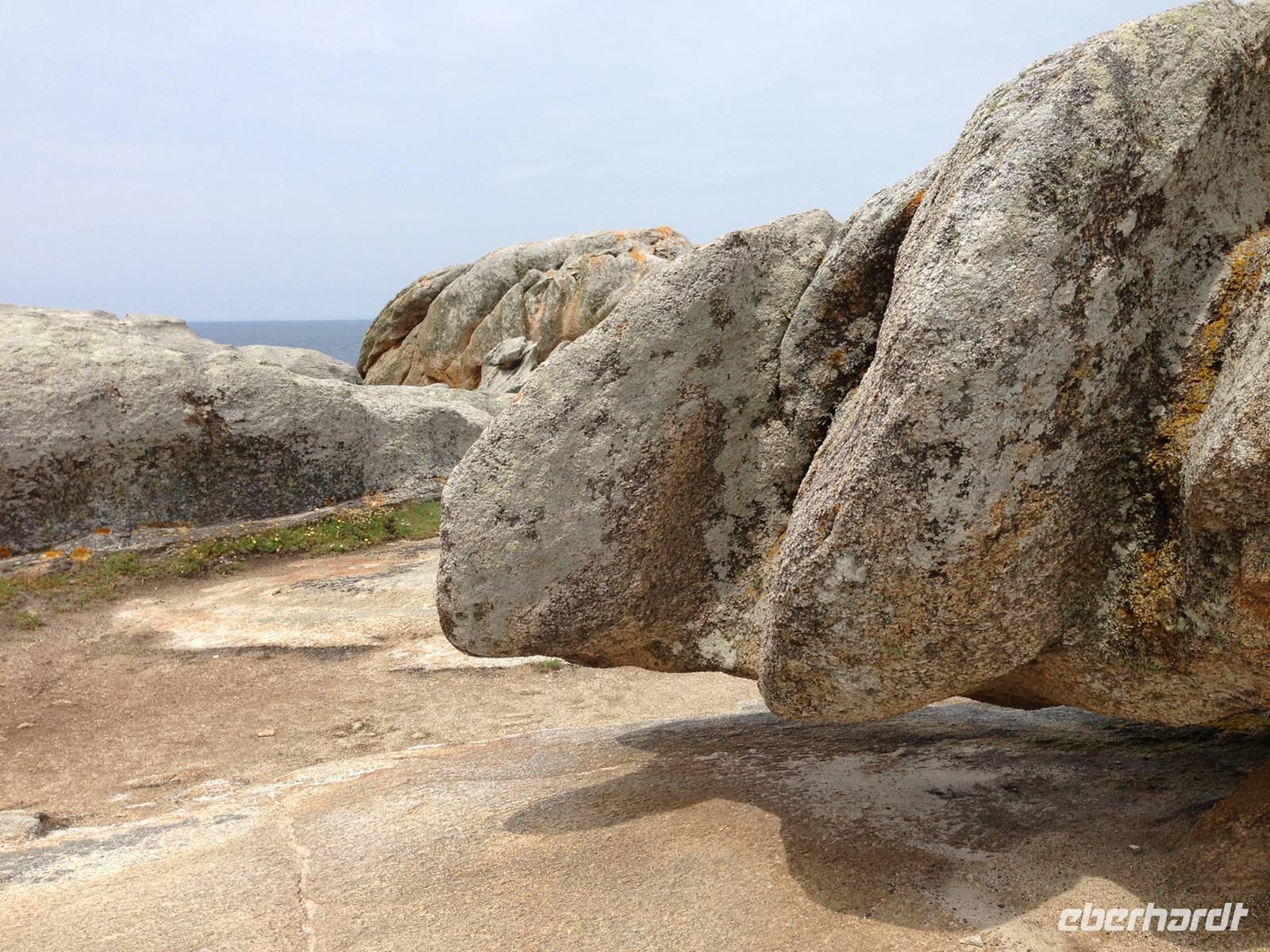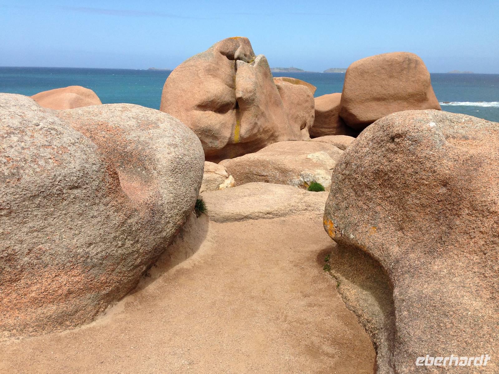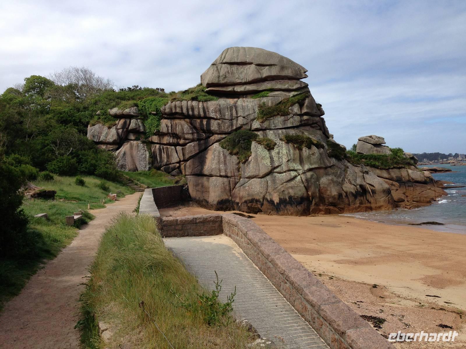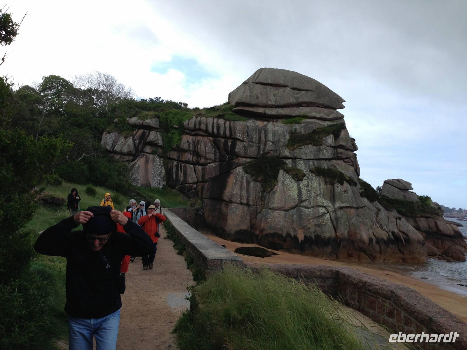 Unser fünfter Wandertag startet in Trégastel und führt uns über die Île Renote nach Ploumanac'h zu den bizarren Felsblöcken der Rosa Granitküste. Am Strand von Saint Guirrec erkennen wir in einem gigantischen Granitblock Napoleons Hut, in anderen Steingiganten eine Schildkröte oder was immer die Phantasie gerne sehen möchte